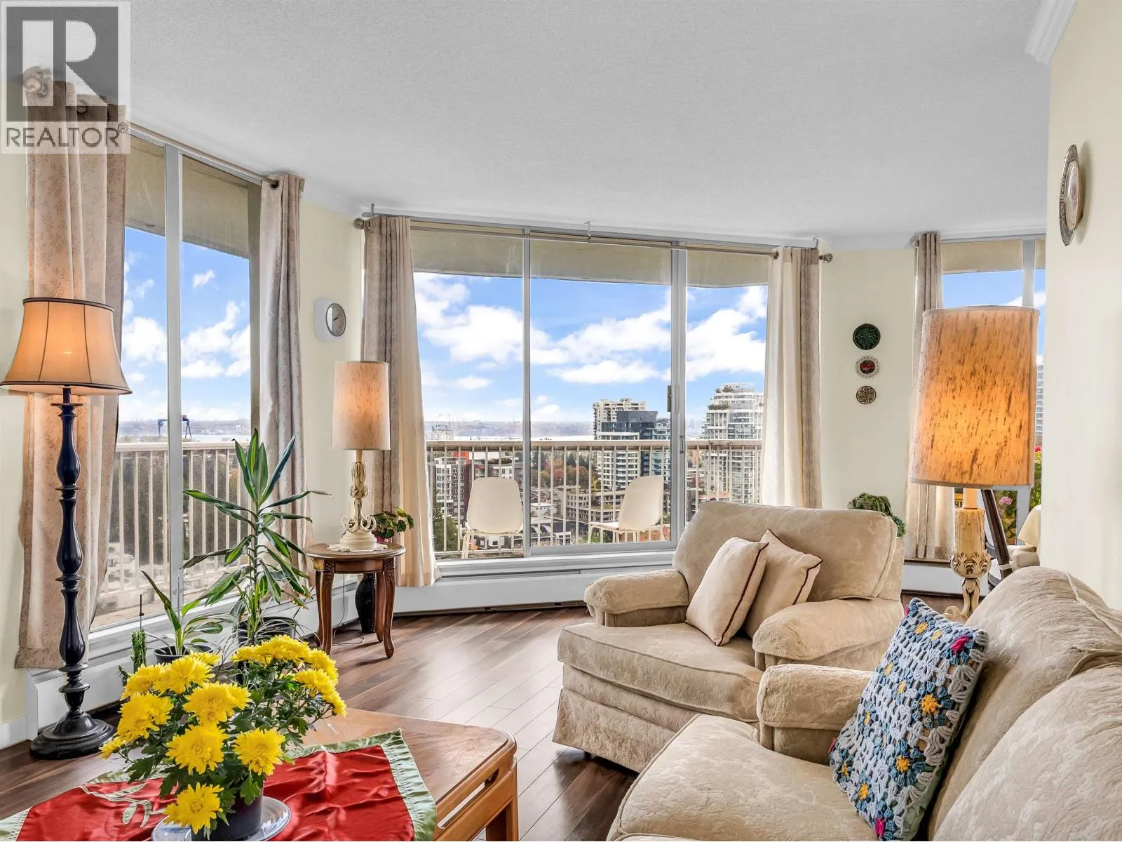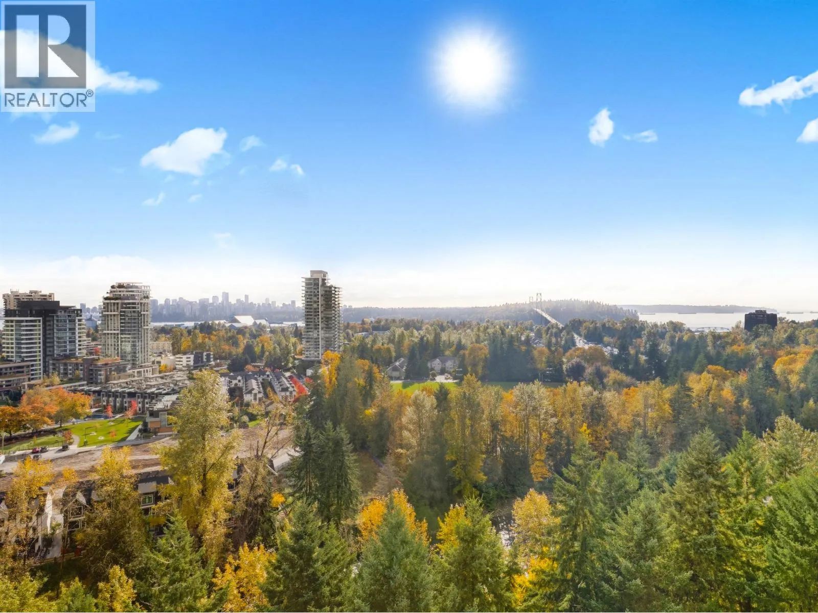 Amazing panoramic views of the ocean, Lions Gate Bridge, downtown Vancouver, and the North Shore mountains from the highly sought after southeast corner of the iconic Capilano Building, a true rare gem. This renovated, spacious, and bright home not only offers breathtaking views but also features a functional floor plan, new appliances, and a beautifully updated designer kitchen. Enjoy two generous bedrooms and a den and a massive wrap-around balcony perfect for taking in both sunrise and sunset. Residents enjoy amenities including an indoor pool, hot tub, exercise room, games room, and more. Easy access to Downtown, Park Royal, and Grouse Mountain. (id:27476)