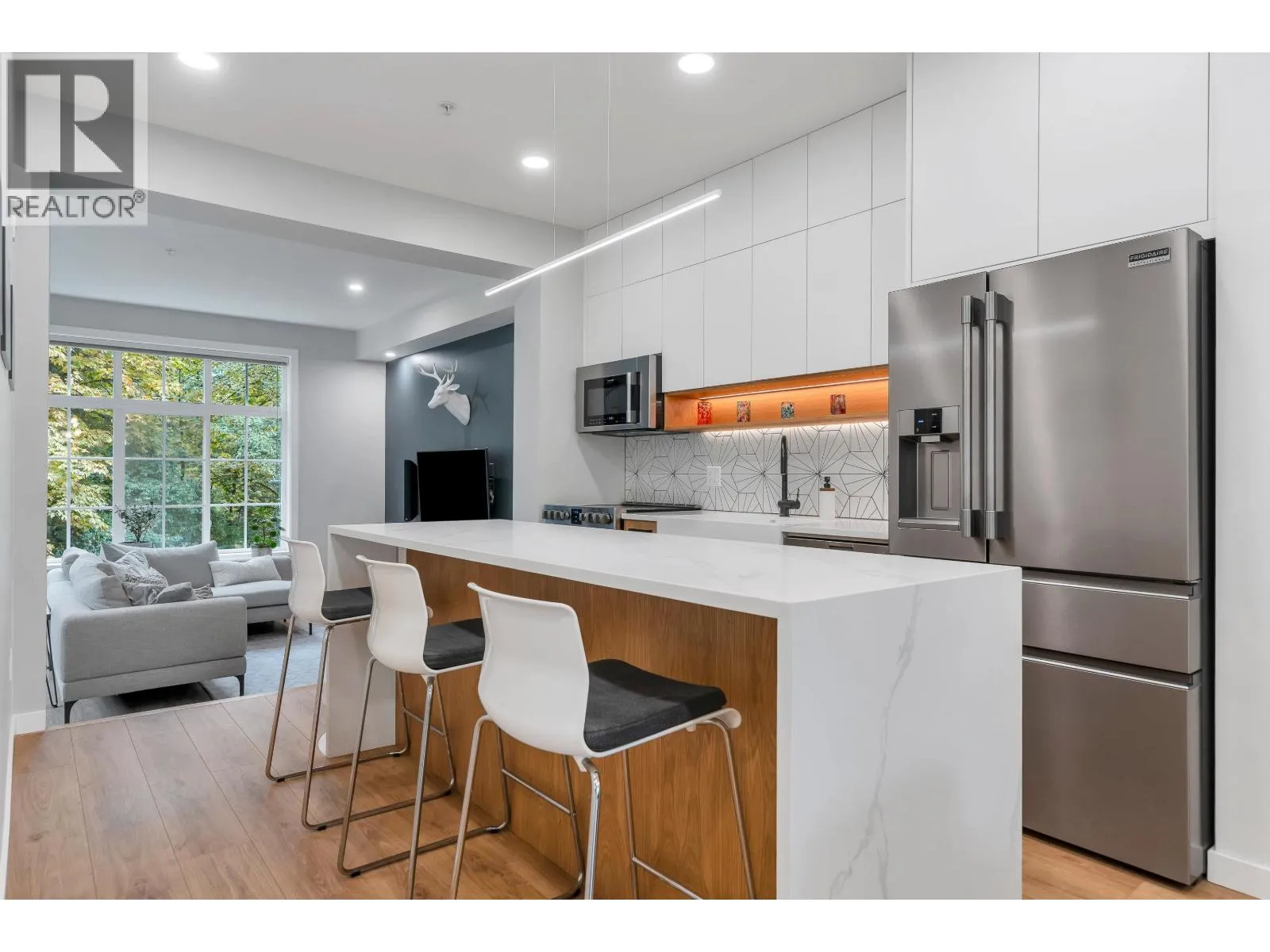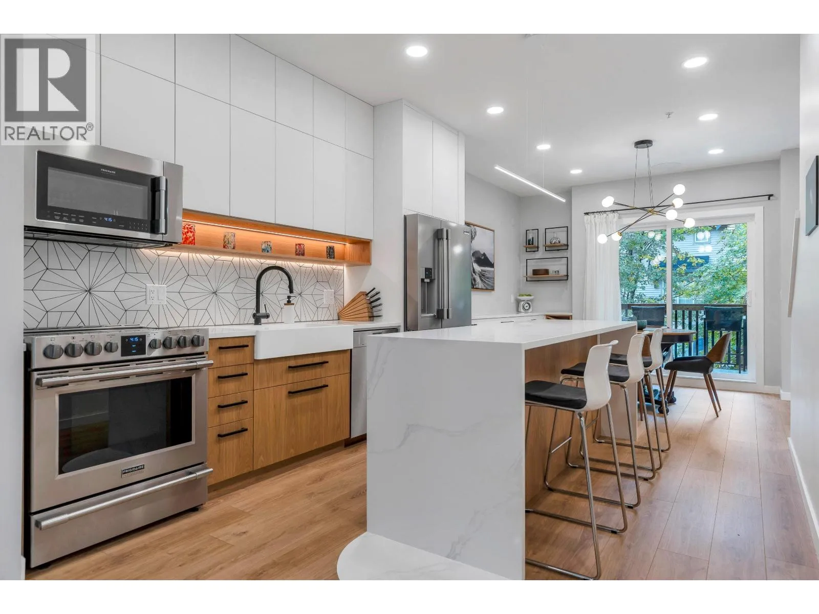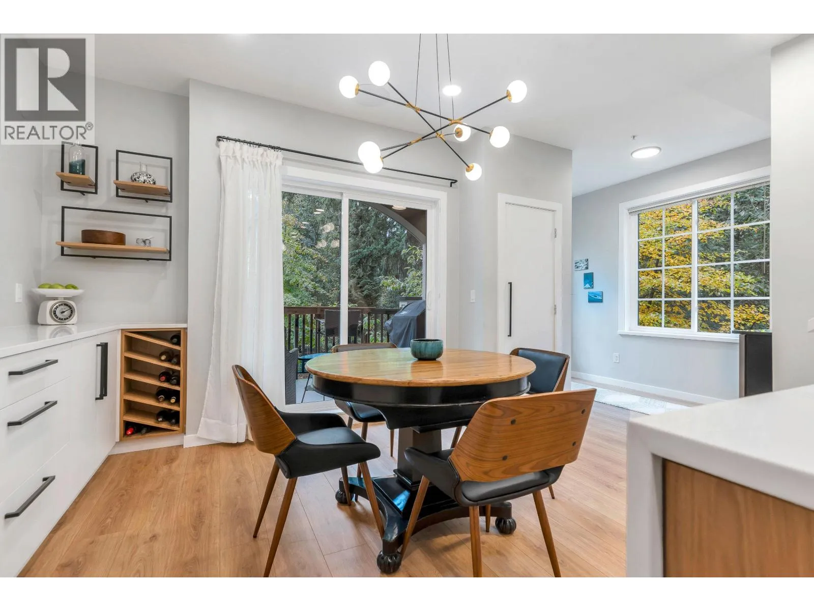Beautifully renovated in 2025, this stunning 2 bed/2 bath corner townhome in Tanager blends modern luxury with serene, natural surroundings. Enjoy a reimagined kitchen with custom cabinetry, bar area, and premium appliances, complemented by in-floor heating on the main and in the primary ensuite. The open layout extends to a walk-out covered patio and a private, sun-drenched yard, perfect for relaxing or entertaining. Built in 2006, this 1600 square ft home features a 2-car tandem garage with bonus sauna, workshop/gym, and generous storage. Nestled among trees yet close to trails, golf, shopping, and transit-just 15 min to downtown. Low strata fees in a peaceful, sought-after community. Open House - Sunday, November 23rd from 2-4PM. (id:27476)