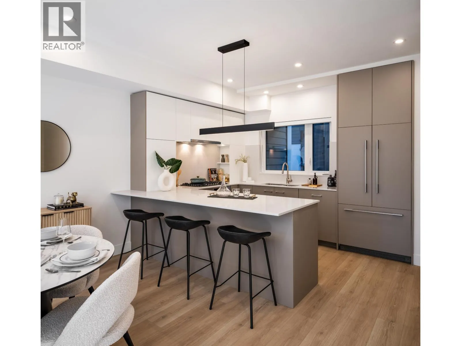 Welcome Home, where sophistication meets the serenity of Lynn Creek. This brand new, move-in ready 3-bed, 3.5-bath townhome spans over 3 levels with over 1300 sq ft, designed for elegance and ease. Indulge in Bosch & Fisher Paykel appliances, sleek smart cabinetry, quartz counters, heated bathroom floors, wide-plank flooring and A/C. Every bedroom boasts its own ensuite, offering privacy and comfort. Surrounded by trails, parks, shops and minutes to Phibbs Exchange Loop. This sub area of Lynnmour blends urban vibrance with the romance of North Shore living. A home that grows with you, designed for connection, independence and new beginnings. (id:27476)