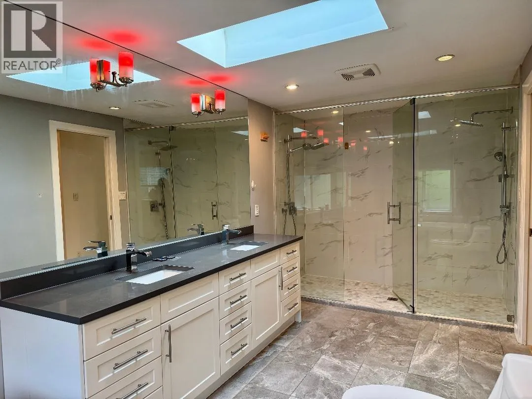 Canyon Heights, the open plan between kitchen, dining and living rooms makes excellent use of the bright property as well as the views of the surrounding forest. Gourmet Kitchen with high-end appliances, beverage centre, and a custom island . The rec - room is huge and even has its own additional deck. Large Master suite includi ng two-person shower and skylit wal k -in close . Back on the lower floor, the suite's separate entrance is quite private, revealing a space with a full-sized k i tchen, walk-in closet, three-piece bath. Outside you'll find a large deck with sweeping stairs down to a flat grassy backyard and a greenbelt. Catchment Schools: Handsworth High School & Montroyal Elementary (id:27476)