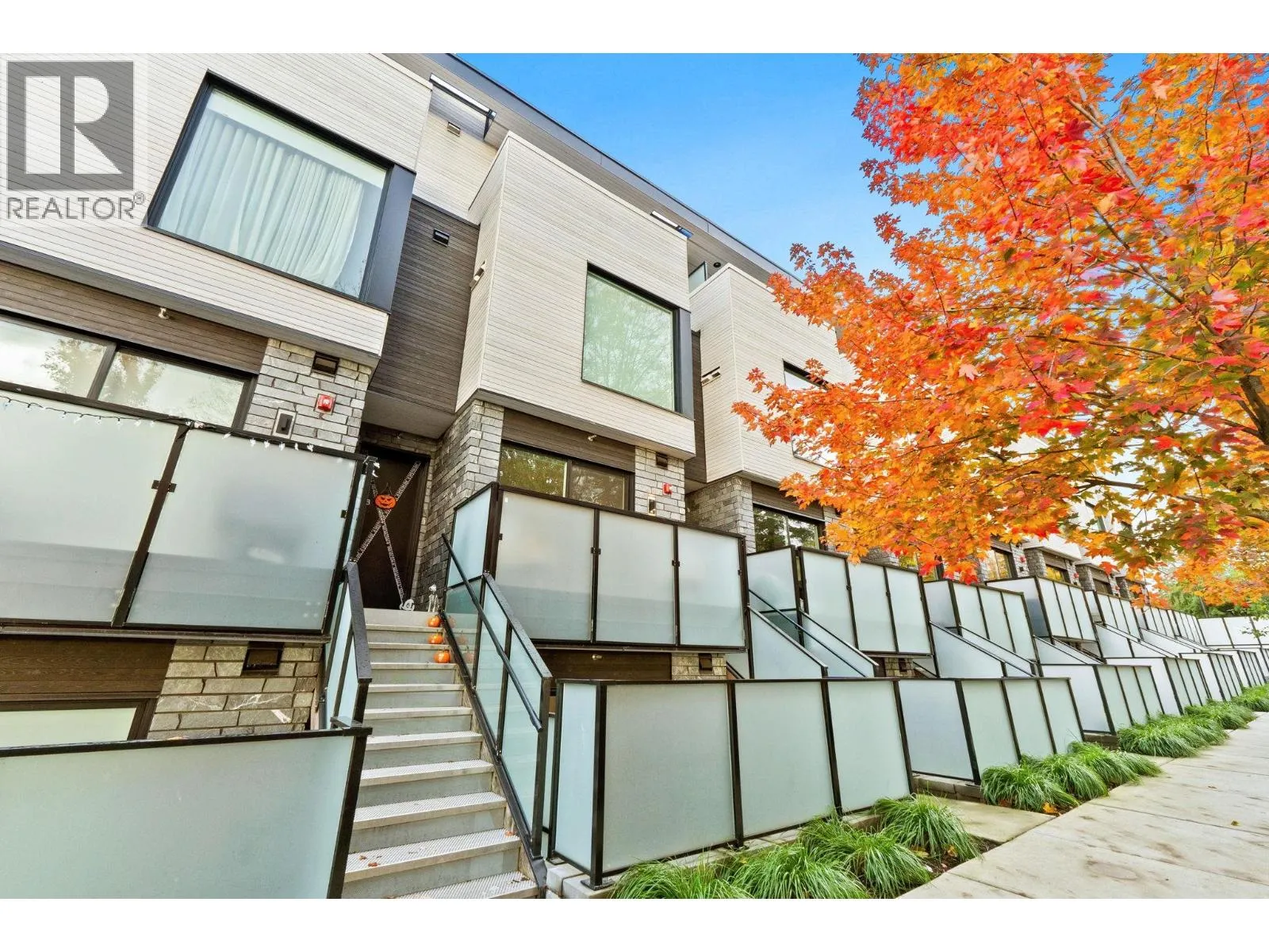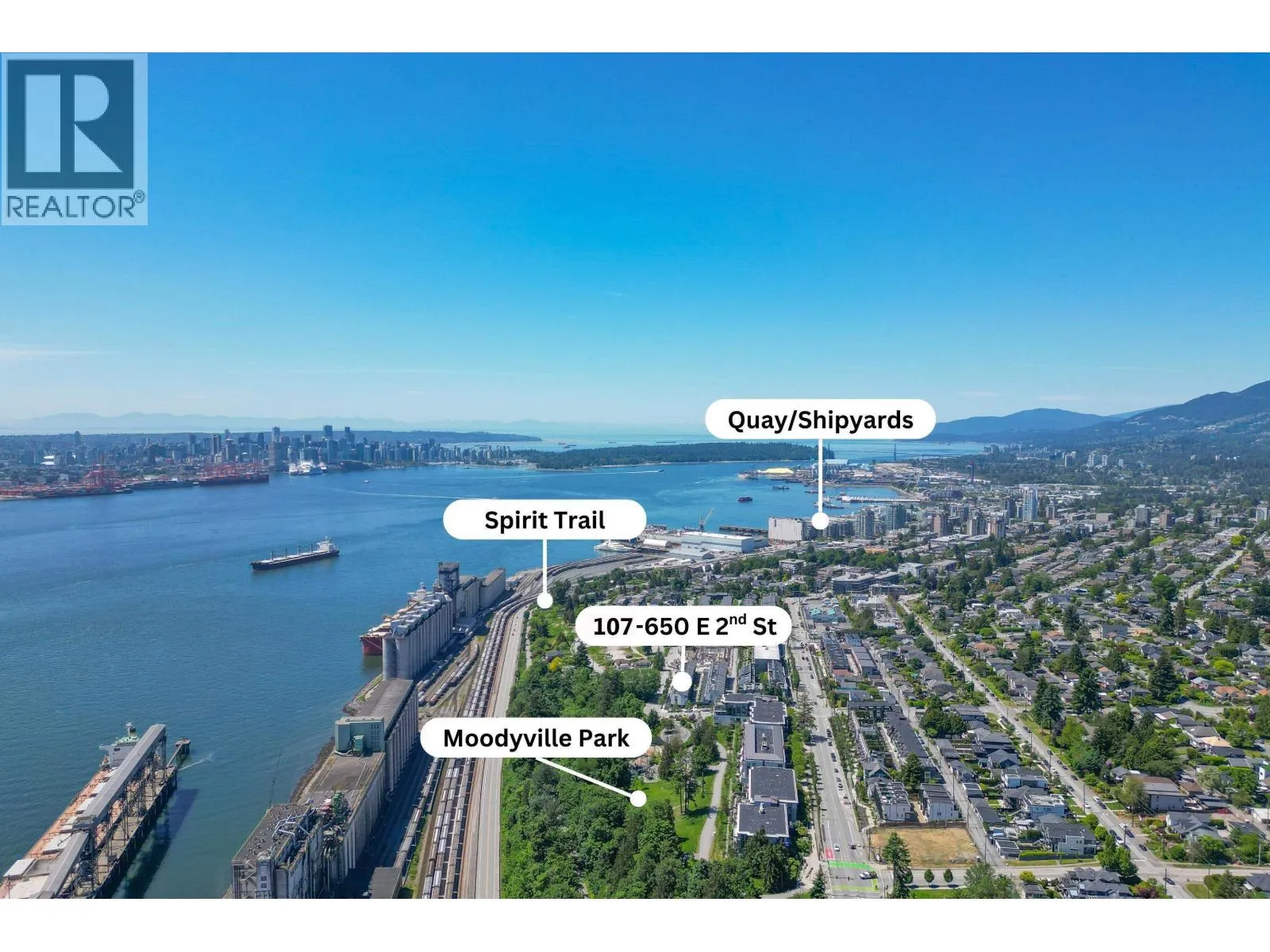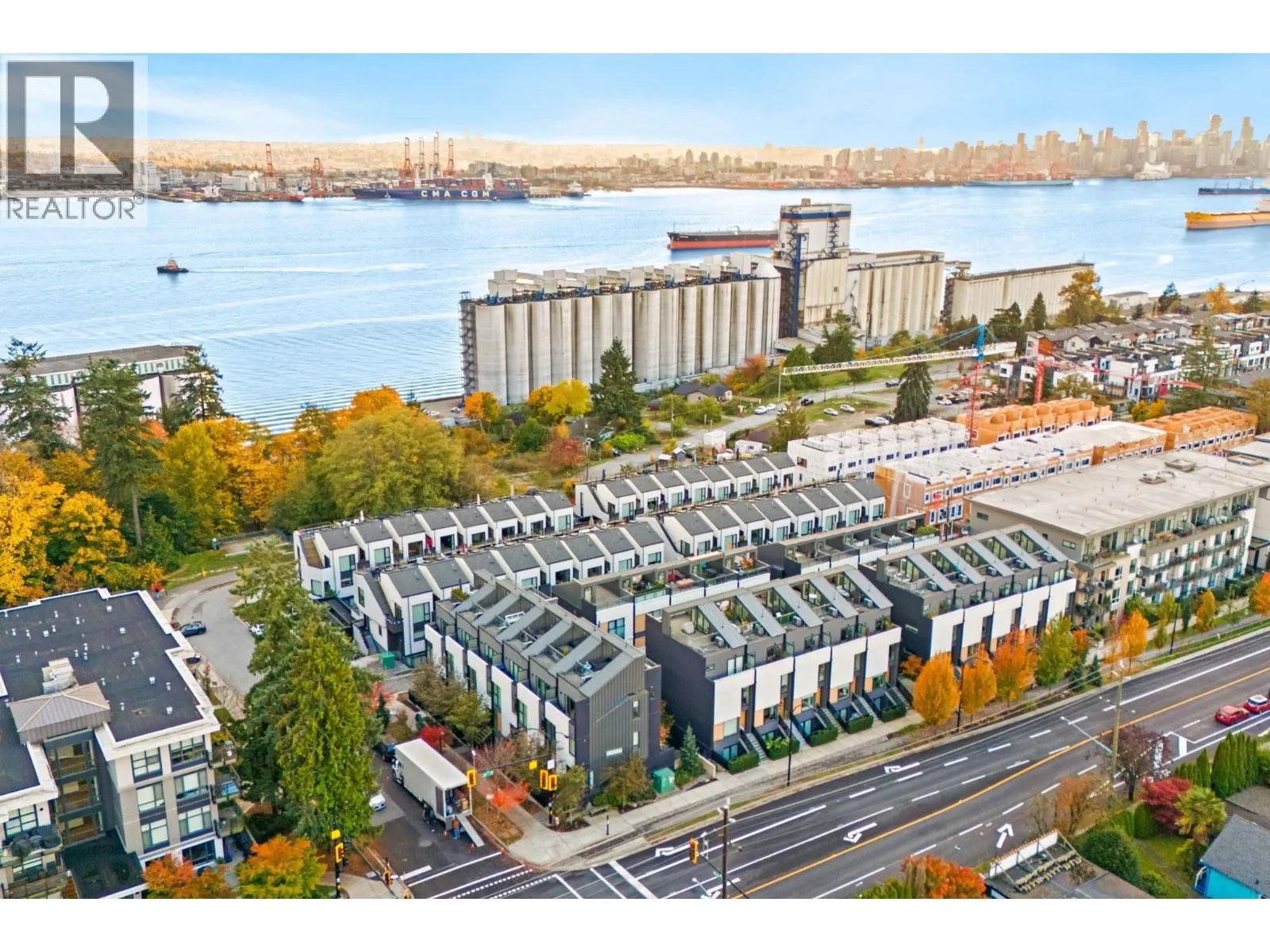 Modern design meets North Shore living at its best in this bright, South facing townhome at Morrison On The Park. Enjoy an open concept kitchen, dining, and living area that flows to a sunny deck with ocean and city views-perfect for morning coffee or weekend entertaining. A spacious and bright main level bedroom opens to a private patio, while the lower-level primary suite offers a serene retreat with a spa inspired ensuite with double sinks. The flexible third bedroom or den is ideal for a home office, guest room, or nursery. Downstairs features a large and impressive rec room with overheight ceilings - perfect space for movie nights, a home gym or a guest room. A practical mudroom provides direct access to two parking spaces. One locker included. Set in Moodyville, one of North Vancouver´s most connected and evolving neighbourhoods-steps to Moodyville Park, the Spirit Trail, and transit, and just a 10-minute stroll to the vibrant Shipyards District with its restaurants, breweries, and waterfront energy. (id:27476)