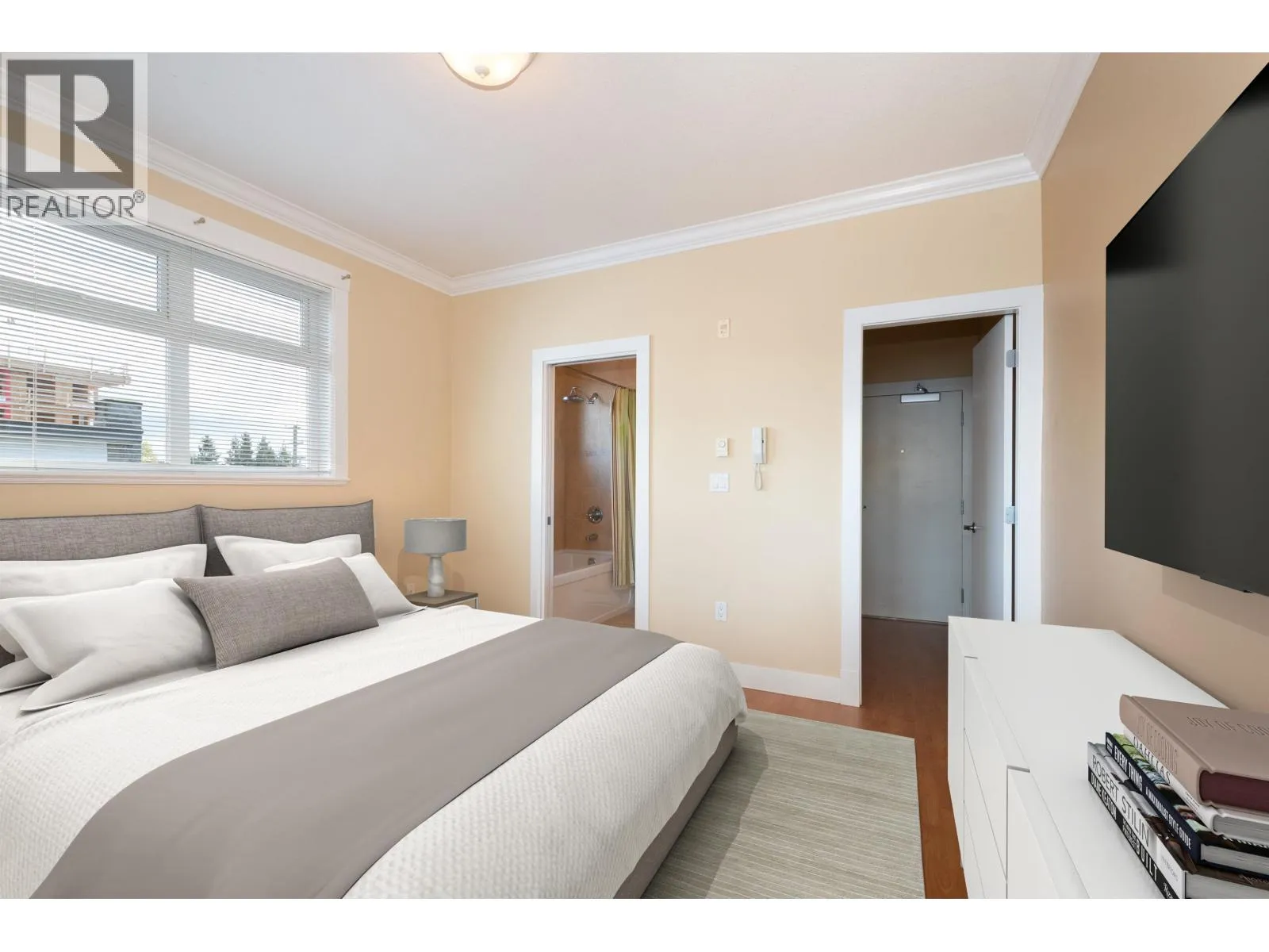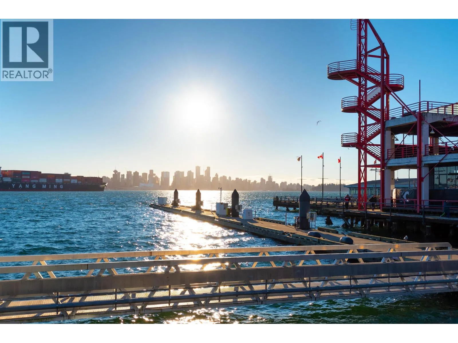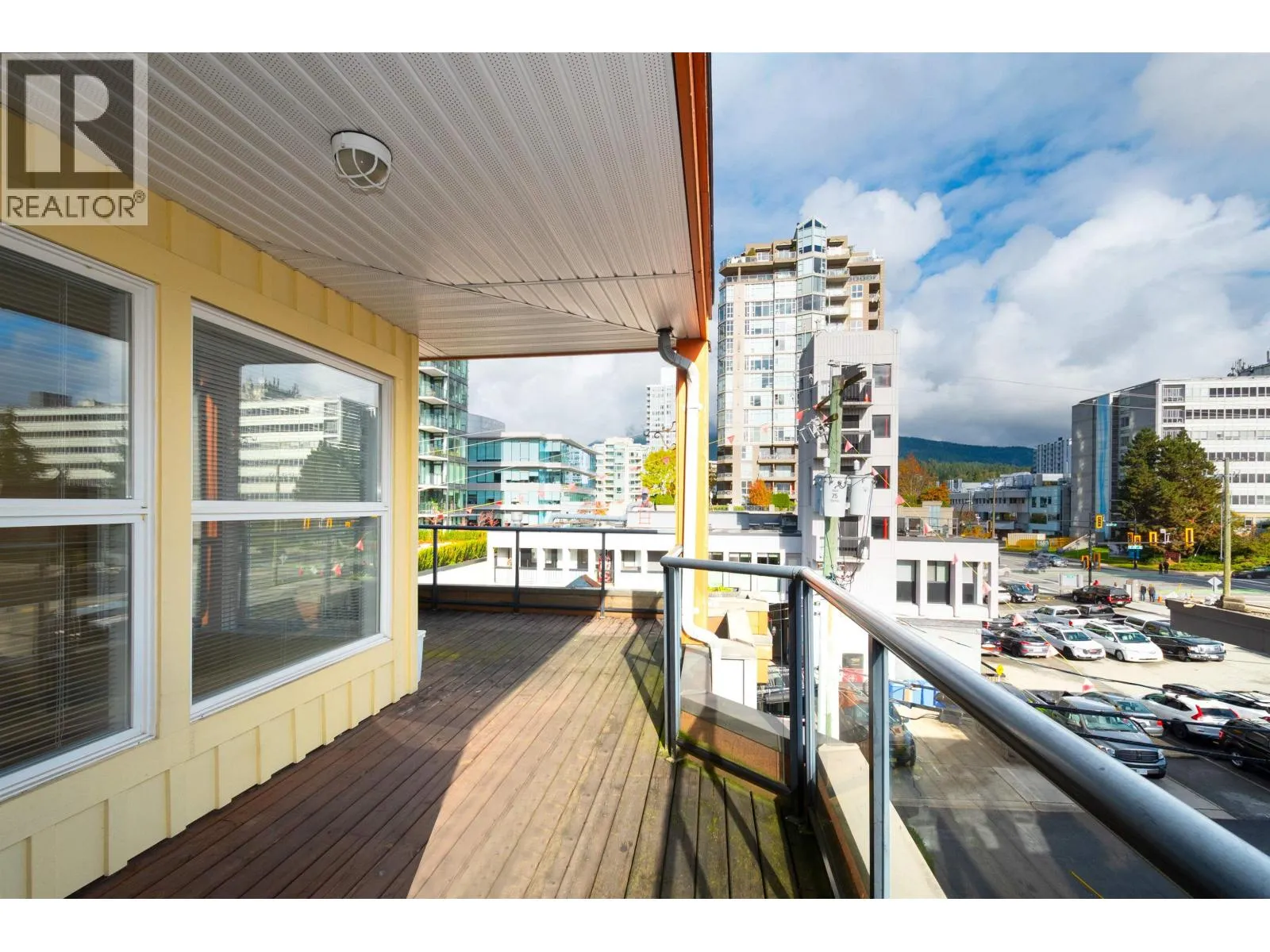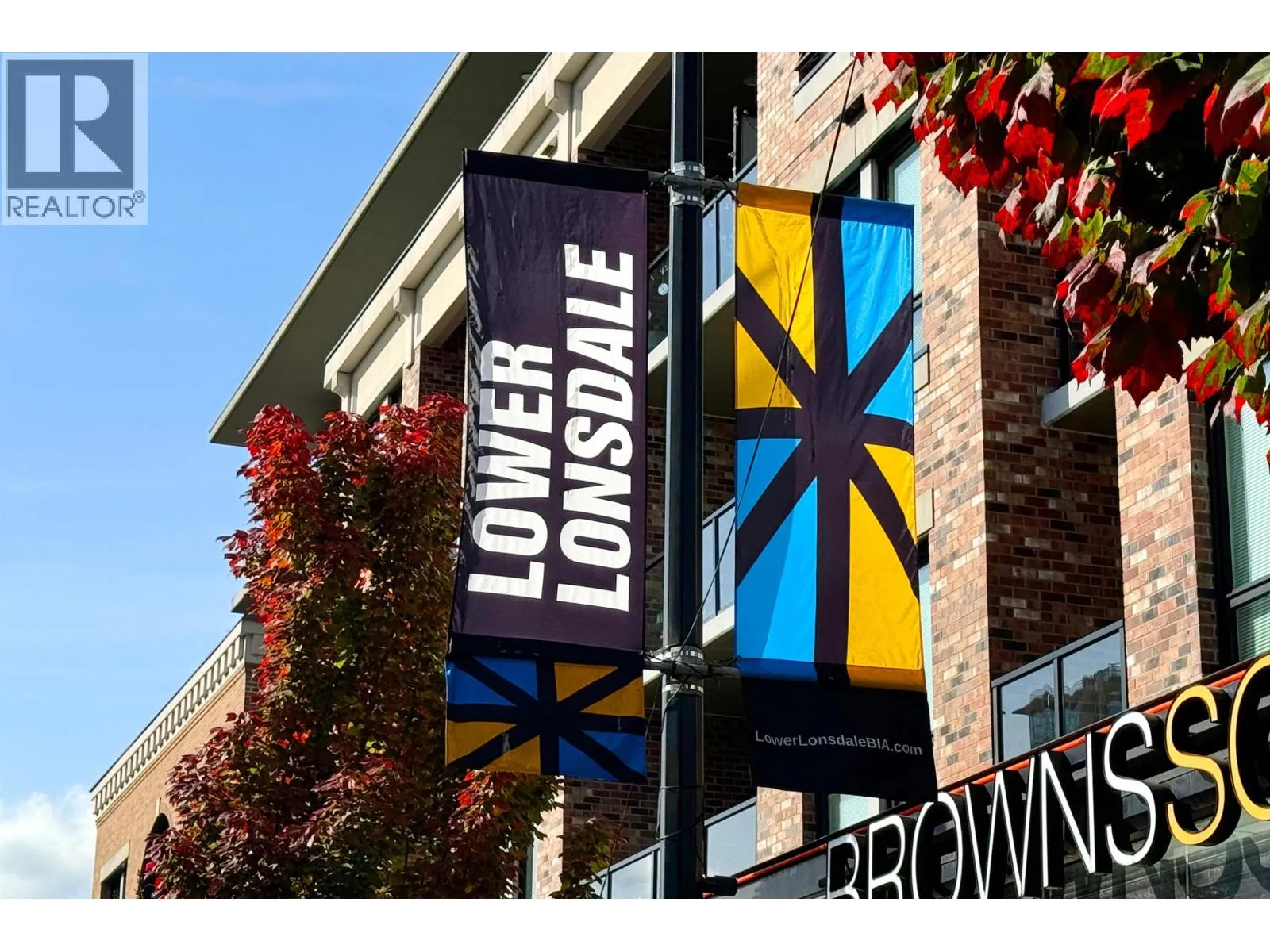 Welcome to the Monticello! A TWO LEVEL PENTHOUSE corner suite half a block from all the shops and restaurants of Lonsdale. At over 975 sq. ft., this 1 bdrm+ den loft home on a quiet street is truly unique. The large ROOF TOP patio, with views of the city and mountains, is perfect for entertaining. The bedroom w/ensuite is on the top floor, very private with lots of natural light. The main level features a big open space with high ceilings, and the kitchen is very functional w/a pass through bar. One more patio on the main level as well, great for BBQing. There is a den (would make a great nursery/guest bdrm) and powder on the main, plus storage under the stairs. One parking/one storage locker, pets allowed. A great home in a fantastic location! (id:27476)