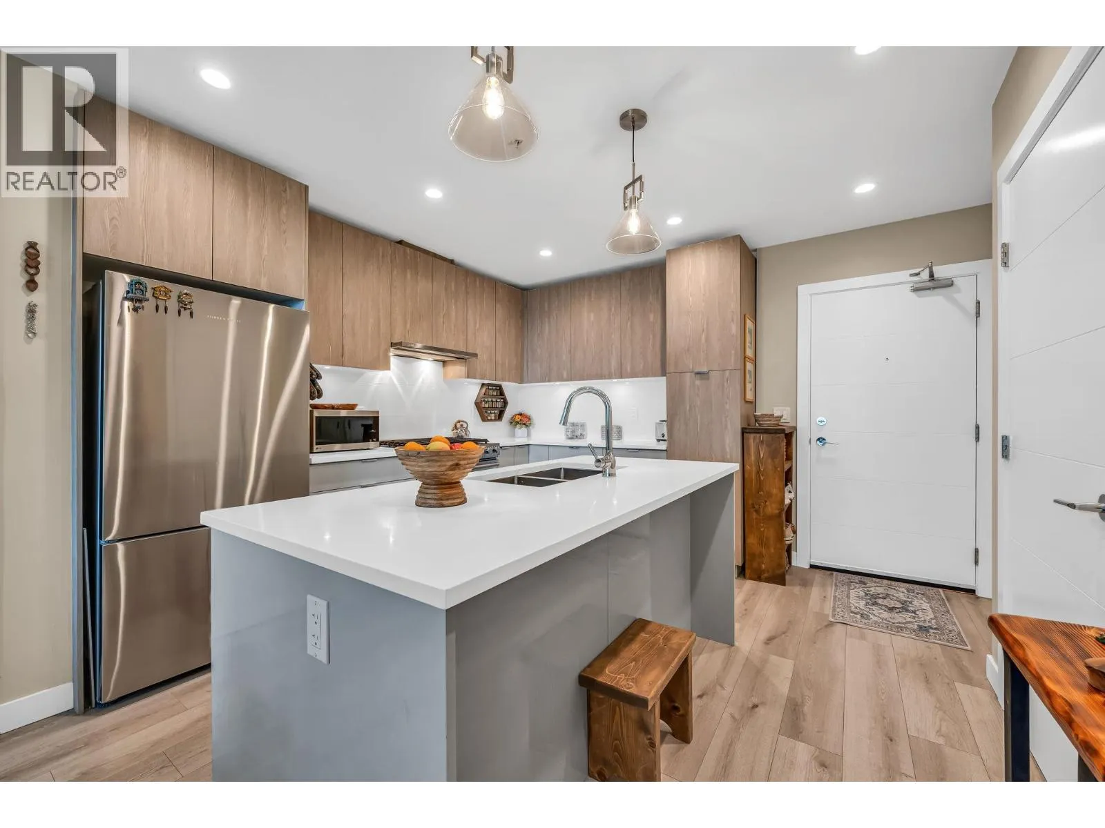 Experience living at The Crest! Step into this stunning 2-bed, 2-bath home where sophisticated, open-concept design meets effortless style. The chef-inspired kitchen features quartz countertops and high-end S/S appliances. Ideal for hosting, the entertainers´ deck invites you to unwind with an evening martini while soaking in views of the water and city. The Crest is a modern West Coast gem, nestled on a peaceful cul-de-sac in vibrant Central Lonsdale. Revel in the superior craftsmanship of SmartWoodTM Mass Timber and the peace of mind provided by Quiet HomeTM technology, delivering remarkable sound insulation. Steps from Whole Foods, The Quay, Victoria Park, trendy Lonsdale shops, and Seabus. Amenities include a fitness studio, a party room, a dog wash, a bike repair station, and a dog walking area. (id:27476)