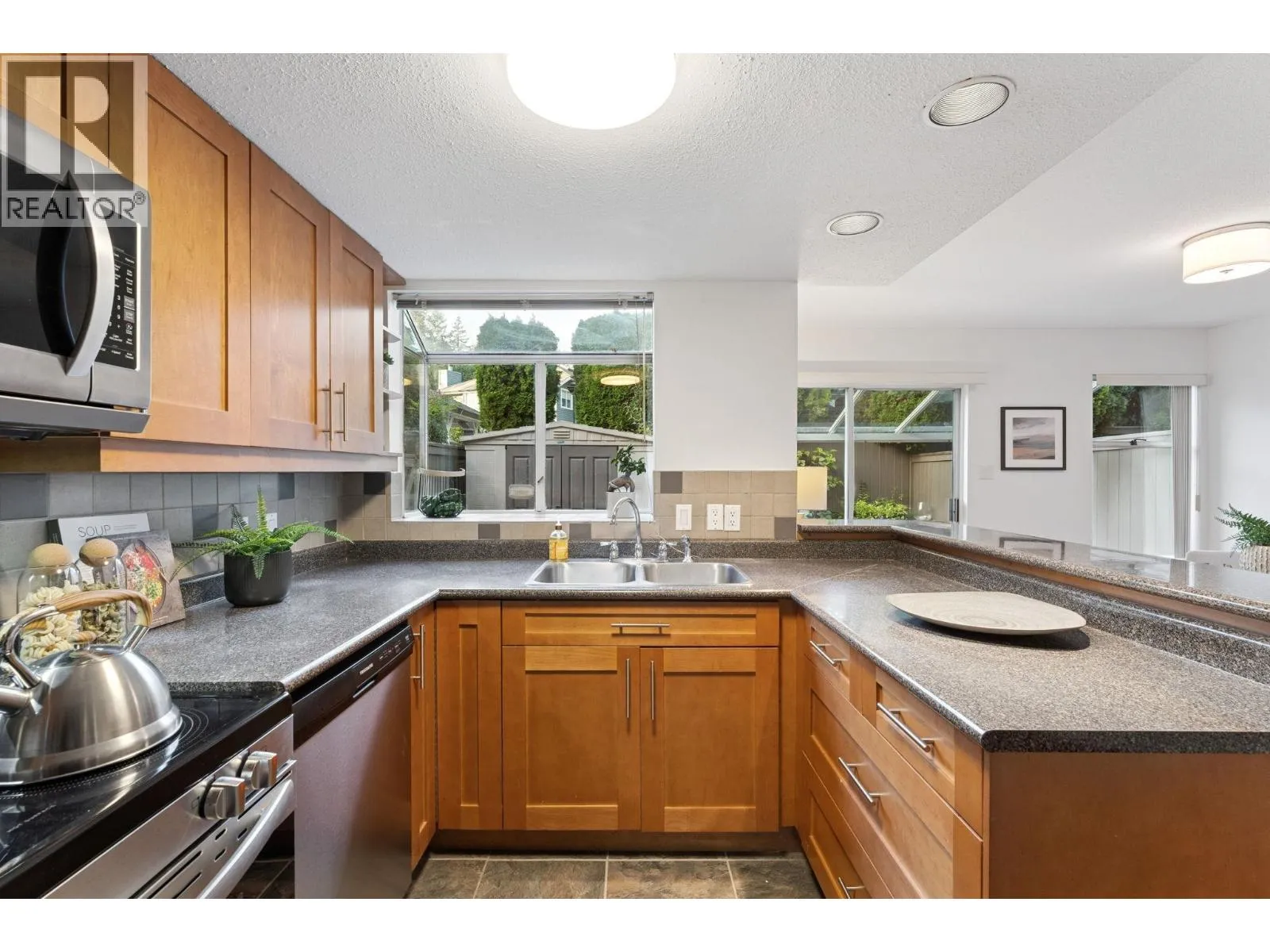 McCarney Lane by BOSA- this house-sized townhome truly has it all. Offering 4 bdrms/4 bath over 2,000 sq.ft, + 2 parking... this corner home combines space, privacy and unbeatable value in one of North Van's favourite communities. The kitchen features new appliances, a charming garden window, and an eating area/family space that opens to a partly glass-covered patio-perfect for year-round enjoyment. The main level offers a cozy wood-burning fireplace and a dining area built for gatherings and good conversation. Upstairs, the king-sized primary suite with walk-in closet and en-suite bath feels like a private retreat, with two additional bedrooms for family or guests. The finished lower level adds a fourth bedroom, full bath, and spacious rec room-ideal for kids, teens, or home office needs...or maybe a movie theatre? This pet-friendly complex features a new children's play area and sits along a popular bike route-steps to United Strangers Coffee, Canlan Ice and McCartney Creek Park. Open Sun Nov 16th 2-4pm (id:27476)