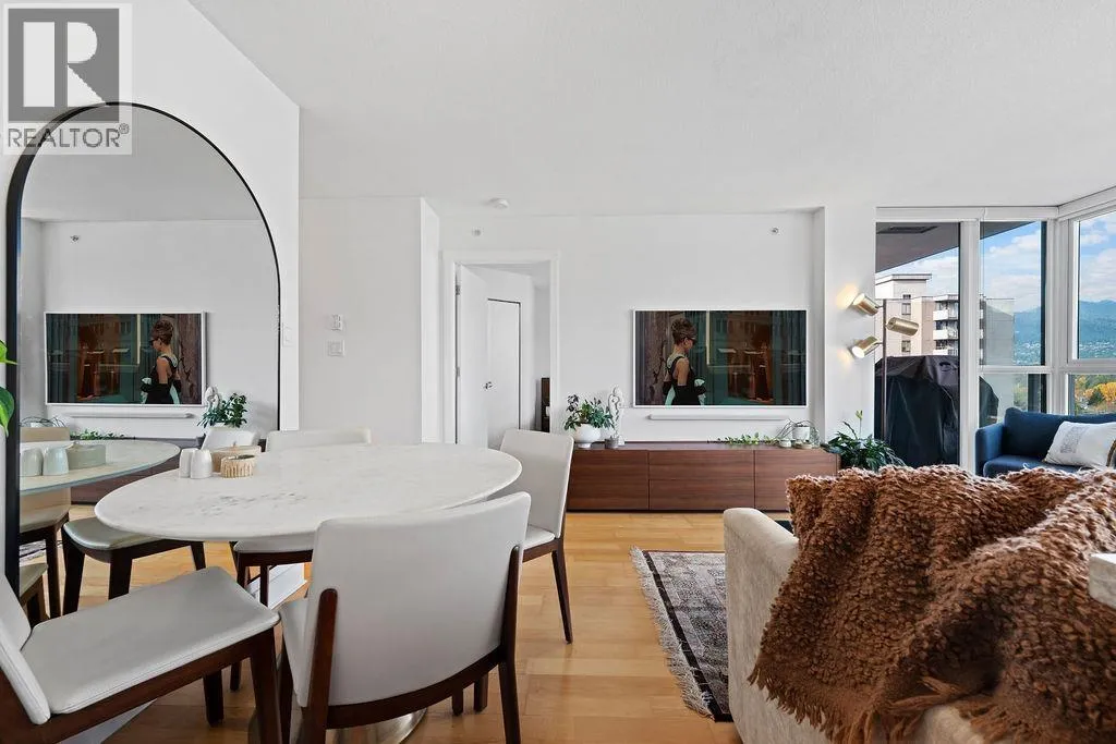 Welcome to THE SILVA! This bright 1-bedroom + den home on the 10th floor offers beautiful CITY, MOUNTAIN, and LIONS GATE BRIDGE VIEWS through FLOOR-TO-CEILING WINDOWS. The kitchen appliances, washer/dryer, and blinds were UPGRADED in recent years, giving the home a fresh, well-cared-for feel. Enjoy a SPACIOUS LAYOUT with a walk-in closet, cozy gas fireplace, and a private balcony for relaxing. Comes with 1 parking stall and 1 storage locker. This is all about LIFESTYLE-an easy, WALKABLE location in Central Lonsdale, steps to shops, cafés, and transit, in a sought-after CONCRETE BUILDING with great amenities. (id:27476)