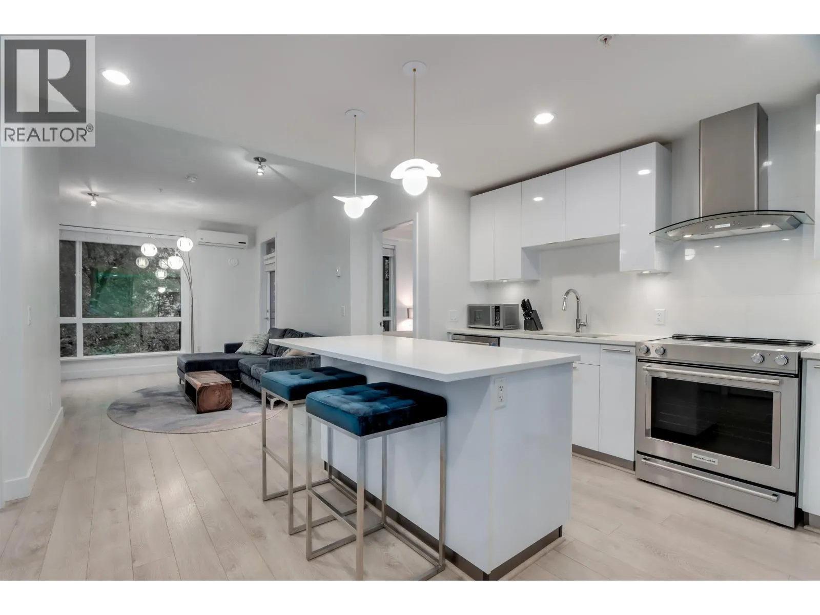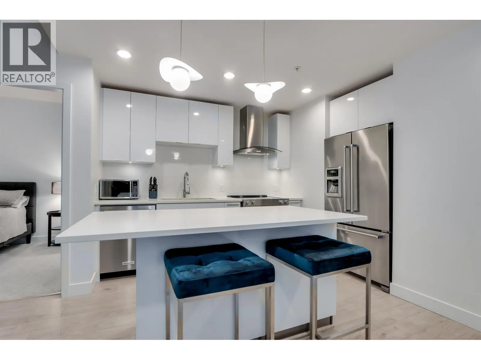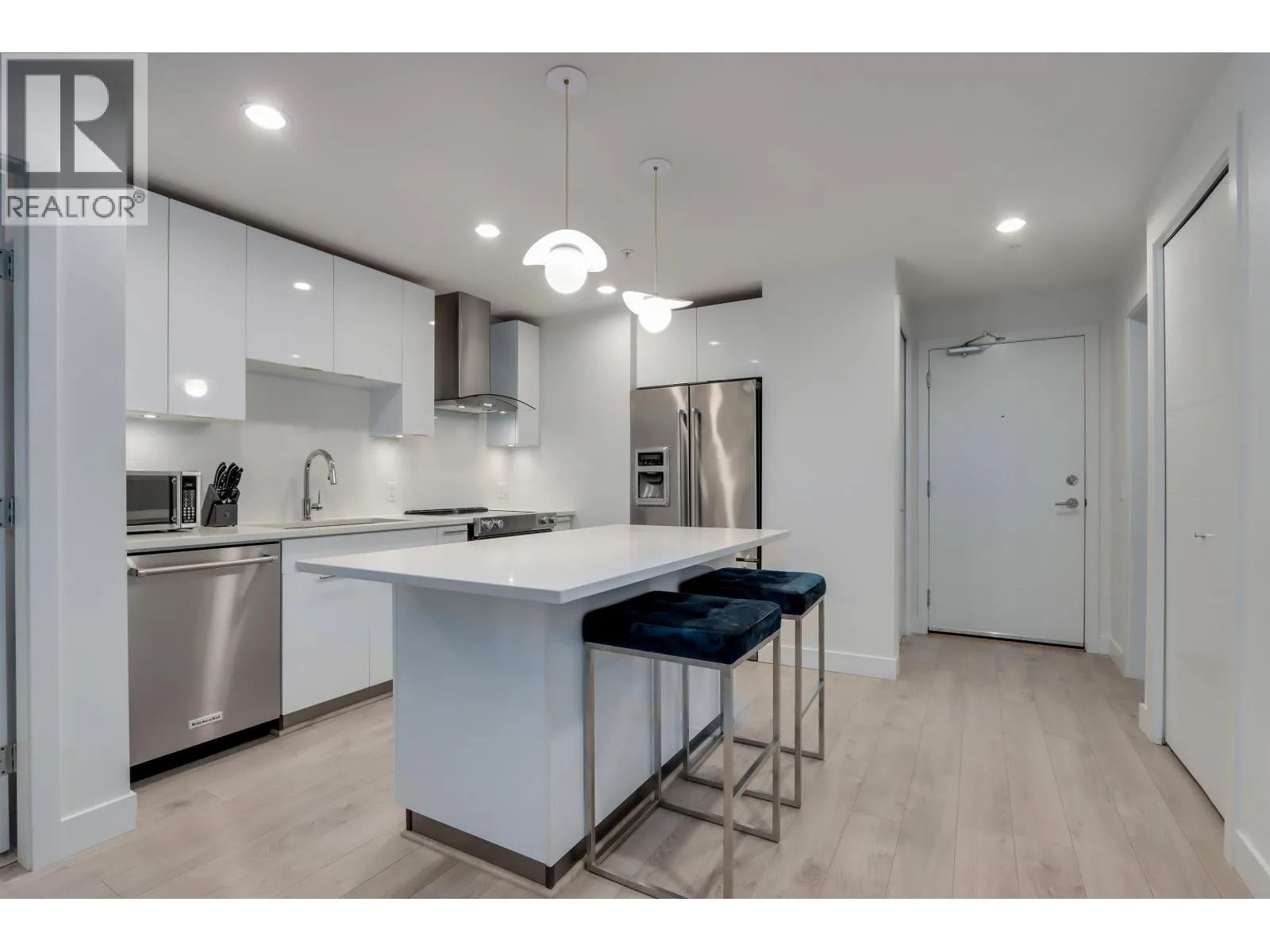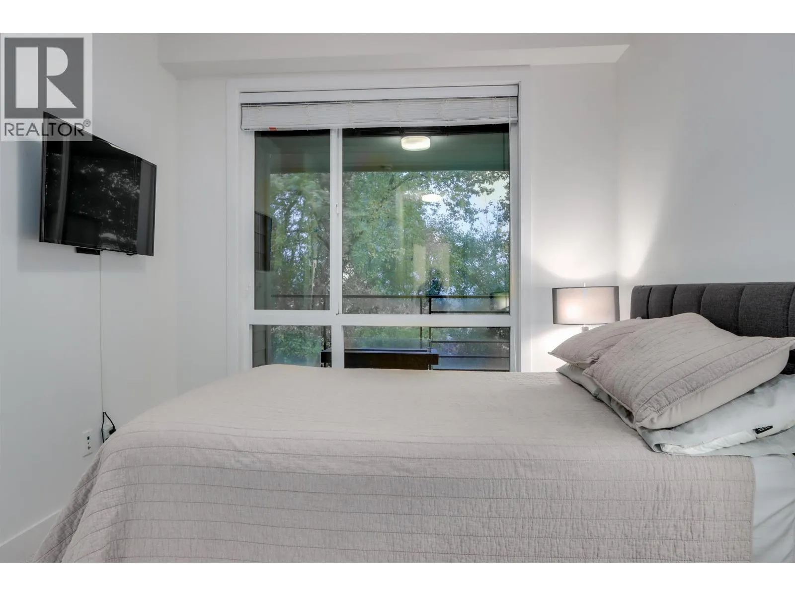 Welcome to The Shore! This award winning development by Adera was completed in 2016. The functional two bedroom, two full bath plan is west facing to trees and is in excellent condition. Lovingly cared for by the original owners who have never rented this suite. New carpeting in both bedrooms. You'll love the optional air conditioning installed by the developer on those warm summer afternoons. The oversized balcony is great for entertaining. This building has the recreation facilities on the main floor for easy access. No need for a gym membership with the well equipped gym, a fully equipped spin bike/Yoga room and a meeting/social room. The Trans Canada Trail access is at your building front door. Convenient location for shopping and transit you don't need a car to live at The Shore! (id:27476)