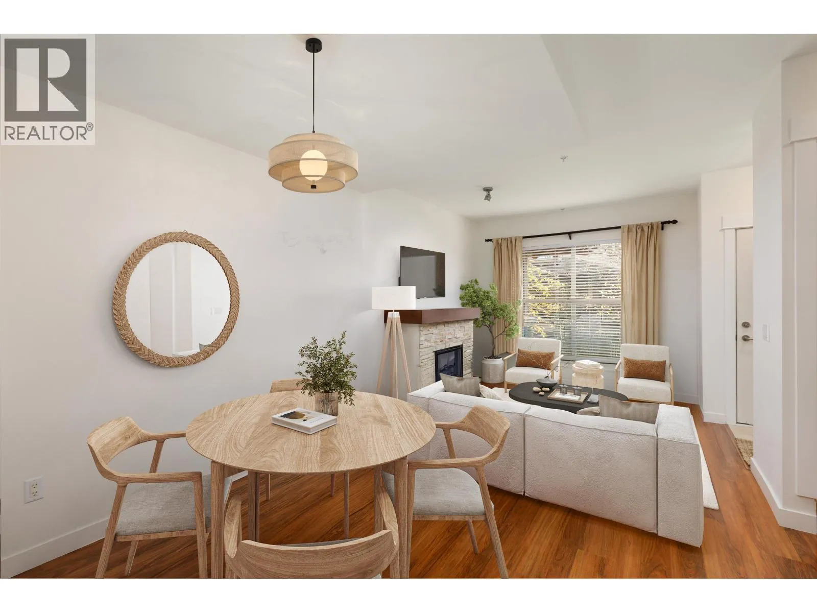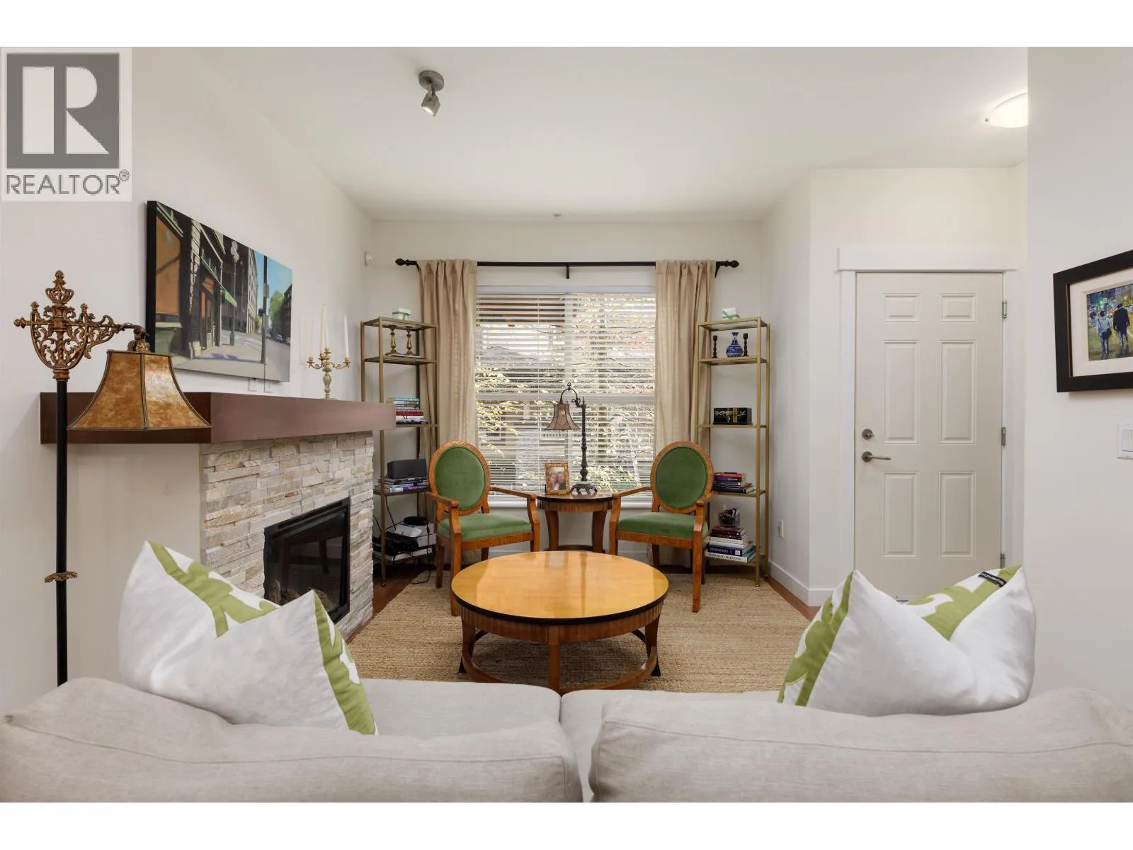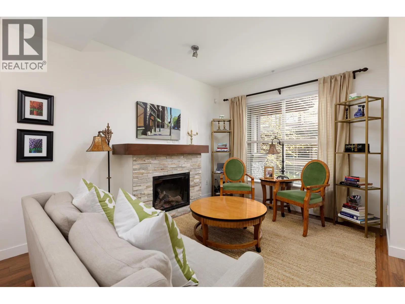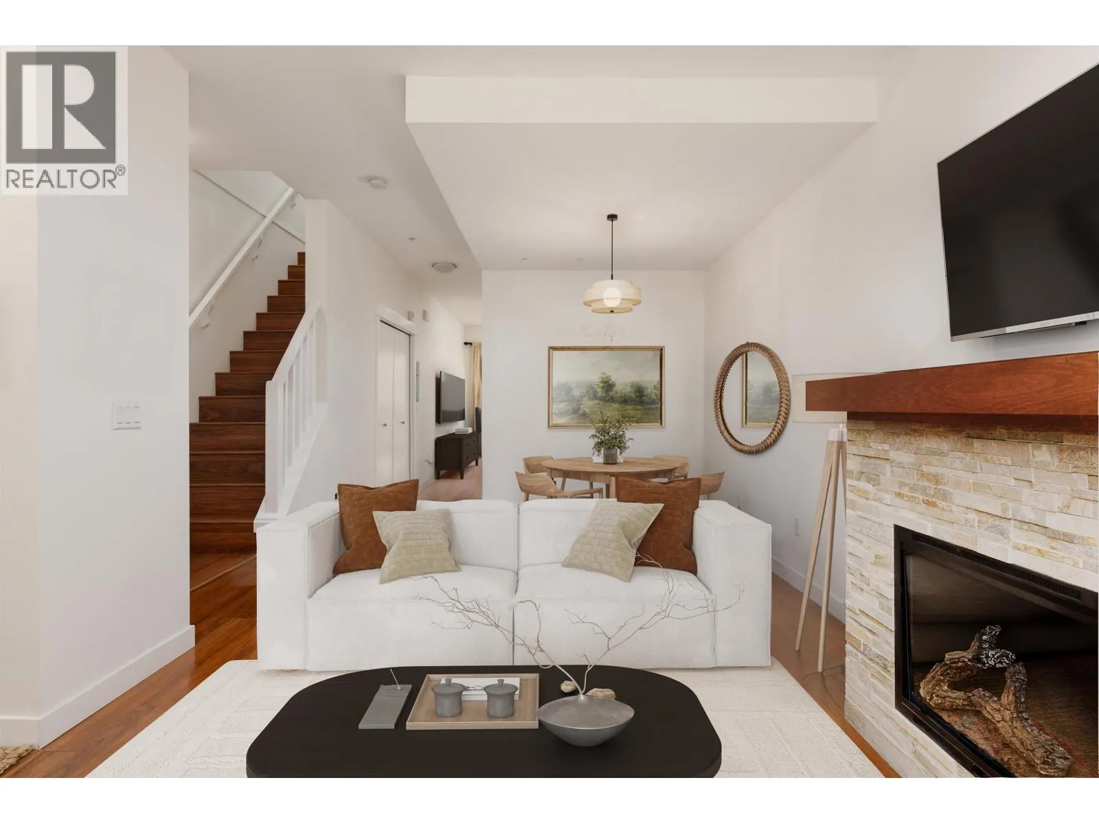 Incredible opportunity to move into a rarely available and beautifully inviting two bedroom + den townhome at the Avondale, conveniently located in the heart of vibrant Lonsdale. Uniquely situated in a quiet, tree-lined courtyard, enjoy peaceful living just a short walk from all the area´s best shops, restaurants and cafes. A cozy gas fireplace and bright, welcoming living space greet you as you enter, while the open kitchen and sitting area with private patio access make for great entertaining, summer bbq´s or quiet mornings with a coffee. Both bedrooms and the versatile den area can be found upstairs, with separation between the ensuited primary and secondary bedroom. Large windows and pleasant outlooks add to the home's overall appeal, as do the two side-by-side parking spaces, storage locker and warm community of neighbours. Be at the Shipyards and Seabus in 5 min with the North Shore mountains just up the hill. The future Harry Jerome Community Center is walking distance. Some photos digitally staged. (id:27476)