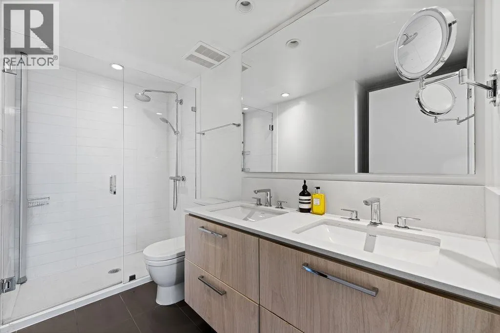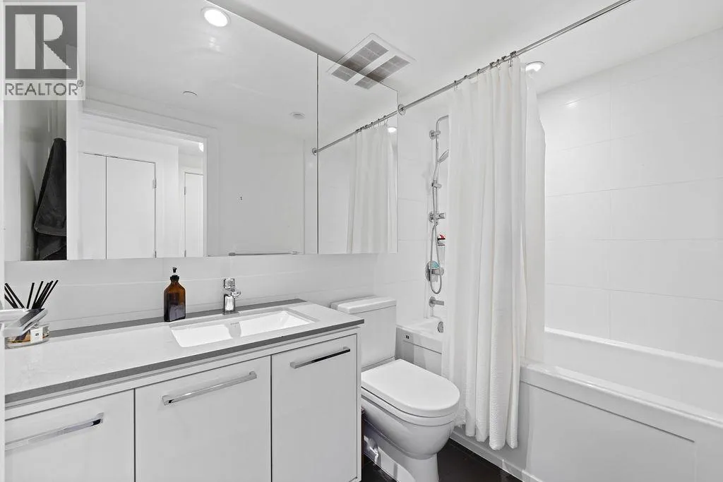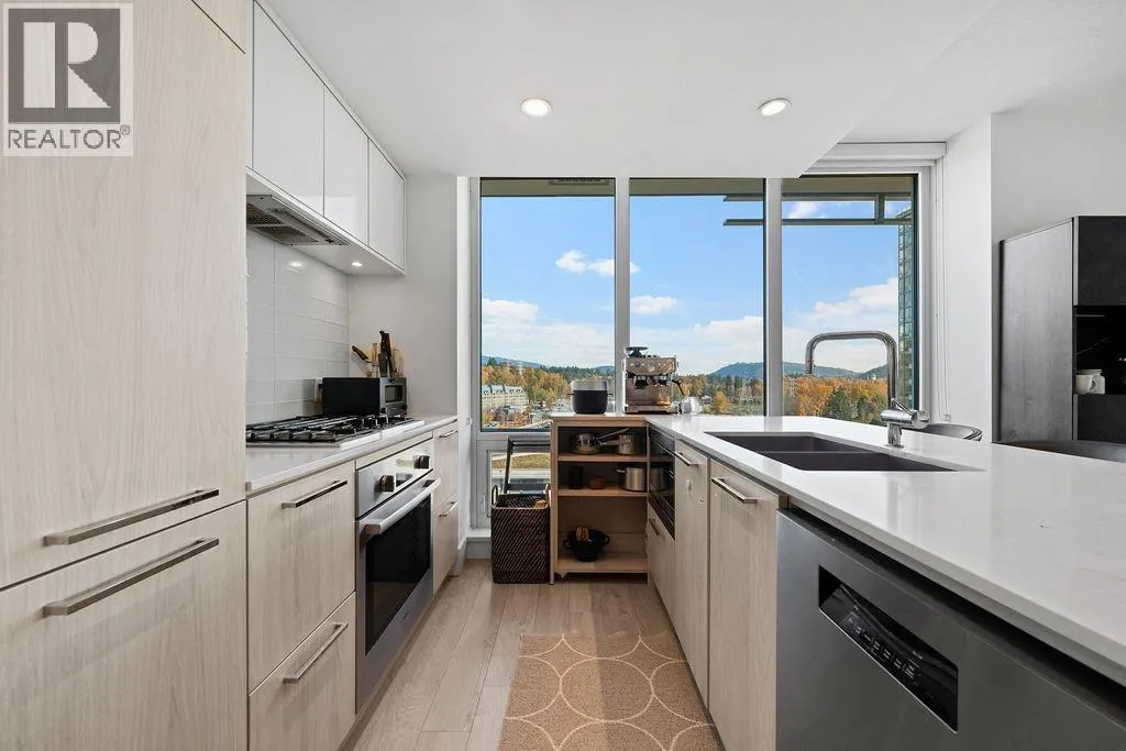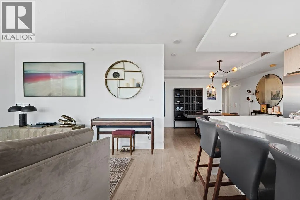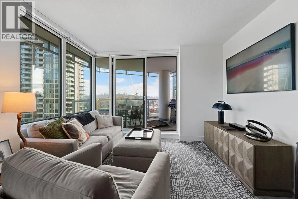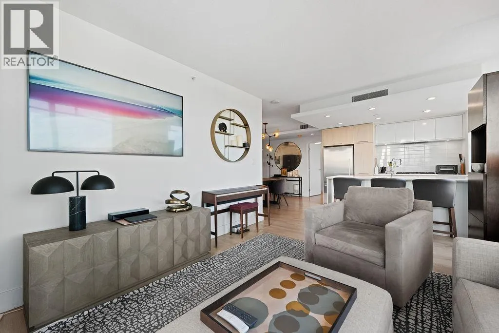 Discover this corner 2-bedroom residence offering bright multi-directional light and privacy. An open layout with wide windows showcasing city and mountain views, a modern kitchen with quartz counters, a gas cooktop, and a generous island, plus a welcoming dining area. The primary suite features ample closets and an ensuite with a walk-in shower, while the second bedroom is bright and flexible, paired with a full bath with a deep soaker tub. You get A/C, in-suite laundry, storage, underground parking, and a covered balcony with gas for BBQ. Residents enjoy the Denna Club´s state-of-the-art gym, 25m indoor pool, sauna, steam room, and lounge, offering resort-style comfort every day. All of this places you moments from trails, shops, and transit, making daily life effortless! (id:27476)