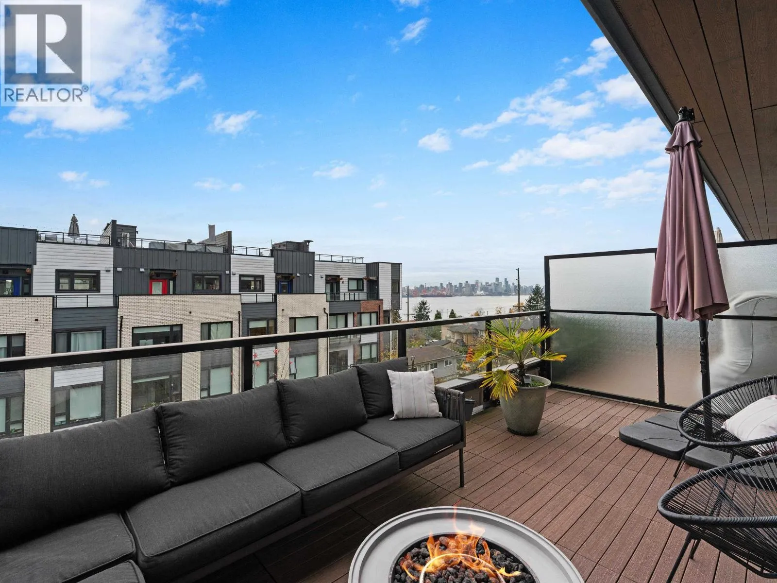 STUNNING city and ocean VIEWS in Moodyville! Founders Block South by Anthem: a QUALITY, LEED-certified build offers 4-bedrooms, den and 3 FULL baths and 3 outdoor spaces to enjoy, including an over 300 square ft private patio with natural gas, and oversized 18´ wide south-west facing off the primary to take in the views. Scandinavian-modern inspired interior design with in-floor radiant heat throughout and quiet HRV system. Convenient direct access to covered parking in the garage, upgraded with private Level 2 EV charger (no extra monthly strata fee for electricity), and built-ins by STOR-X in mudroom. Added bonuses are large locker and well-run strata. Stroll 5-mins to Moodyville Park, or 15-mins by foot to the Shipyards, Seabus and everything in between, including Lolo´s vibrant shops, restaurants and breweries. OPEN HOUSE: Sunday, Nov. 23, 2:00pm - 4:00pm. (id:27476)