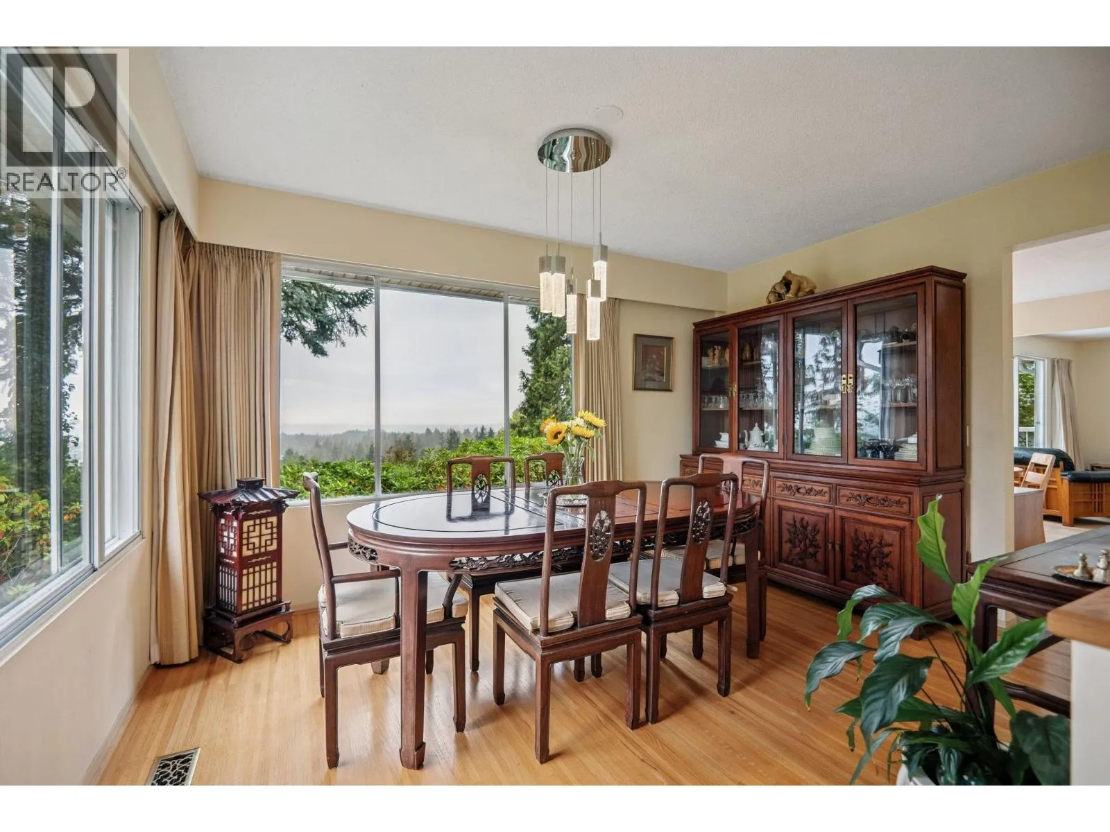 This exceptional home sits tucked away on a quiet cul-de-sac on the upper west side of Kilmer Rd, offering breathtaking views from Mt. Baker to Vancouver Island. From sunrise to city lights, enjoy the ever-changing sky - see fireworks across the border & planes moving in the distance. The main level is bright & expansive, featuring an open kitchen, dining, & family area, plus a large living room, formal dining room, den, & guest bedroom with full bath. Every south-facing room draws your eye outside; step onto a generous deck overlooking mature gardens & a lush, private yard. Upstairs, the serene primary suite includes a raised bed area, walk-in closet, lounge space, & spa-like ensuite, while two additional bedrooms feature charming stained glass details. The full-height lower level with its own private entrance & driveway invites your vision to use the expansive area as a suite, gym, or media room. A beautiful cedar sauna, double driveway w/RV or guest parking & dreamy gardens complete this special property. (id:27476)
