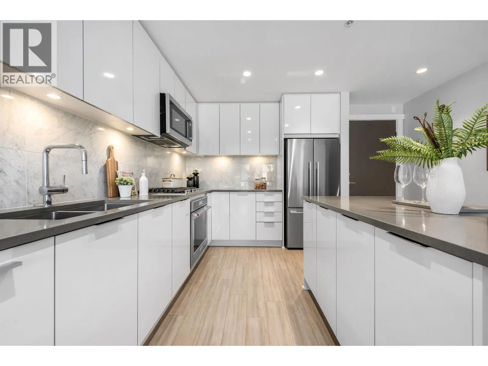 Welcome to this bright and spacious PENTHOUSE 2 bed, 2 bath home at Taluswood by Polygon, ideally located in the heart of Lynn Valley-just steps to Lynn Valley Centre, trails, shopping, and dining. This meticulously maintained residence offers stunning mountain views, a smart open-concept layout with 9´ ceilings, and large windows that fill the space with natural light. Enjoy a modern kitchen with stainless steel appliances, a large island, and premium tile backsplash. Complete with 2 side-by-side EV ready parking stalls, 1 storage locker, and access to a gym and lounge, this is a rare top-floor opportunity in one of Lynn Valley´s most sought-after communities. (id:27476)