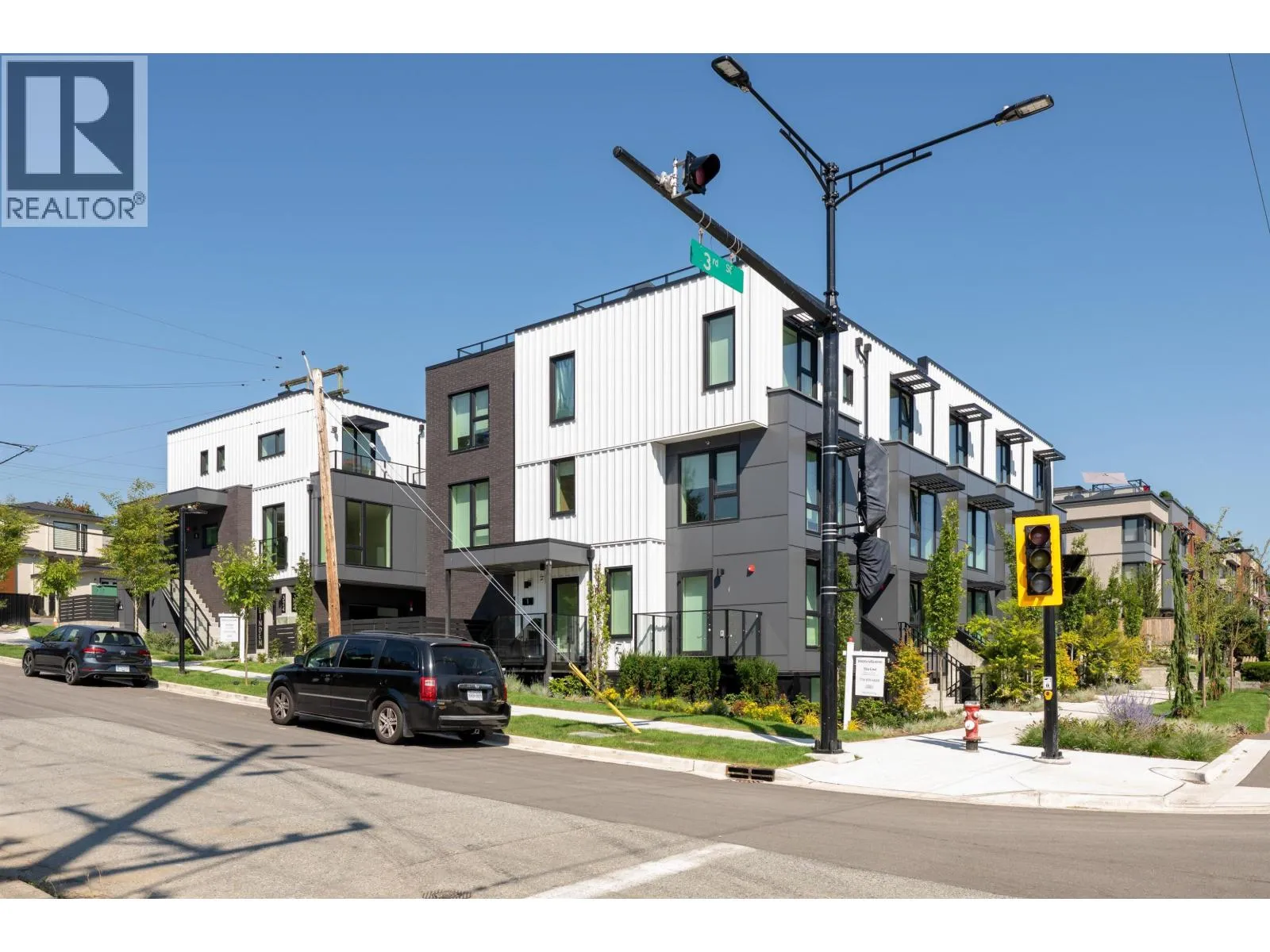 Welcome to THE LINDEN - a boutique collection of 10 modern townhomes in the heart of Moodyville with only 4 homes remaining, ranging from 1,400 - 1,682 sq. ft., these townhomes are thoughtfully designed by Cornerstone Architects and built to the Passive House Standard, keeping energy bills low and comfort high. This home includes a lock-off studio suite perfect as a mortgage helper, guest space, or private office. Inside, you´ll find expansive windows that fill the home with natural light, a balcony off the primary bedroom for your morning coffee, and premium finishes with high-quality appliances throughout. Located just minutes from the Lower Lonsdale Quay, you´ll be steps from shops, restaurants, and fitness centres, with city views and North Shore trails right at your doorstep. (id:27476)