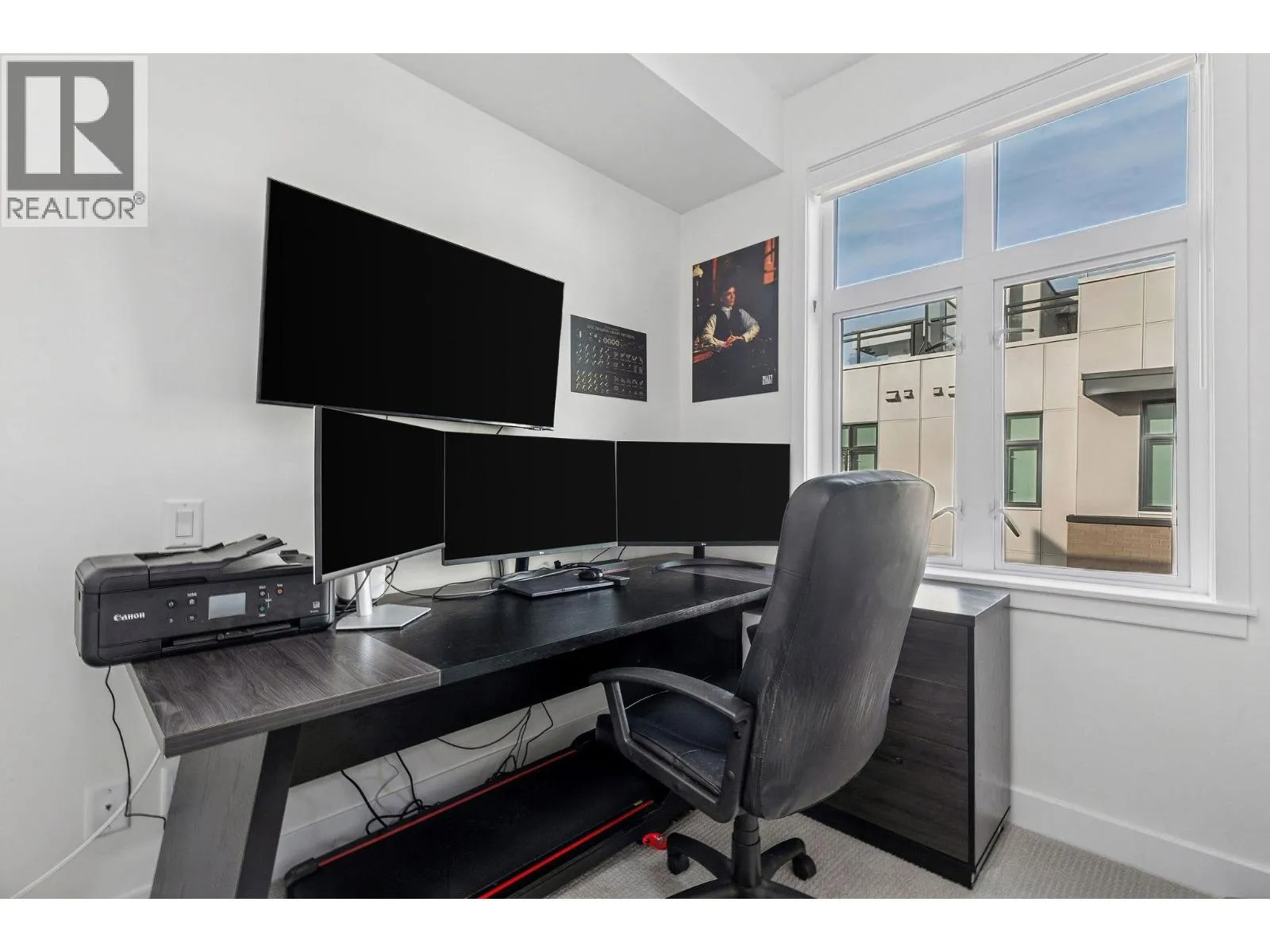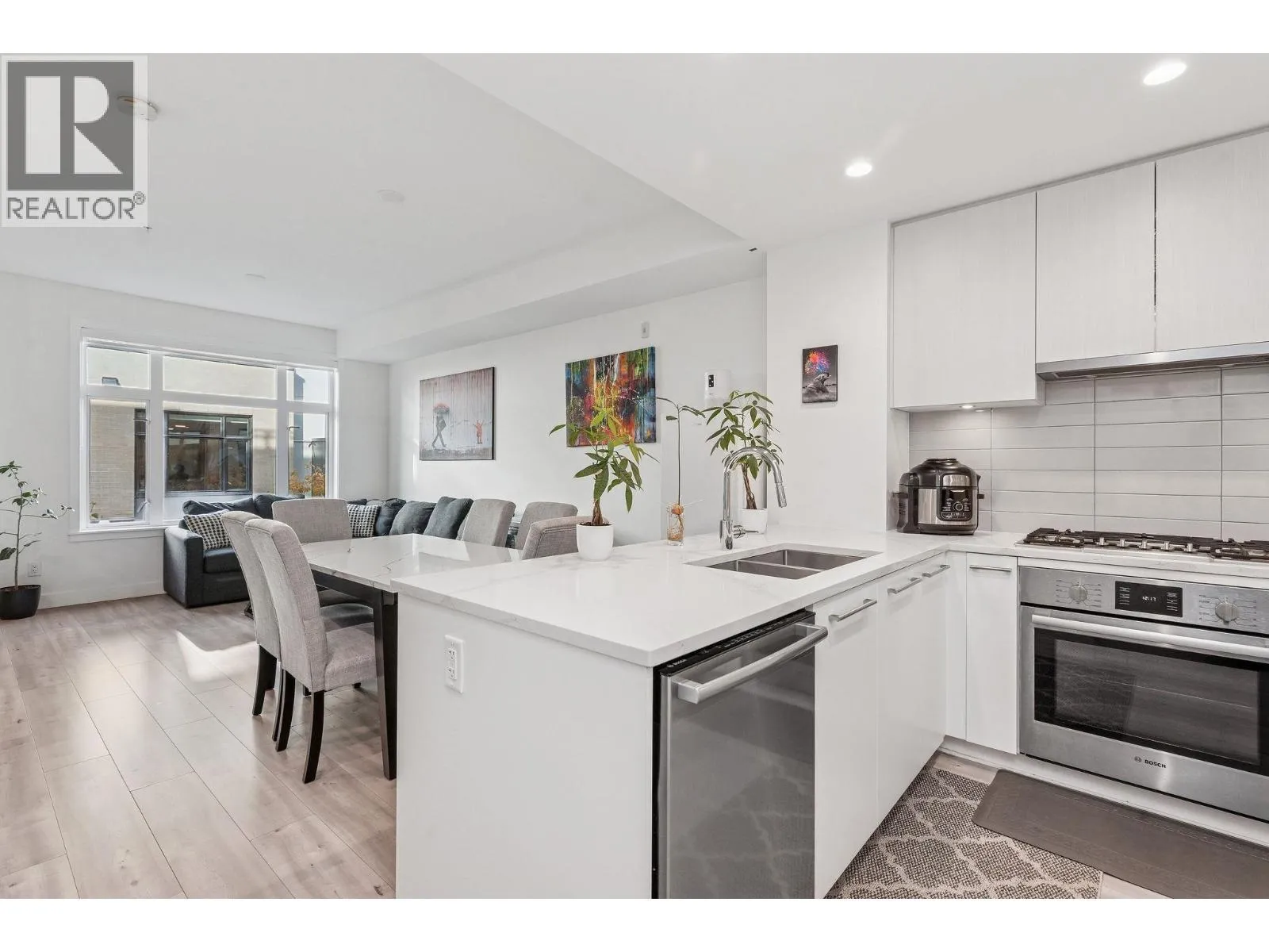 Welcome to Ebb & Flow in Lions Gate Village. This spacious 2 Bedroom + Den, 2 Bathroom upper level stacked townhome offers excellent privacy with a stunning rooftop patio. Features include an open layout, radiant in-floor heating, Bosch appliances, quartz counters, roller blinds, and a large primary bedroom with walk-in closet and ensuite. The den is perfect for a home office, nursery or 3rd bedroom as it's currently being used. This home comes with 2 parkings stalls and storage and A/C-ready rough-in. Steps to the new Community Centre, trails, and a short 4-minute drive to Park Royal and Ambleside Beach. This home lives like a 3 bedroom for the price of 2! Open House this weekend Sat/Sun 2-4PM! (id:27476)