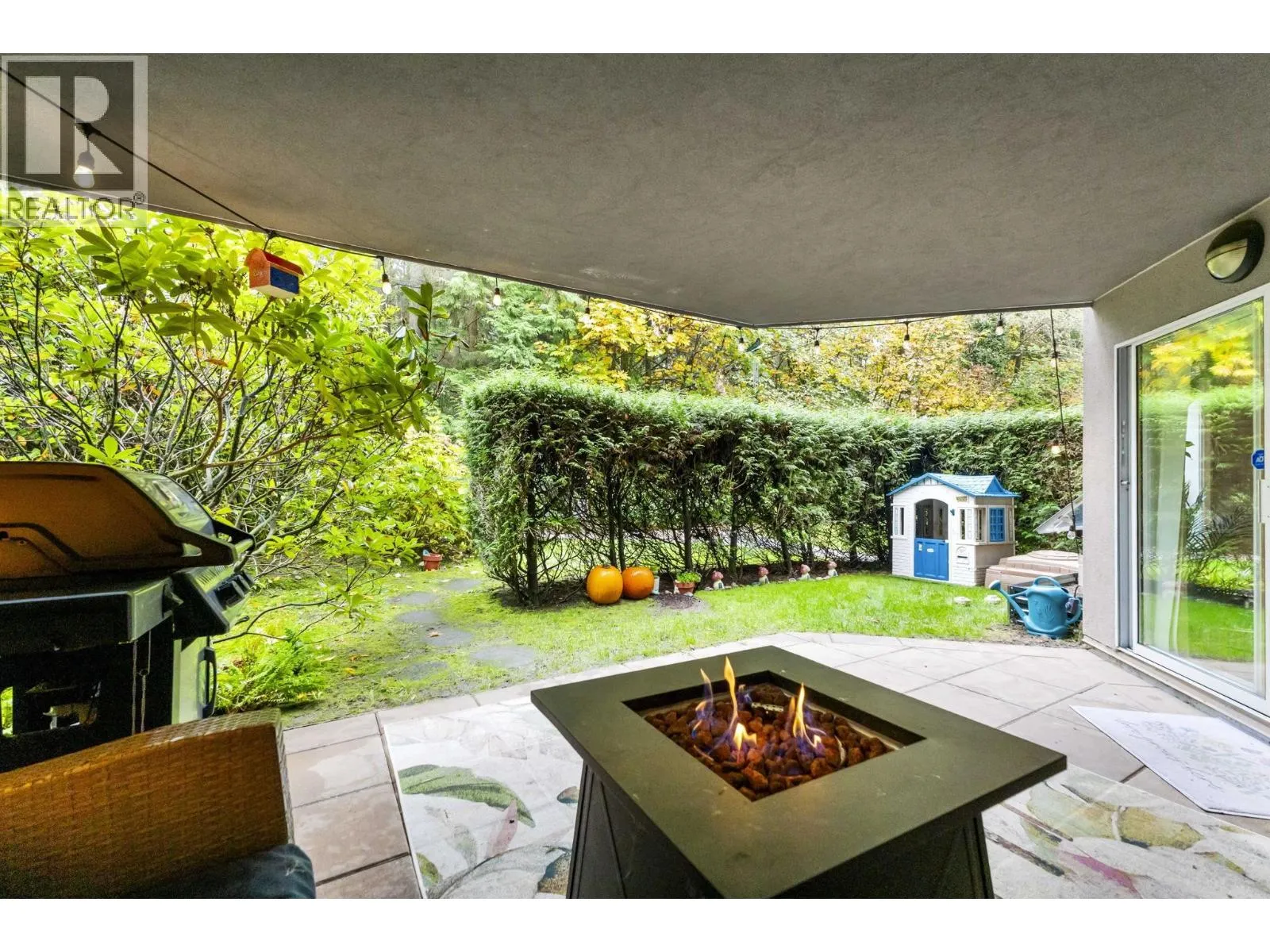 Welcome home to Mountain Terrace, a concrete-framed hidden gem nestled in North Vancouver´s natural surroundings. This ground-level corner suite offers 1,290 sq.ft. of open concept living with an expansive living room and dining area, 2 large bedrooms and 1 bathroom, a house-sized kitchen, and a cozy gas fireplace. Step outside to your private covered patio and take in lush greenbelt views, ideal for a morning coffee or evening gatherings. A fantastic location for outdoor lovers, with world-class walking and biking trails just steps away. Quiet and secluded, yet minutes from Parkgate Village, Deep Cove, golf courses, schools and more. One pet allowed, two side-by-side parking stalls included. Call today! OPEN November 22 (Sat) 12:00 - 2:00 PM. (id:27476)