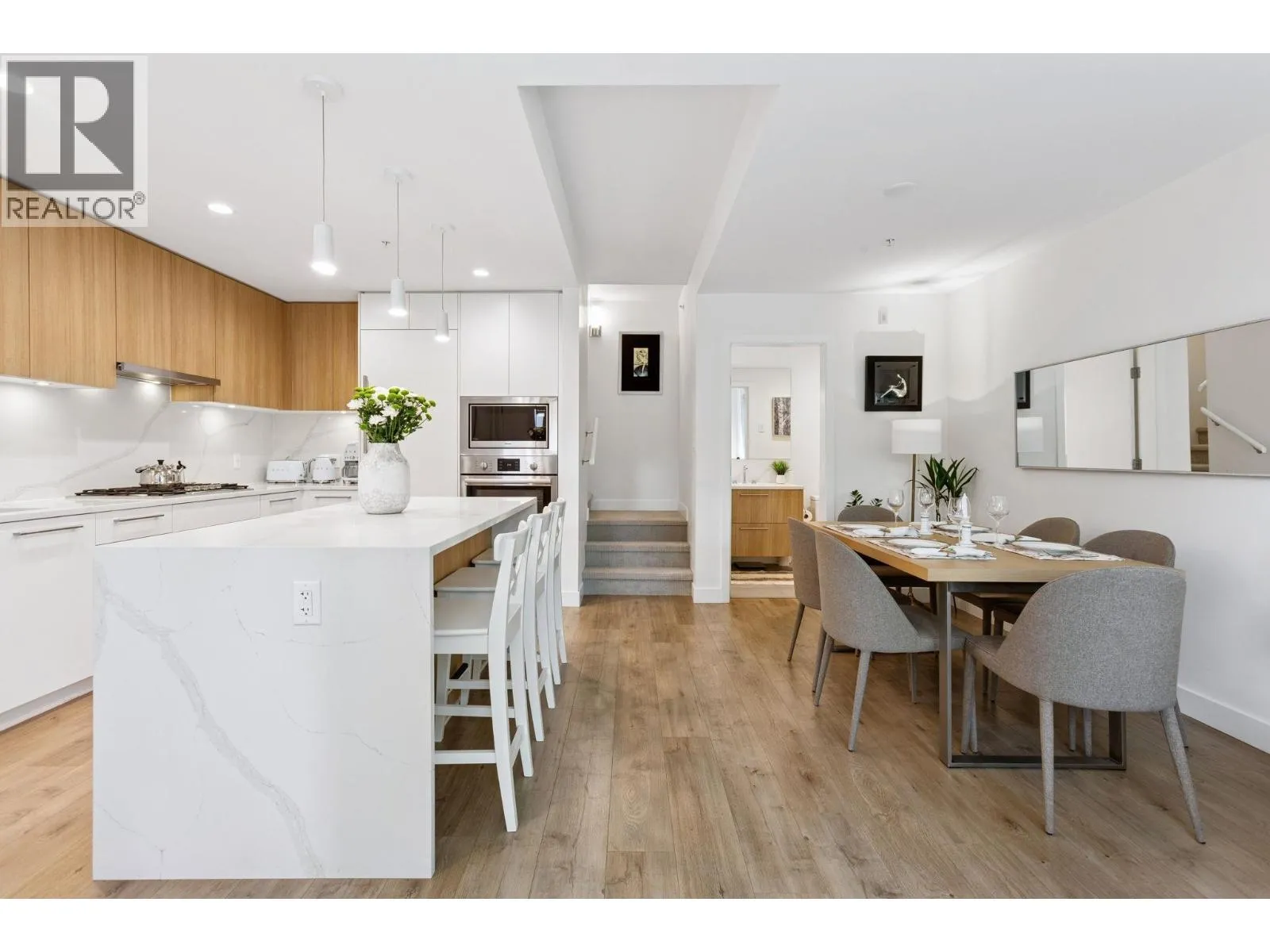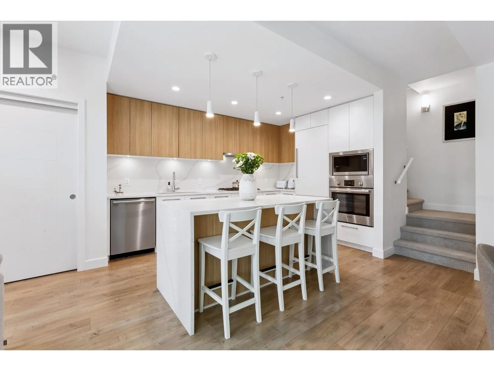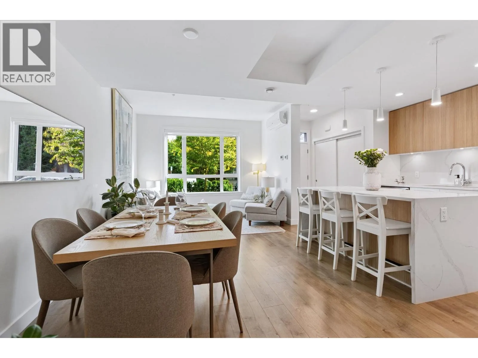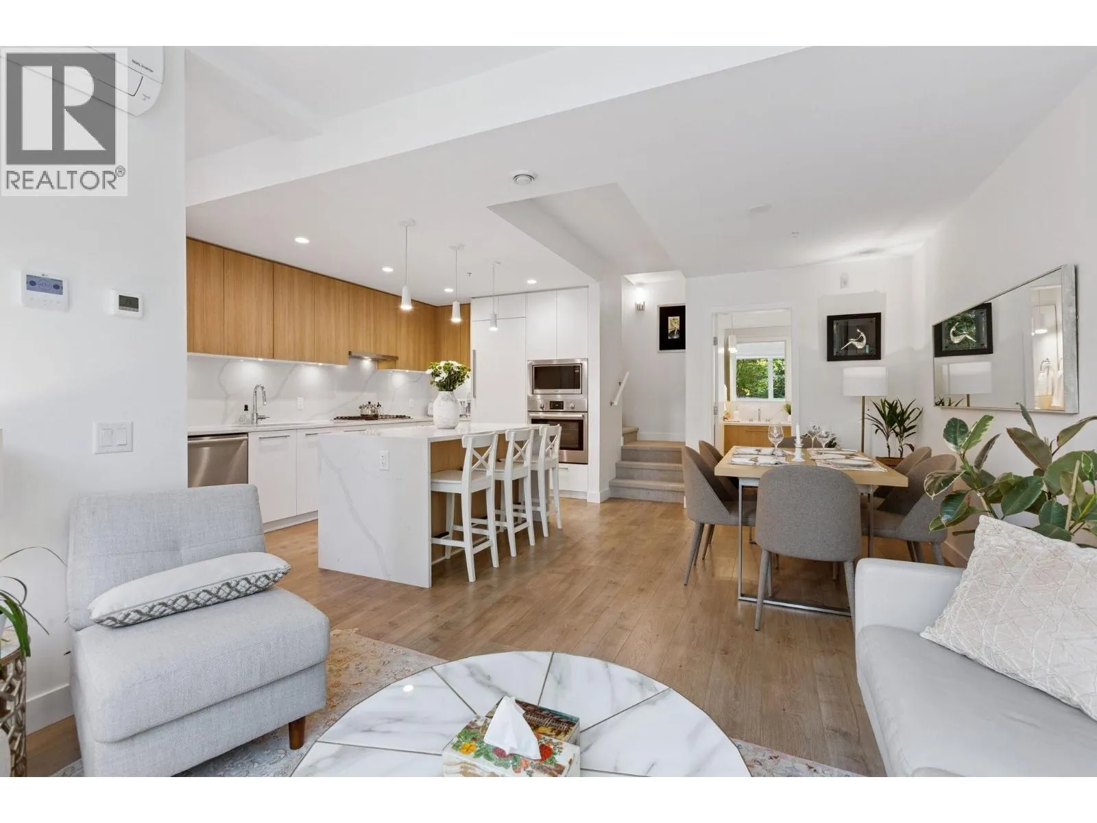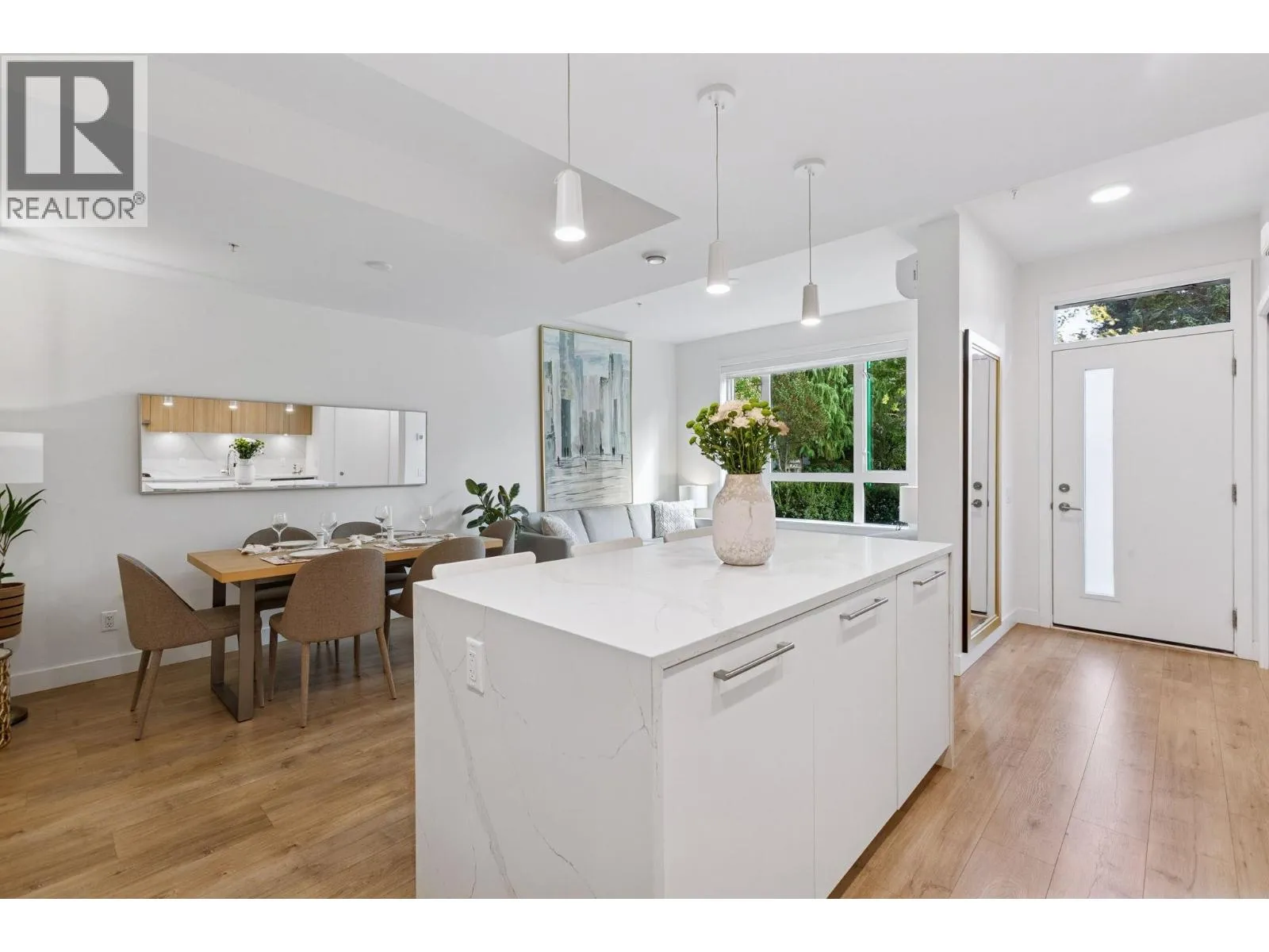 Welcome to Ebb and Flow! This stunning 4-bedroom, 3.5-bathroom home offers three levels of living space with a total of 1,603 sqft, plus 469 sqft rooftop deck. Nestled in a prime location of the sought-after Ebb & Flow complex, this home provides direct access from Sandown Place, making it ideal for families.The open-concept kitchen features premium Bosch appliances, including an integrated fridge, gas cooktop, wall oven,complemented by under-cabinet lighting for added convenience. Additional highlights include laminate flooring, a quartz backsplash, a waterfall-edge island, and two side-by-side parking spaces with storage. Enjoy radiant heat throughout and an upgraded heat pump for air conditioning in the summer. Located just minutes from Park Royal, Grouse Mountain, Highway and Downtown! (id:27476)