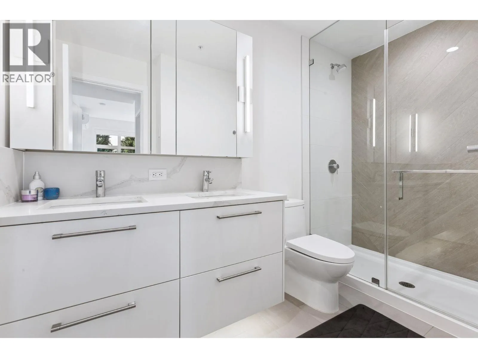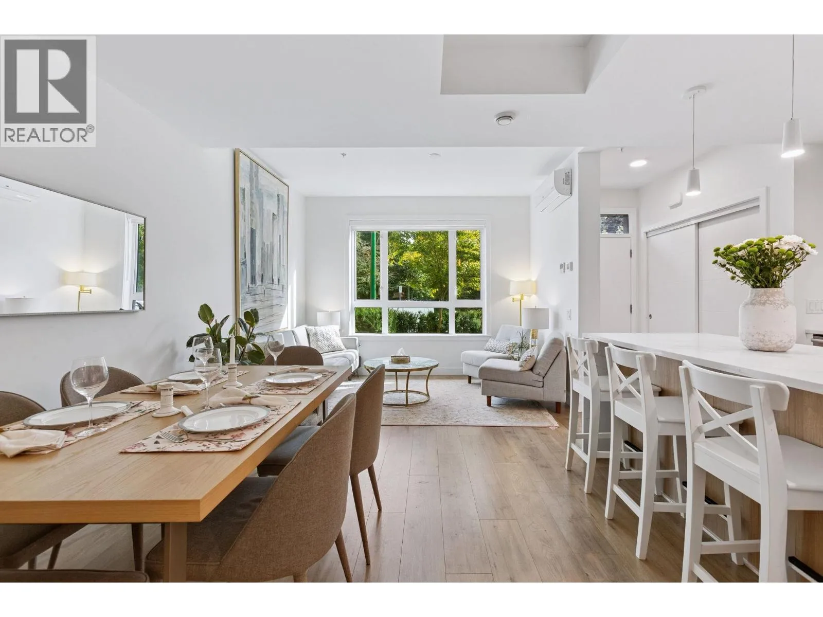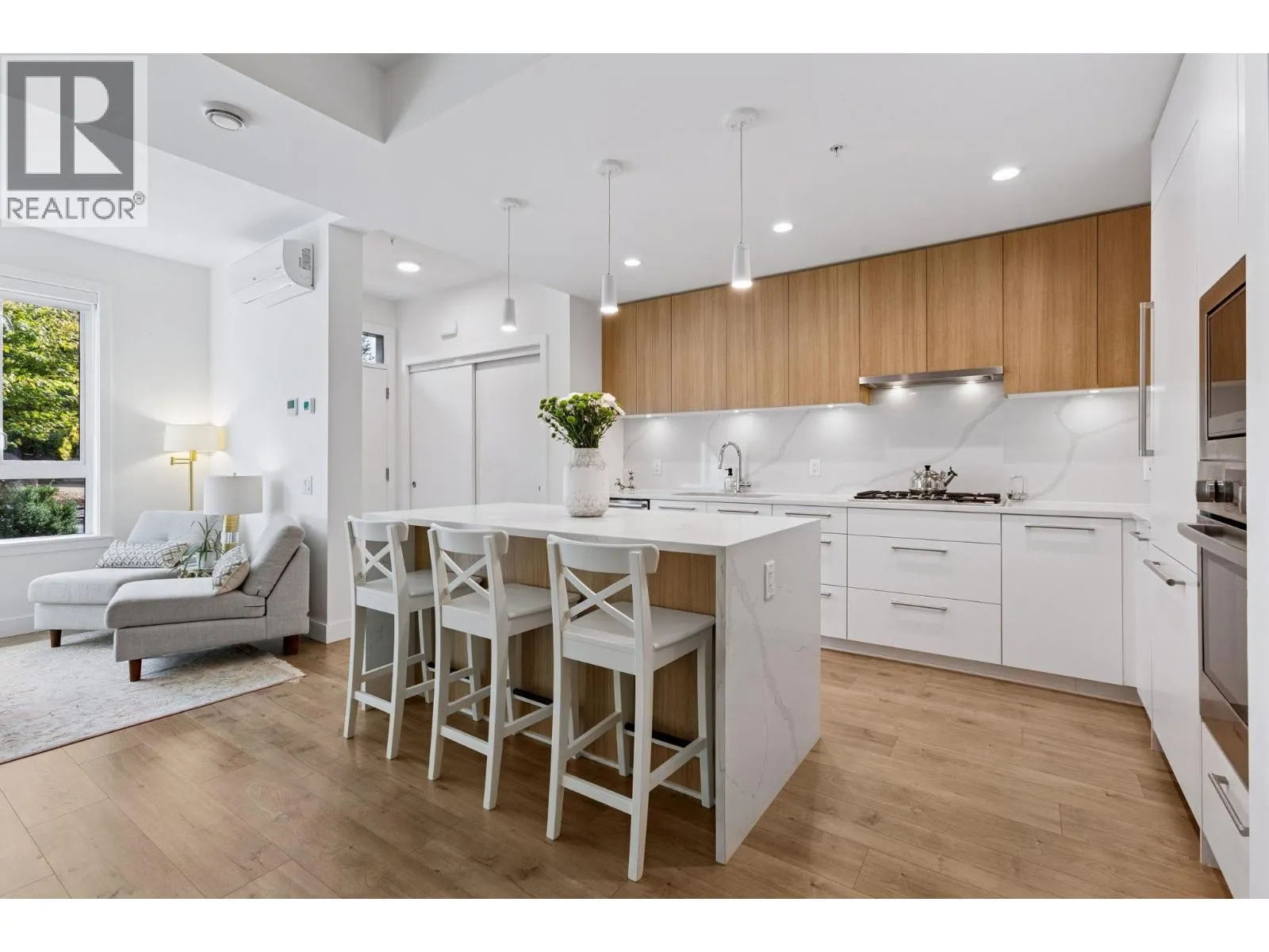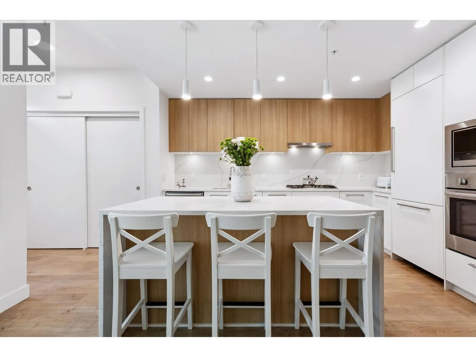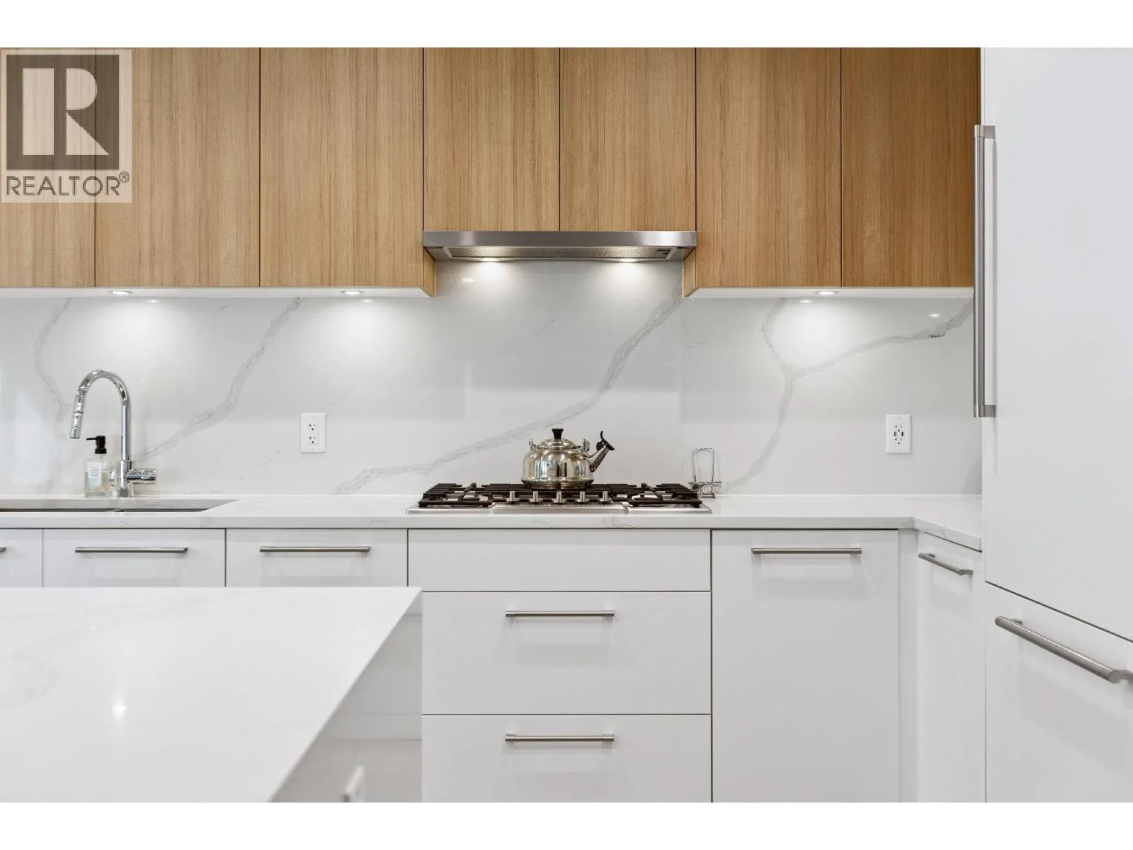 Welcome to Ebb and Flow! This stunning 4-bedroom, 3.5-bathroom home offers three levels of living space with a total of 1,603 sqft, plus 469 sqft rooftop deck. Nestled in a prime location of the sought-after Ebb & Flow complex, this home provides direct access from Sandown Place, making it ideal for families.The open-concept kitchen features premium Bosch appliances, including an integrated fridge, gas cooktop, wall oven,complemented by under-cabinet lighting for added convenience. Additional highlights include laminate flooring, a quartz backsplash, a waterfall-edge island, and two side-by-side parking spaces with storage. Enjoy radiant heat throughout and an upgraded heat pump for air conditioning in the summer. Located just minutes from Park Royal, Grouse Mountain, Highway and Downtown! (id:27476)