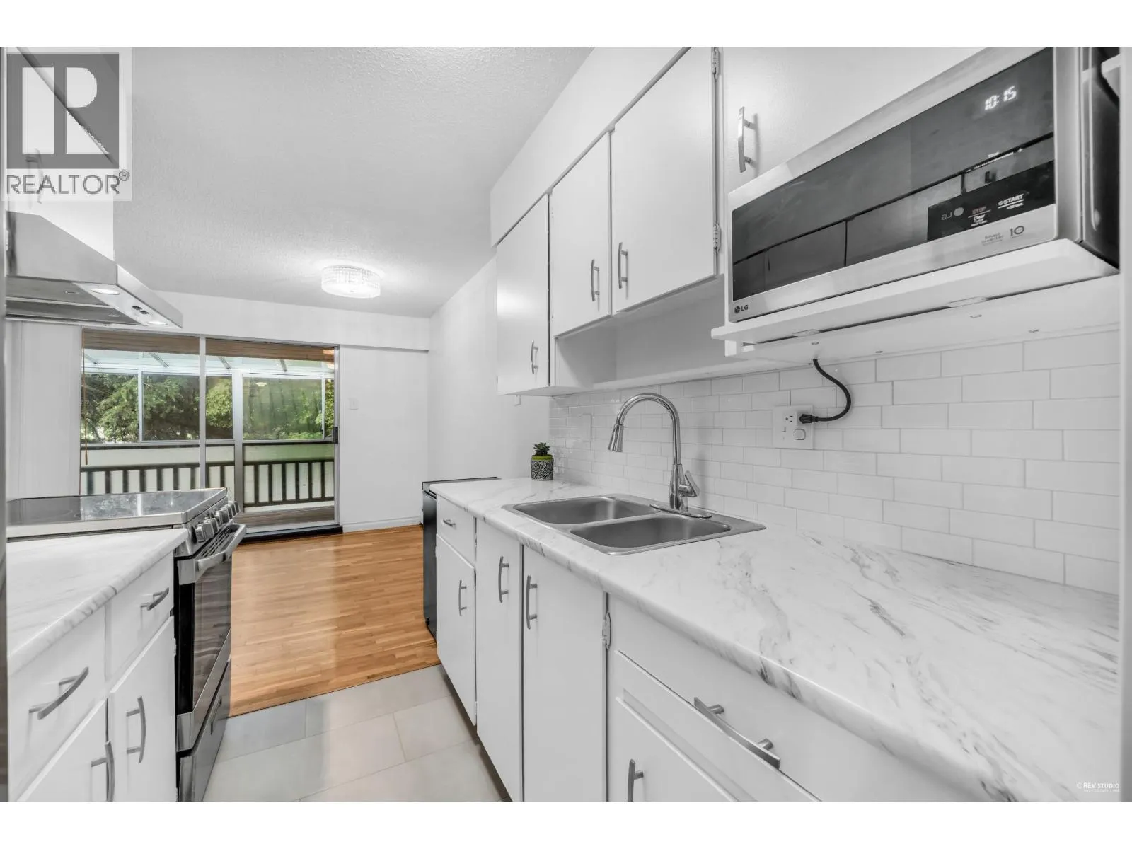 Welcome to Cedarbrooke Village! 2nd level, Top Floor Rarely available unit with a solarium. This spacious upper level 2-bed, 1-bath home offers 928 square ft of living space plus a 75 square ft solarium, providing extra room for a home office, play area, relaxation space, or indoor garden. This community features beautiful green spaces, a clubhouse, and an outdoor heated pool (beside this unit). The home has been renovated, featuring 1.5-year old appliances, tastefully updated kitchen, modern bathroom, flooring and lighting upgrades making it move-in ready. Strata fee includes hot water and heat. Next to Larson Elementary School and Westview Shopping Centre where you will find a supermarket, restaurants, and shops. Easily accessible to highway 1. Minutes from Lions Gate and Second Narrows Bridges. Whether you are searching for a first home or an investment, this property offers a lifestyle of comfort, accessibility, and community. 1 parking and 1 storage locker included. Some photos have been virtually staged. (id:27476)