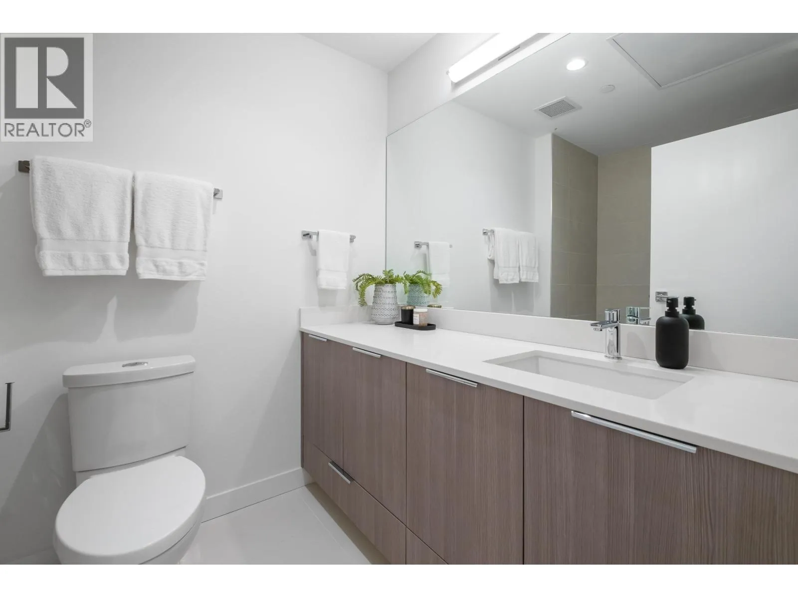 Hunter at Lynn Creek: A Rare Sub-penthouse with Unrivaled Views and Unbeatable Value. Experience true high-end living in this magnificent south-facing Sub-penthouse, distinguished by its gourmet open kitchen, Fisher Paykel stainless steel appliances, and premium finishes like quartz counters and hardwood floors. This spacious 2-bed, 3-bath suite offers year-round comfort with air conditioning. The crown jewel is the outdoor living space: an expansive 1,100 square ft private deck with dramatic, panoramic views of the City, Water, and Mountains-perfect for grand entertaining. With 3 parking stalls and 2 storage lockers included, this is your forever home. Investor Alert: This exceptional luxury property represents an incredible purchase opportunity. Amenities include access to a private health club. Pets and rentals are permitted. For more info: http://bit.ly/42KAeGg. **OPEN HOUSE: Sat, Nov 22 1-3 PM and Sun, Nov 23 2:30-4:00 PM** (id:27476)