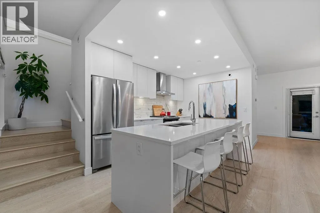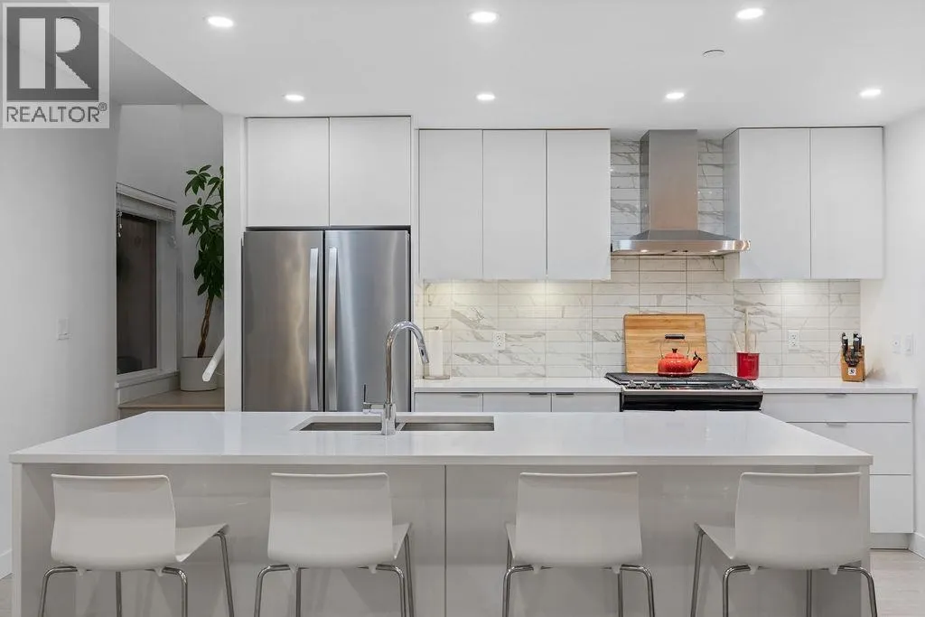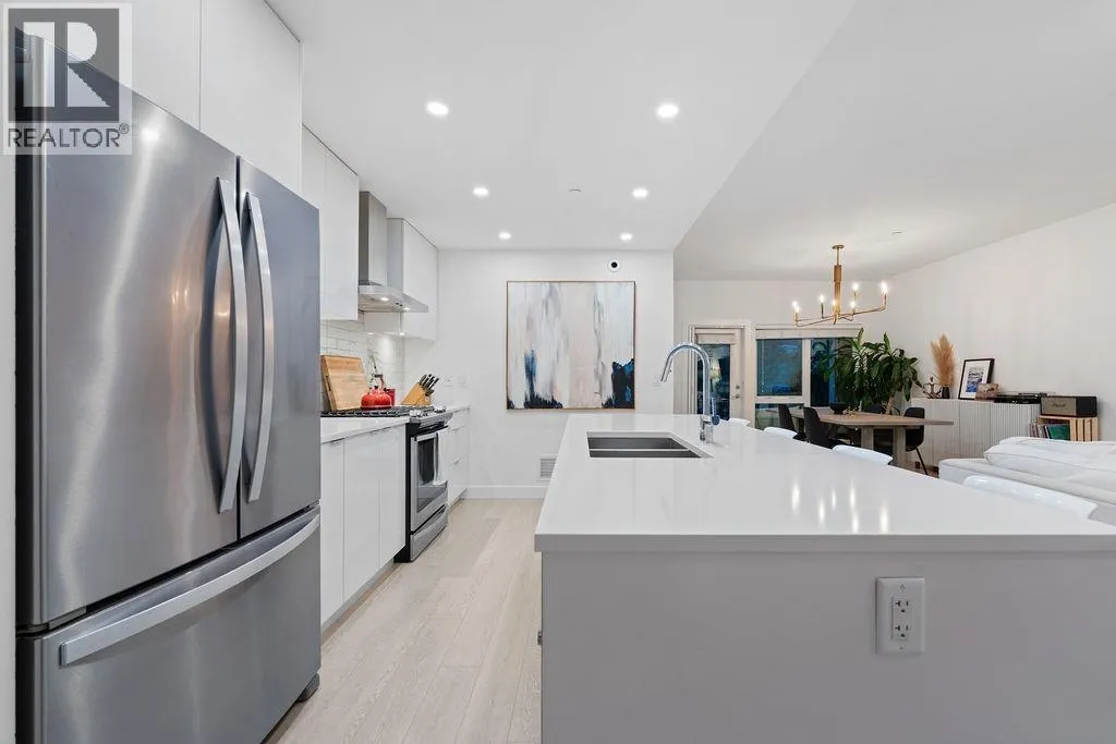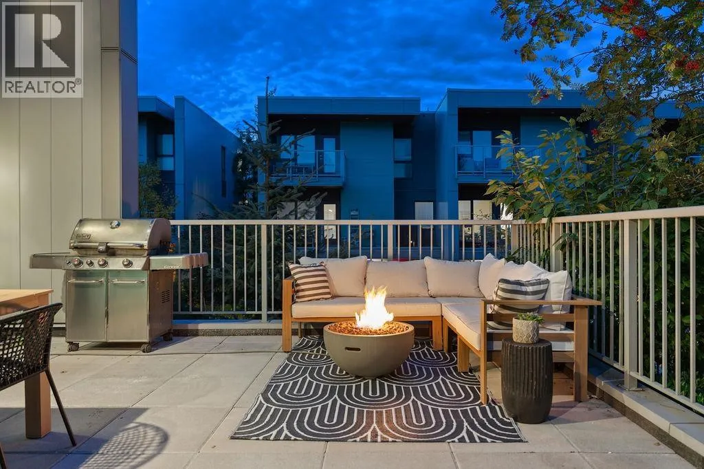 OPEN HOUSE: Sun, Nov 9th, 1-3pm // End-unit townhome in Seymour Village 2 at Ravenwoods offering 3 bedrooms, 2.5 bathrooms, multiple spacious patios, private side-by-side 2 car garage and parking for 4 vehicles! This like-new home was built in 2019 and offers modern finishings and conveniences such as forced air heating and AIR CONDITIONING, spacious entertaining space, a private outlook onto the communal green space and lots of sun through your bright west exposure. Up, find three large bedrooms including the primary with private ensuite, large walk in closet and private patio. Two other bedrooms and a full bathroom offer room to grow. The main level with chefs kitchen includes gas range, large island and space to entertain! The recently updated rear patio if perfect for outdoor dining. (id:27476)