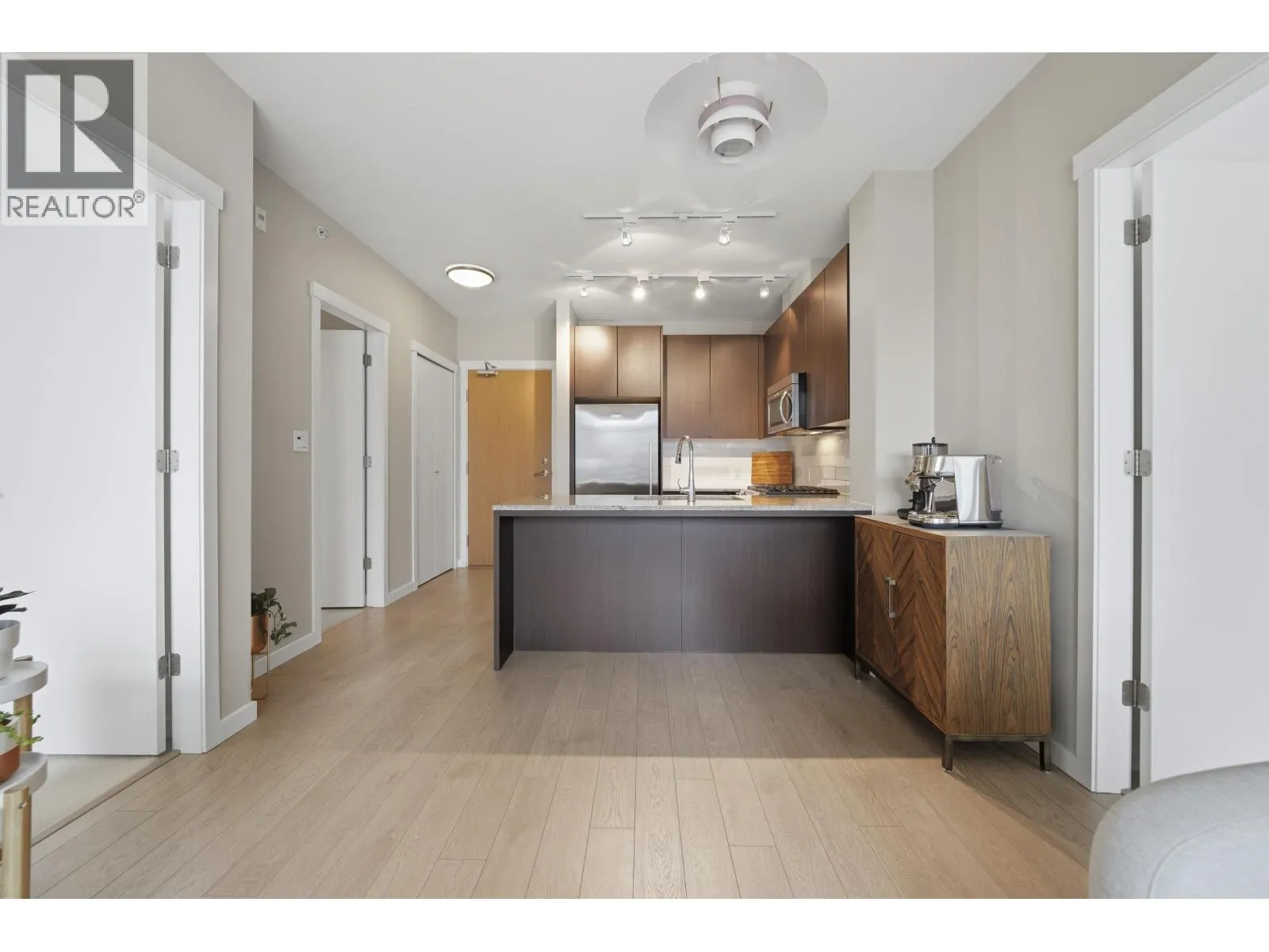 Discover Capstone-a boutique concrete building perfectly positioned in vibrant Lower Lonsdale. This beautifully designed 2-bed, 2-bath home offers one of the best layouts in the building with excellent bedroom separation, 9' ceilings, and floor-to-ceiling windows that create an airy, light-filled living space. The entertainer´s kitchen boasts a full-size gas range, Caesarstone counters, stainless appliances, and designer lighting. Enjoy a generous private patio, custom lacquered millwork, a sleek fireplace, spa-inspired bathrooms, and well-appointed closets. Strata fees include heat, hot water, and gas for added comfort and value. Steps to the Seabus, Shipyards, Lonsdale Quay, restaurants, cafes, breweries, boutiques, and the Spirit Trail. A rare opportunity to own a contemporary, walkable North Shore home with an ideal layout. Open House Sat & Sun Nov. 22 & 23, 2-4 PM (id:27476)