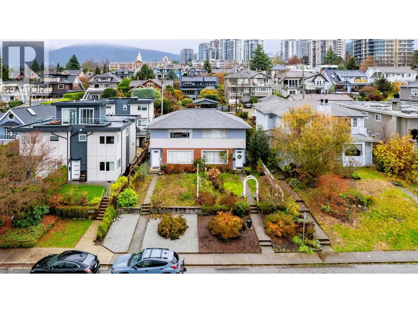Fantastic opportunity to own this south facing side by side Lower Lonsdale duplex with post card water and downtown views! Each side enjoys living, kitchen, and dining on main and two bedrooms, one full bath, & laundry room upstairs totaling just under 1200 sqft each side. Whether you live in one while you rent the other, are multi-generational living side by side, looking to invest, or build in a prime location, the options abound! RT1 zoned with CNV work completed increasing density from .5 to .75 FSR - allows for new duplex, triplex, and townhomes. Steps to the shopping, dining, and lifestyle amenities lower Lonsdale offers...this is a gem of a property in the heart of the City! (id:27476)