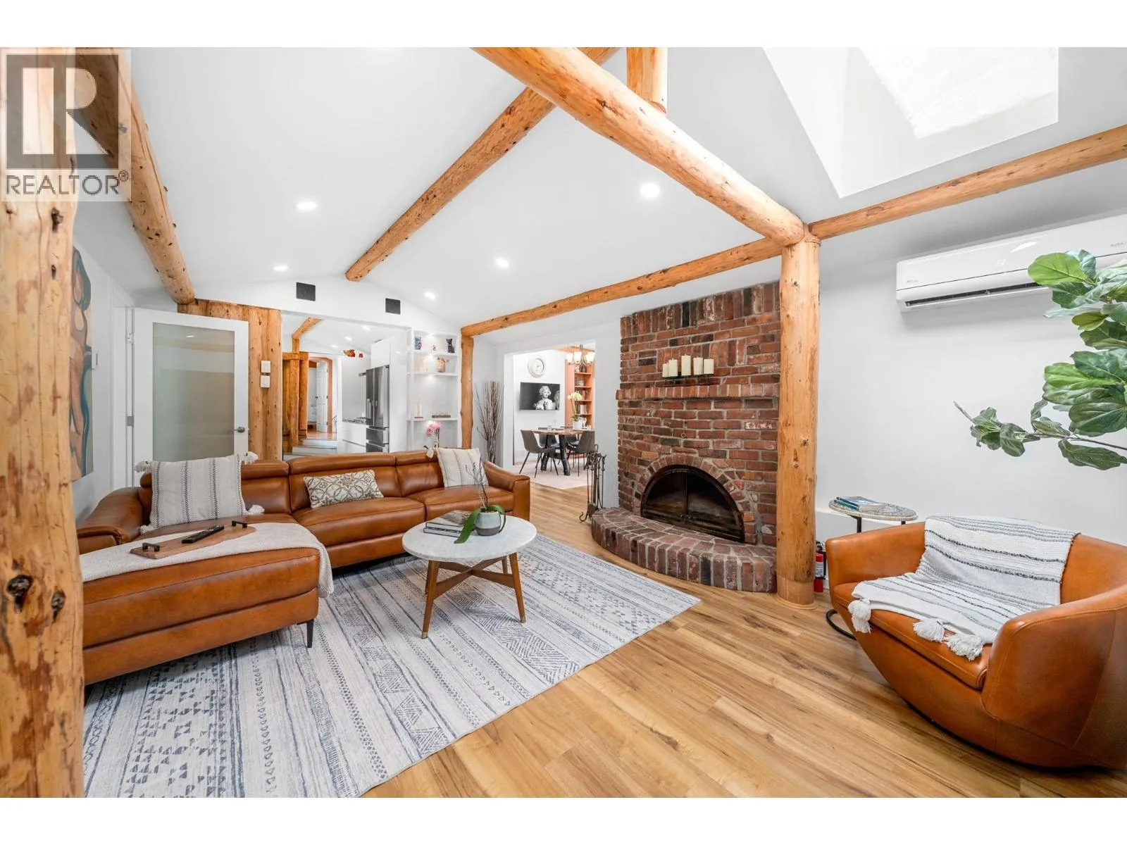 Located on a quiet cul-de-sac, this exceptional Blueridge home blends history, luxury, and modern living on a flat, sunny lot, that is just under 13,000 sq/ft. With over $800,000 in upgrades: sandblasted and re-stained logs, all new windows, doors, plumbing, electrical, roofs, drainage, heated floors, bathrooms, Italian high quality kitchen etc, there is nothing you need to do but move in. The log portion of the home was once a ranger station, that has been been completely rebuilt from the ground up. There is A/C in every room plus EV charging all ready to go. The 4-bed, 2-bath layout includes a private master suite with seating area, ensuite, infrared sauna, and attached office with separate entrance. Entertain outdoors with your custom gazebo, full outdoor kitchen, and sauna, all surrounded by professionally landscaped gardens with irrigation. With room for an RV and boat, abundant storage, and direct access to trails, mountain biking, and top schools, this home offers the ultimate North Shore lifestyle. (id:27476)
