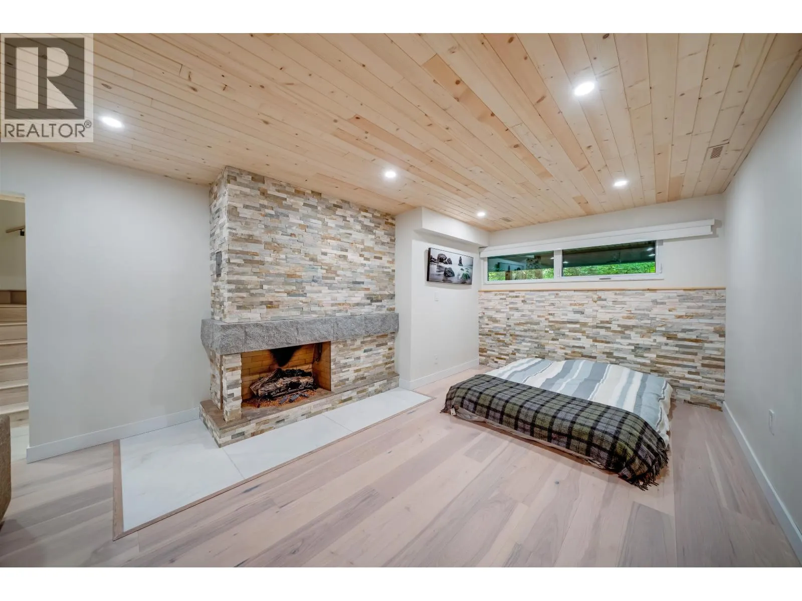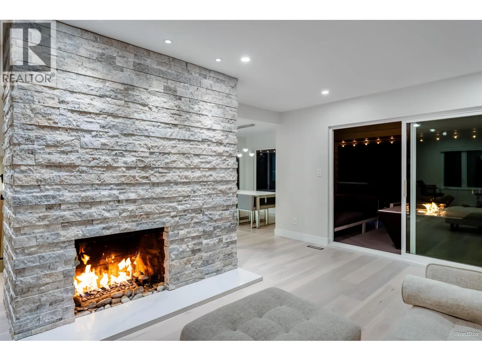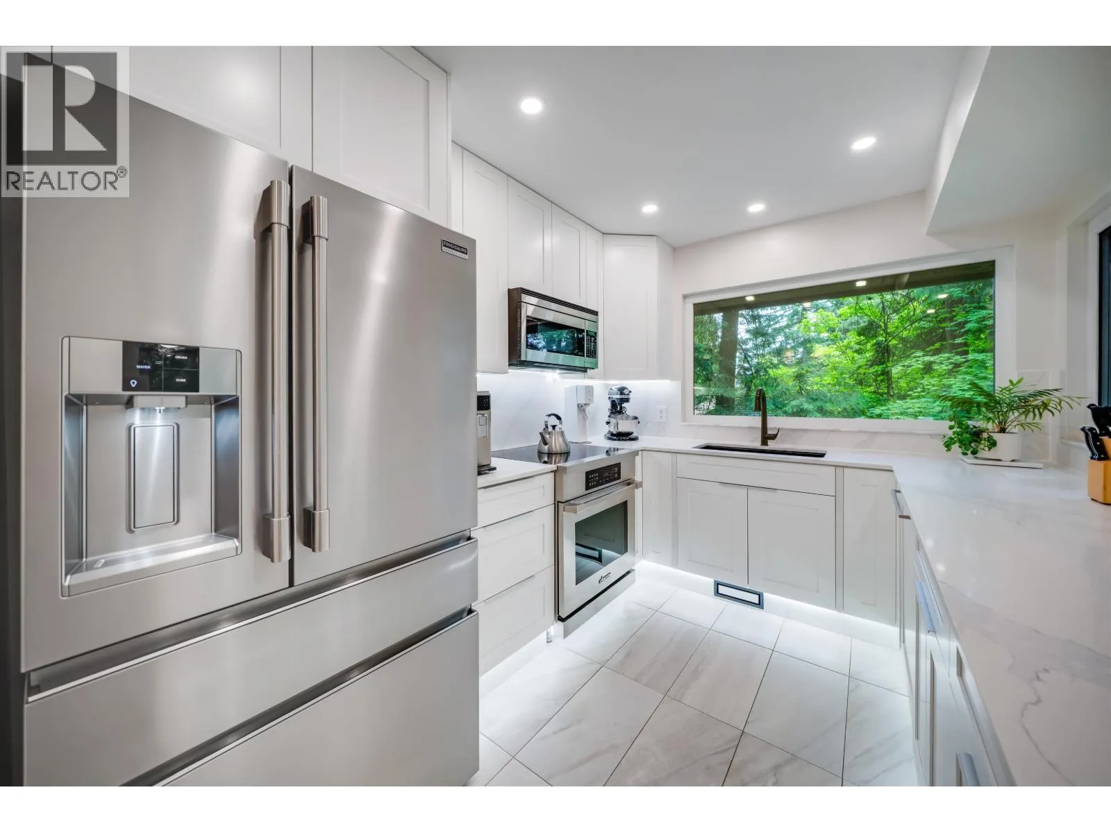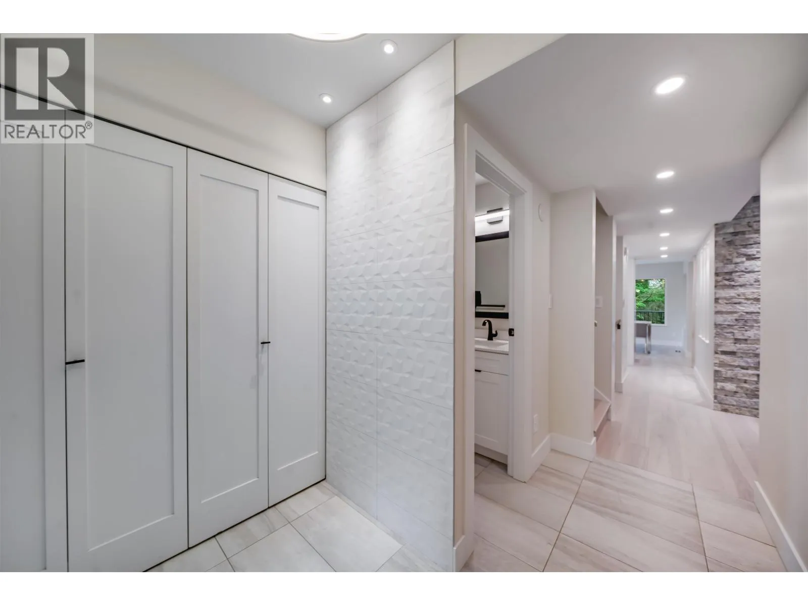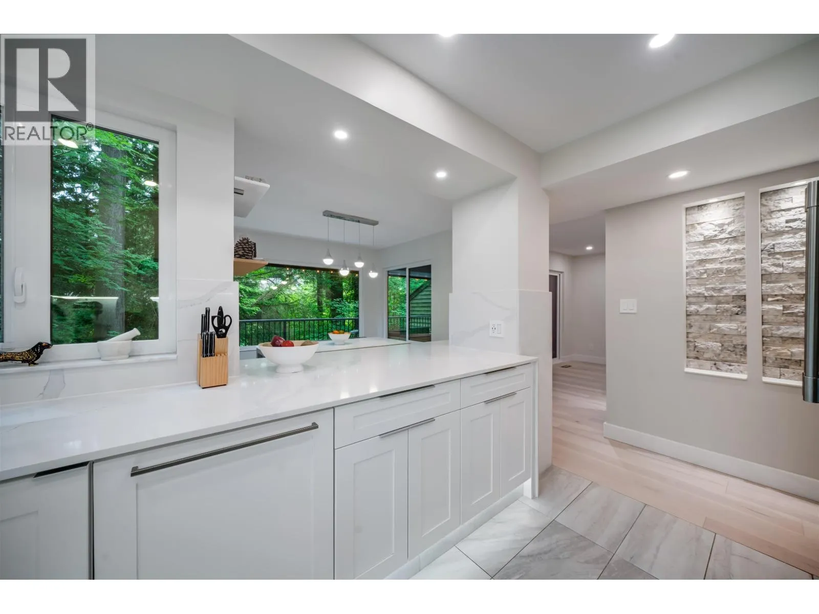 Stunning 3-level, 4-bed, 4-bath end-unit townhome in Lynn Valley´s coveted Laura Lynn complex. Surrounded by forest, this fully renovated home offers elegant West Coast living with 2,430 sqft of bright, functional space. The 2nd level offers a spacious primary bedroom with ensuite bathroom, 2 more bedrooms and shared bathroom. Features and upgrades include new triple-pane windows, gourmet kitchen with quartz counters, wine cooler, large island, 2 gas + 2 electric fireplaces, engineered hardwood floors, built-ins, half bath on main and double carport. Lower level with media room, wet bar, full bath, ideal for guests, entertainment or in-law suite. Covered deck and serene green space. Steps to top schools, parks, trails, pool, tennis and clubhouse. (id:27476)