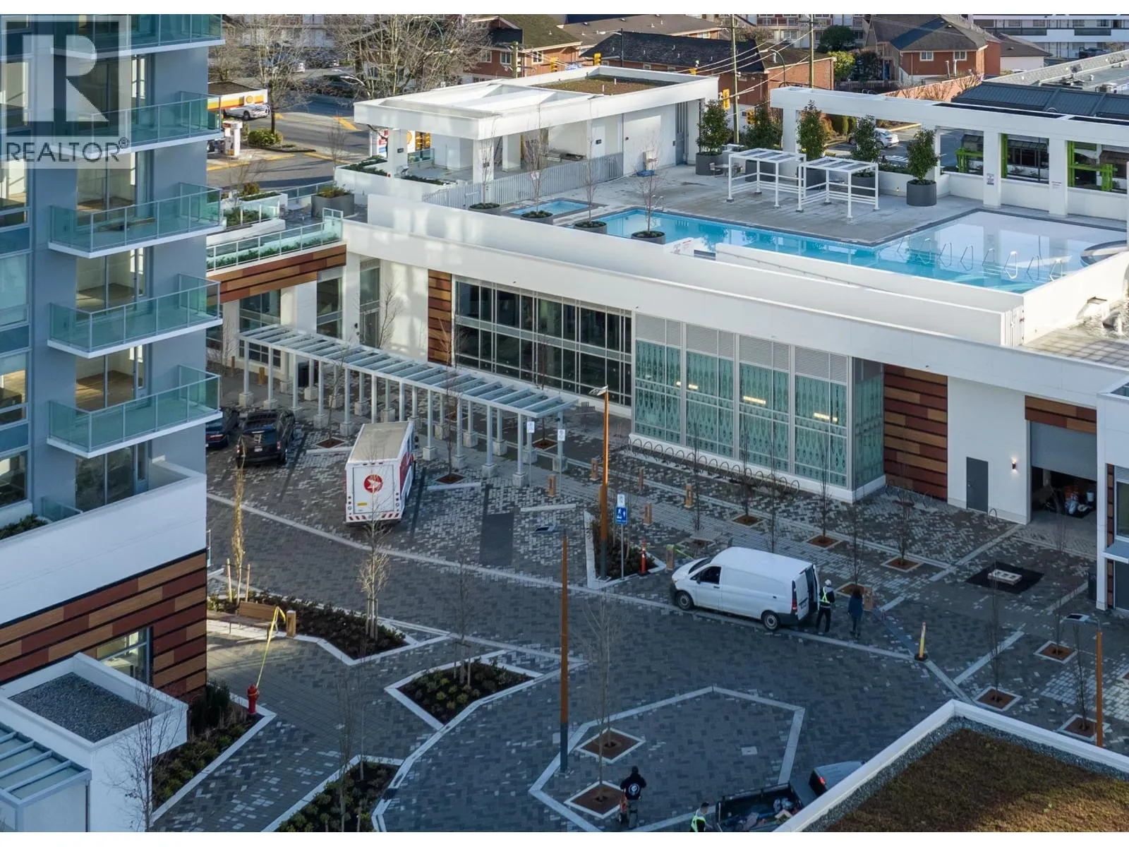 Discover an exceptional opportunity to own a prestigious retail property in Lions Gate Village, North Vancouver. This 10,925 square feet purpose-built space is designed for a boutique grocery store (Deli/Cafe) and strategically positioned to serve thousands of planned residential units. It features 8,209 square feet of prime retail space with impressive ceiling heights and 2,716 square feet of office space on the accessible mezzanine level, complete with direct elevator access. With 158 shared visitor parking spots and located at one of the busiest intersections in the Lower Mainland, accommodating over 80,000 passersby daily, this property offers outstanding visibility.This long-term ownership prospect is a remarkable investment you won't want to miss! ** An offer subject to change of use allows potential for various opportunities with the District of North Vancouver. ** (id:27476)