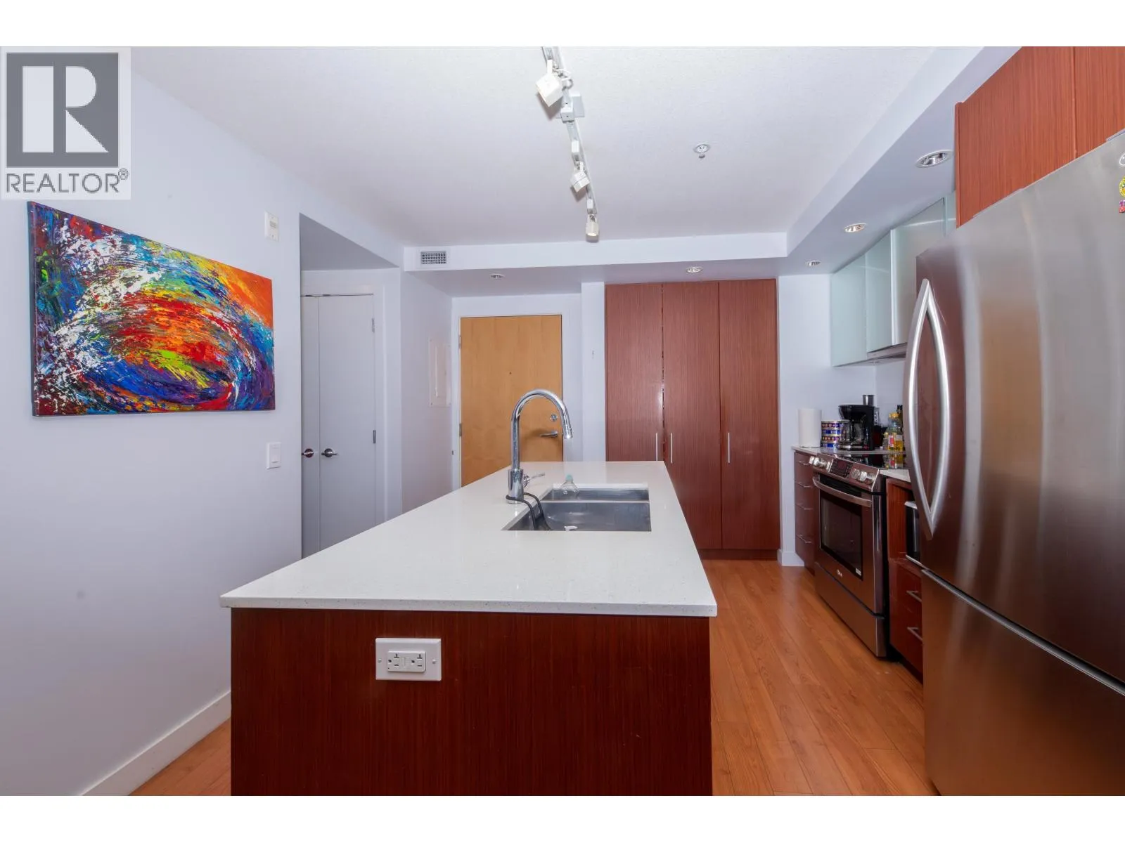 Luxury Condo in Lower Lonsdale! Live steps from Lonsdale Quay Market in this spacious 1-bedroom, 1-bath home with floor-to-ceiling windows and breathtaking North Shore views. The modern kitchen boasts quartz countertops, a large island, stainless steel appliances, and abundant storage, with additional built-ins at the entry and in the bedroom. A bright, open layout maximizes natural light, while the private deck and rooftop patio with BBQs, lounge, fire pit, and panoramic mountain and partial ocean views offer endless relaxation. The bedroom features a walk-through closet leading to a spa-inspired bathroom. Building amenities include a fitness centre, EV charging,Bike storage, car wash, and dog wash. Just a short walk to the SeaBus, Shipyards District, shops, and restaurants. (id:27476)