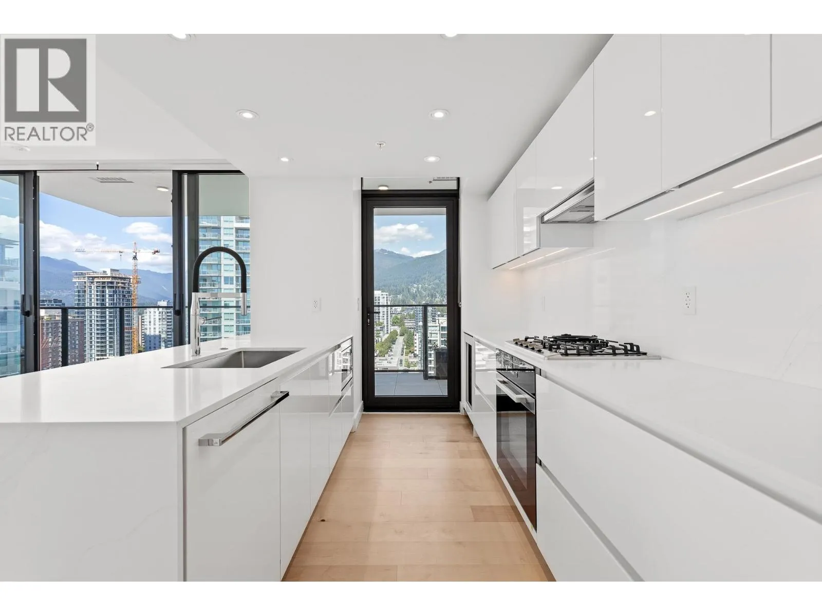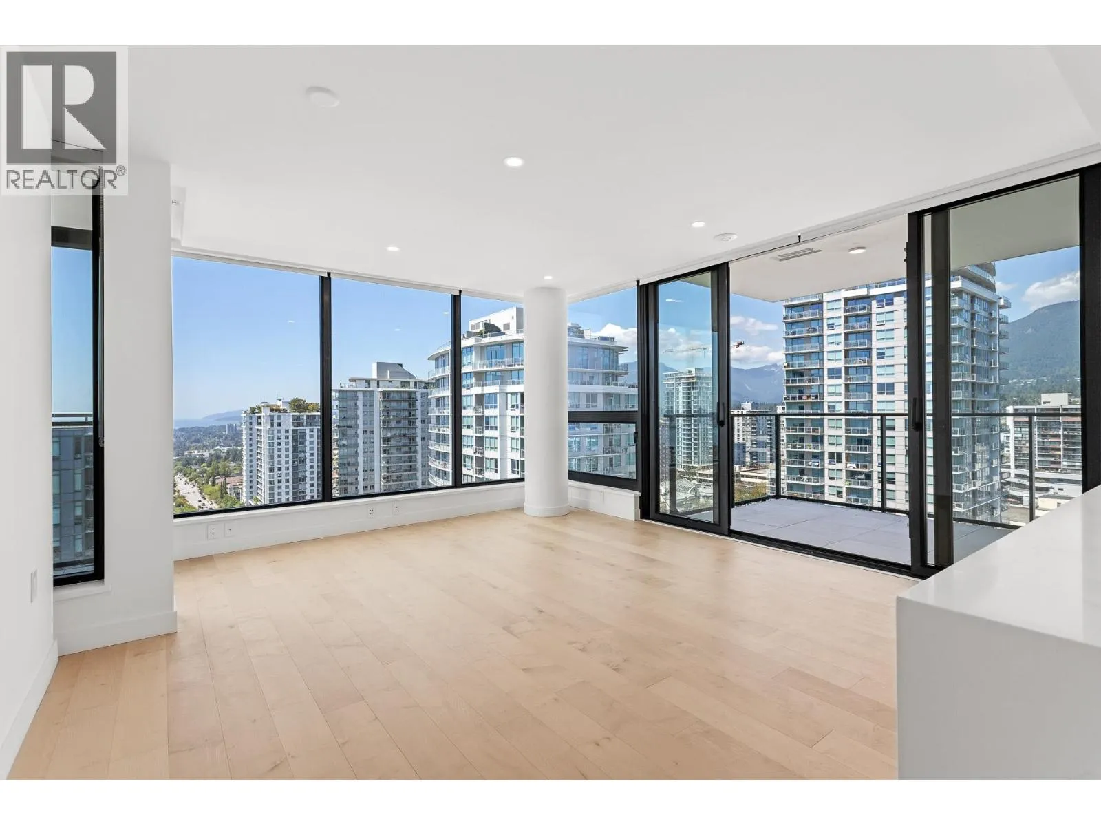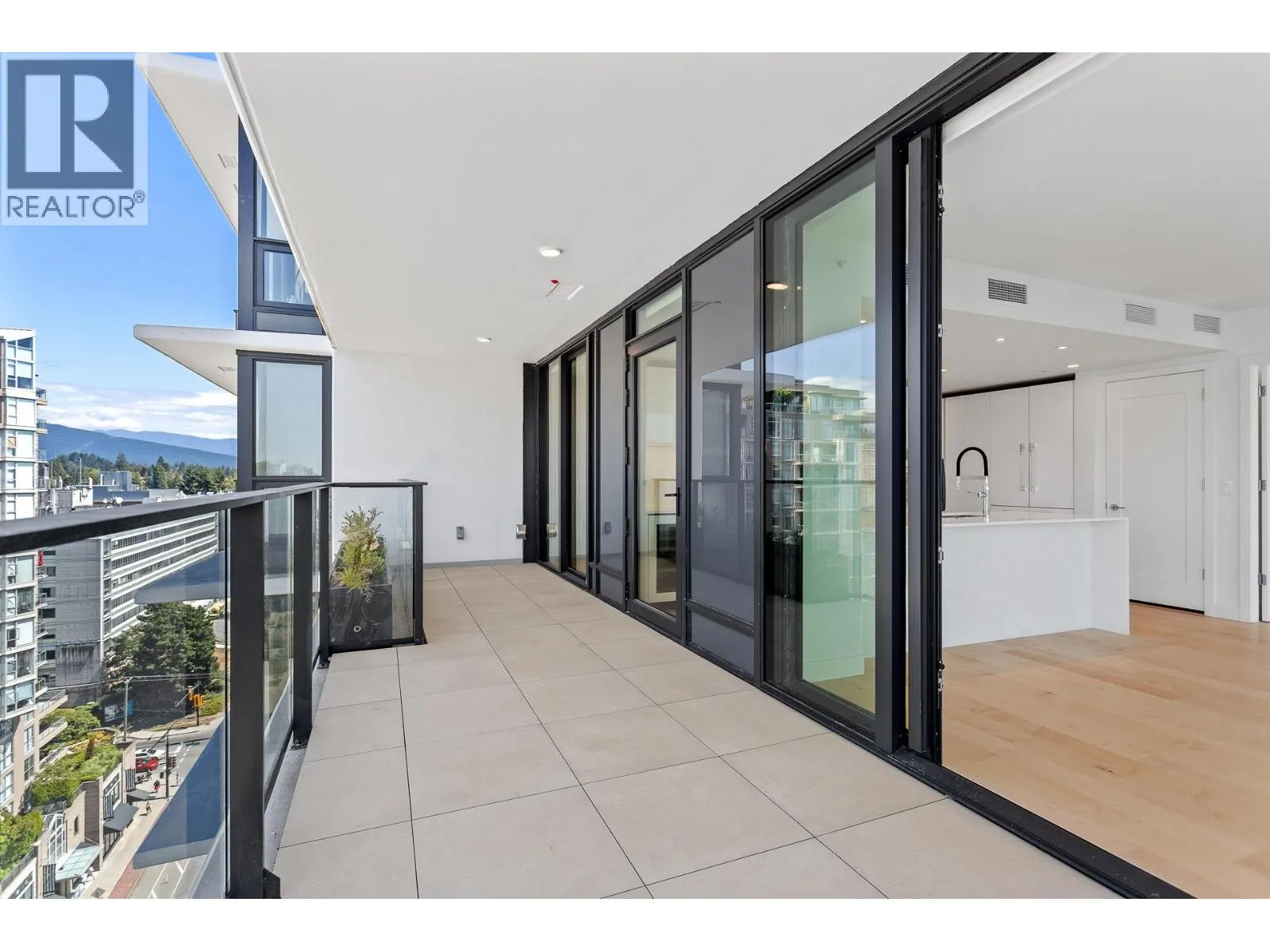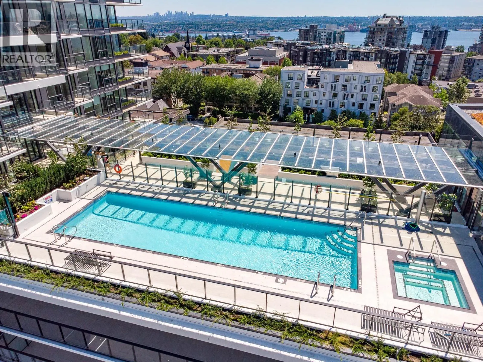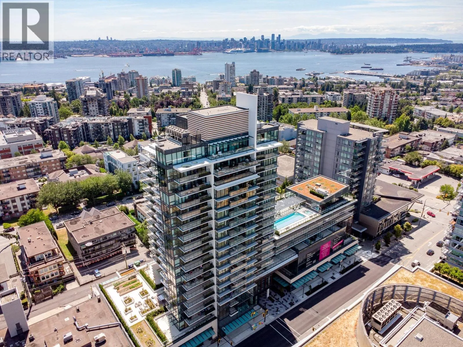 1506 captures the North Shore views: the city skyline, ocean, Lions Gate Bridge, mountains & serene pool view below. This modern 2-bed, 2-bath corner residence offers over 1,000 sqft of refined living with south, west, and north exposures, showcasing breathtaking scenery from every angle plus two spacious balconies. This unit features floor-to-ceiling windows, a chef-inspired kitchen with premium integrated appliances, a gas cooktop, an oversized waterfall quartz island, LED lit cabinets. Luxury upgrades include motorized blinds, high-end custom closet millwork in the ensuite, a built-in wine fridge, pot lights in the bedrooms, and an elevated palette of premium finishes throughout. Parking and bigger storage. Pics, Floorplan, Pics & video are for 1406! Measurement approximate and to be v (id:27476)
