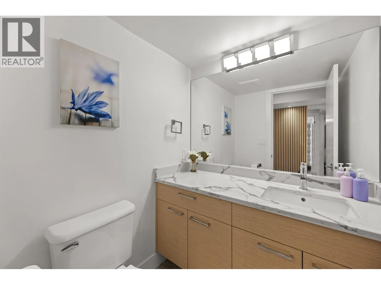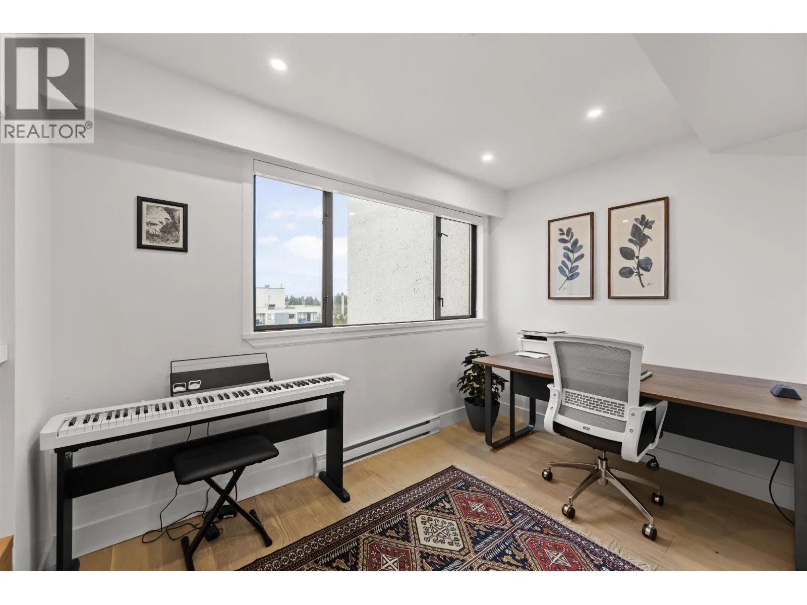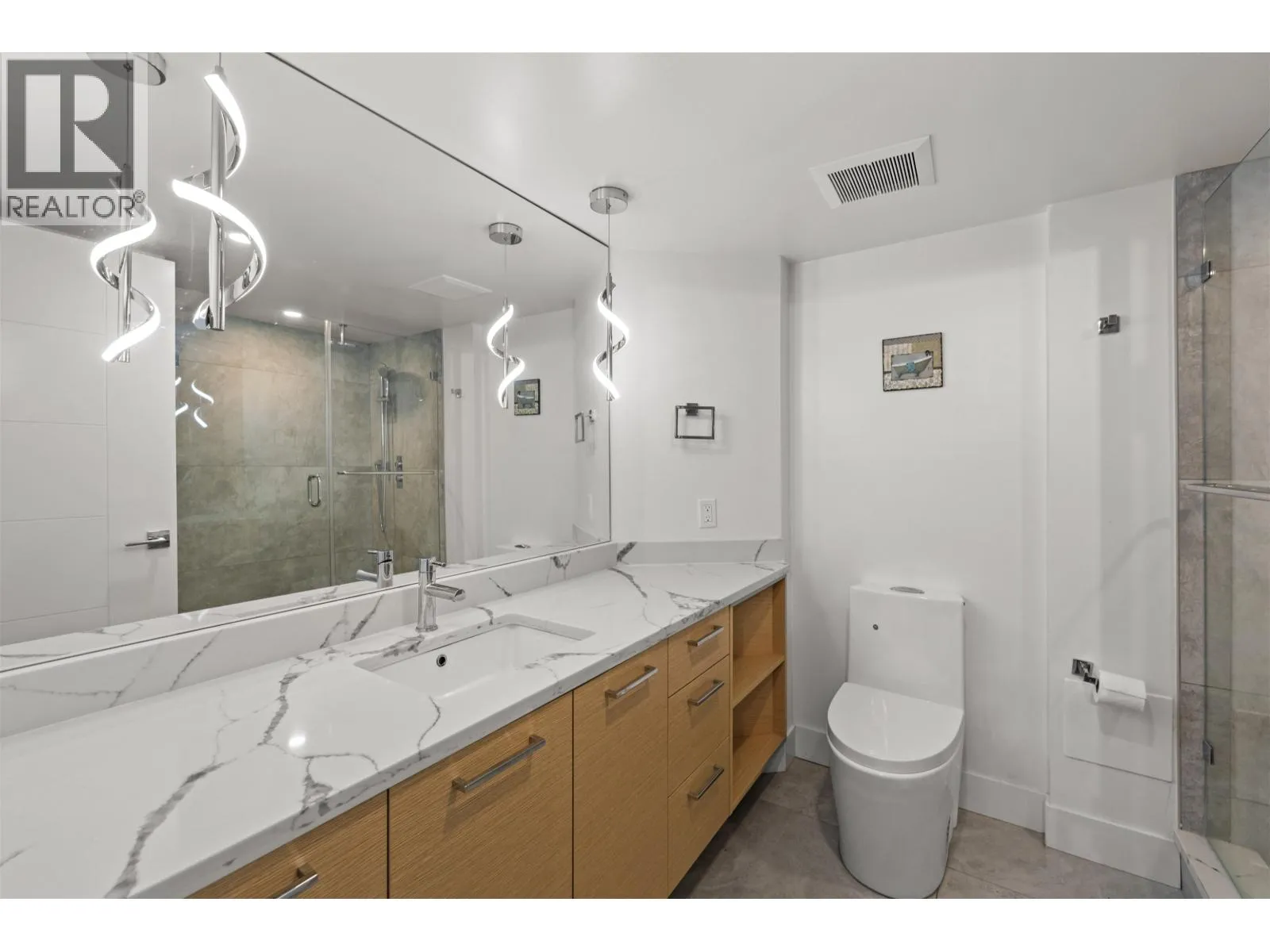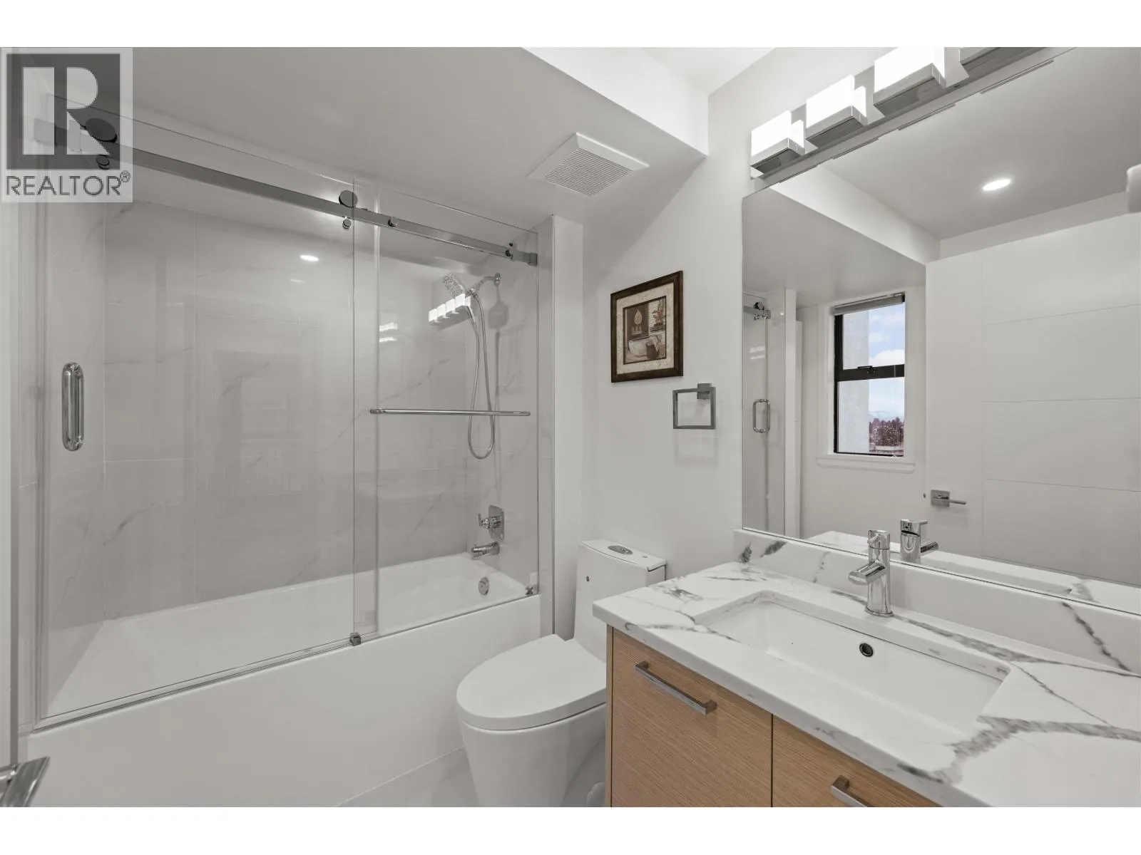 Welcome to Eastern House and this beautifully renovated penthouse. With over 1,600 sq. ft. on two levels, this home offers 3 bedrooms, 2.5 bathrooms, and a den. The main floor features an open layout with a stunning kitchen including quartz counters, a waterfall island, and custom cabinetry. Spacious living and dining areas plus a bright home office complete the space. Upstairs are three bedrooms, two bathrooms, laundry, and an enclosed balcony. Enjoy mountain views from every room. Renovations were completed in January 2024. The home comes with A/C, two parking stalls, and a storage locker. Located in the heart of Central Lonsdale-steps to shops, restaurants, transit, the library, and the rec centre. Walk score 86. Welcome home. Open House Saturday Jan 3rd 2-4 PM (id:27476)