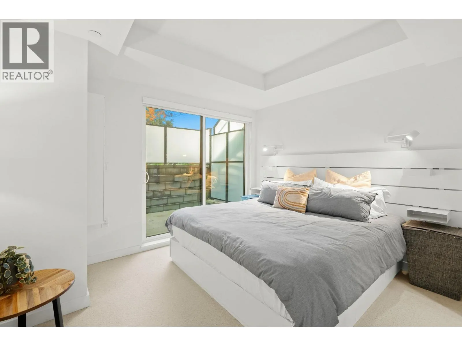 Modern design meets North Shore living at its best in this bright, South facing townhome at Morrison On The Park. Enjoy an open concept kitchen, dining, and living area that flows to a sunny deck with ocean and city views-perfect for morning coffee or weekend entertaining. A spacious and bright main level bedroom opens to a private patio, while the lower-level primary suite offers a serene retreat with a spa inspired ensuite with double sinks. The flexible third bedroom or den is ideal for a home office, guest room, or nursery. Downstairs features a large and impressive rec room with overheight ceilings - perfect space for movie nights, a home gym or a guest room. A practical mudroom provides direct access to two parking spaces. One locker included. Set in Moodyville, one of North Vancouver´s most connected and evolving neighbourhoods-steps to Moodyville Park, the Spirit Trail, and transit, and just a 10-minute stroll to the vibrant Shipyards District with its restaurants, breweries, and waterfront energy. (id:27476)