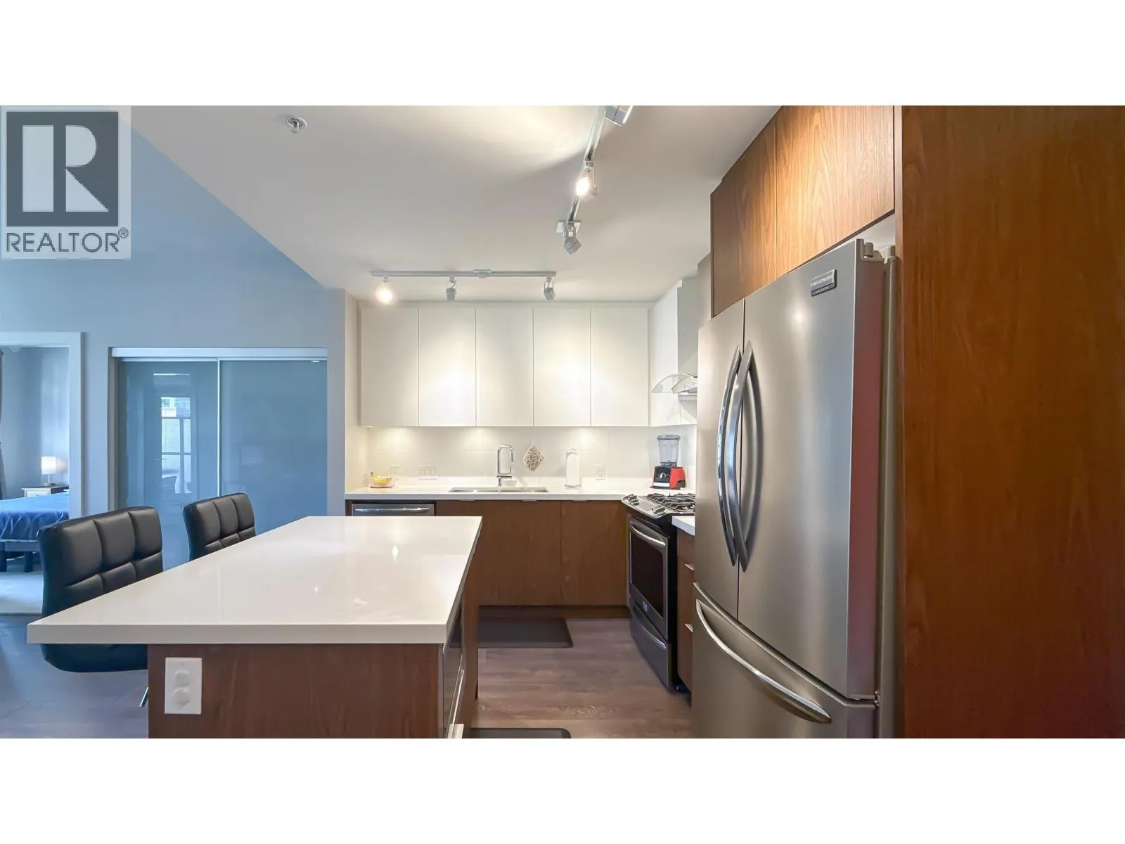 Welcome to this well-designed east facing 2 bed home at Destiny 2 in Raven Woods, North Van. Built by Aquilini in 2017, this spacious home feels new & features kichen with quartz countertops, s/s appliances, island & spacious pantry. Living room extends to spacious covered balcony of 144sf overlooking serene lagoon. 9ft ceilings. Primary bedrm easily accomodates king bed & dresser; large walk-in-closet connects to ensuite with double sinks & separate tub/shower. Full sized W/D. Two parking stalls are tandem. Full size storage locker. Amenities incl. bright party rm, extensive gym & bike/kayak storage. Quiet residential location a short drive to amenities in Deep Cove or Parkgate Village. Cates Park & 2 golf courses nearby. Seycove Secondary & elementary schools nearby. (id:27476)