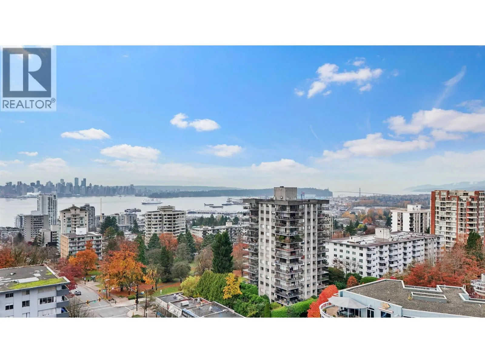 Welcome to Ashby House in the heart of Central Lonsdale! This updated 2-bedroom, 2-bathroom Northeast corner suite offers peek-a-boo ocean views and stunning glimpses of the North Shore mountains. The open-concept living and dining area flows onto a wraparound balcony-perfect for morning coffee or effortless entertaining. The spacious primary bedroom features a 2-piece ensuite, while the second bedroom is ideal as a guest room or home office. Building amenities include a recreation room and gym. Enjoy an unbeatable location: step across the street to the beautiful Victoria Park, and stroll to Central Lonsdale´s finest restaurants, shops, and amenities. (id:27476)