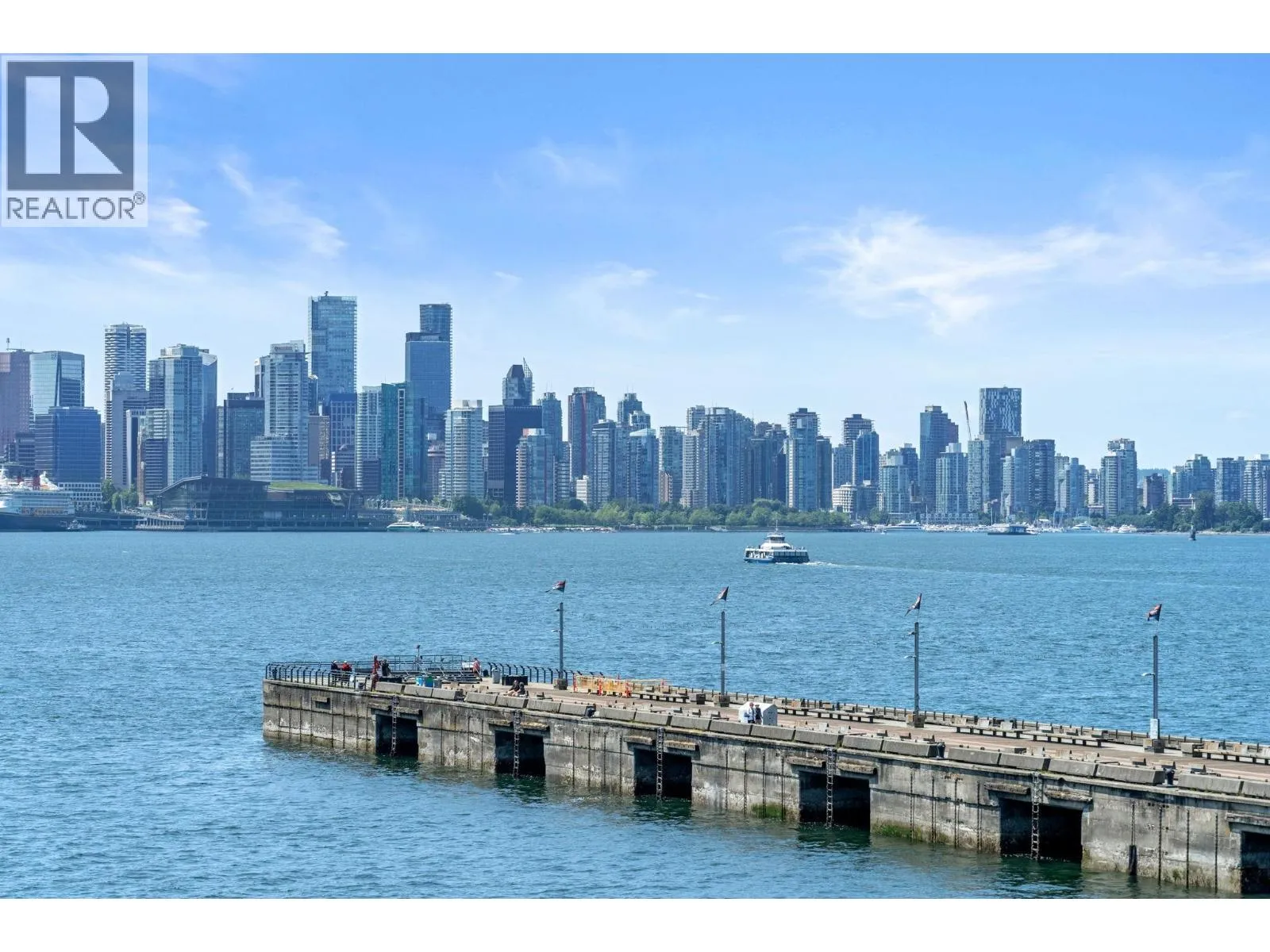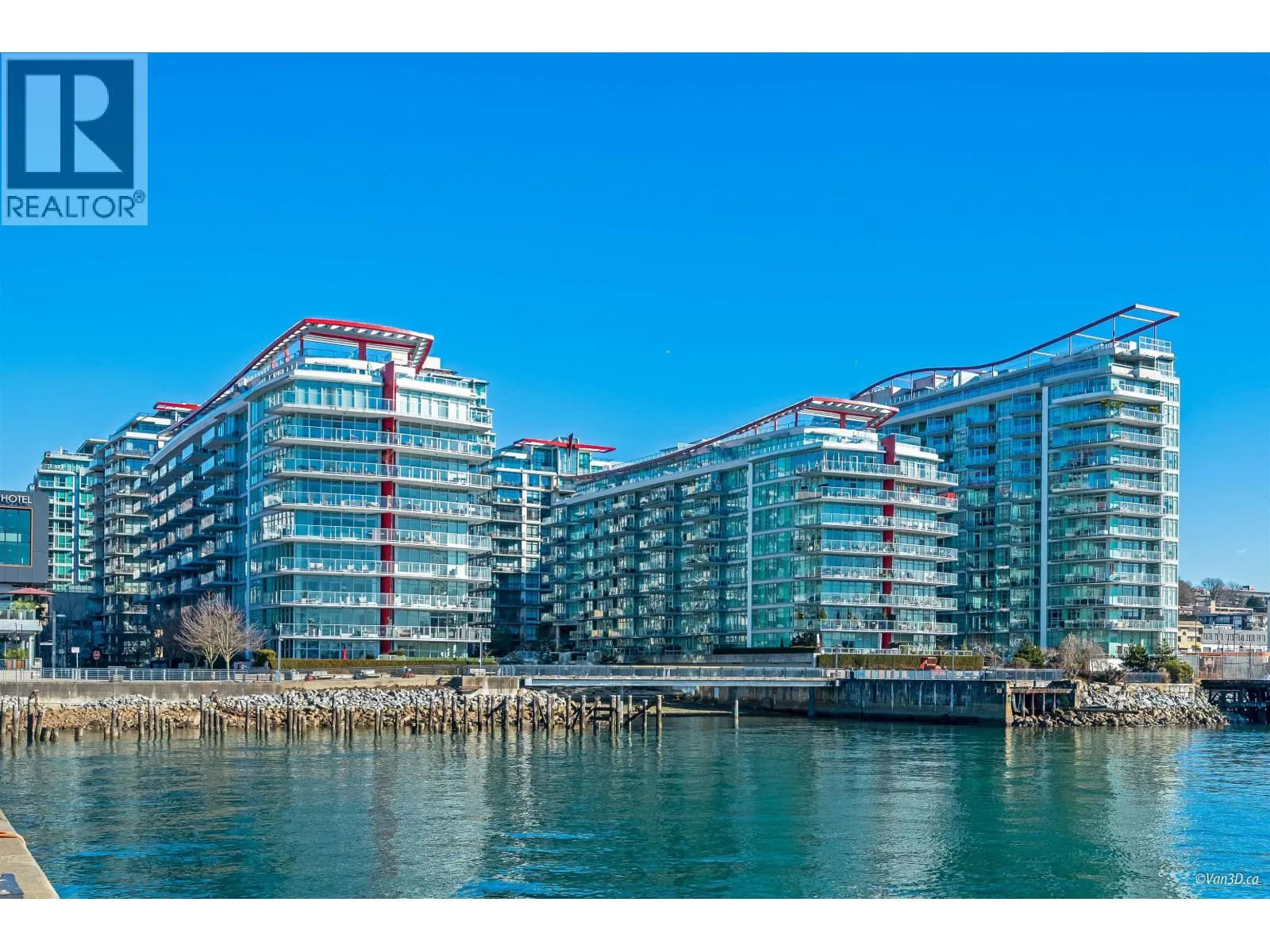 INVESTORS ALERT! Rented at $3200/month until the end of April 2026. BEST 1-BEDROOM VIEW - RARELY AVAILABLE 05 UNIT! This stunning west-facing unit offers 659 SQ.FT with 1 bedroom, 1 den, an ensuite bathroom with separate entrance, walkthrough closet, and a spacious balcony with some of the best ocean views Cascade at the Pier has to offer of the private beach, Vancouver Harbour, Stanley Park and Downtown Vancouver´s breathtaking skyline. Enjoy an open floor plan, gourmet Bosch kitchen with gas stove, integrated fridge/freezer, soft-close drawers, breakfast bar, 9´ ceilings, crown mouldings, A/C, and European finishes. Owners receive VIP Pinnacle Hotel perks: indoor pool, steam room, sauna, jacuzzi, and gym. Steps from Shipyards District, Lonsdale Quay, and endless dining/shopping. (id:27476)