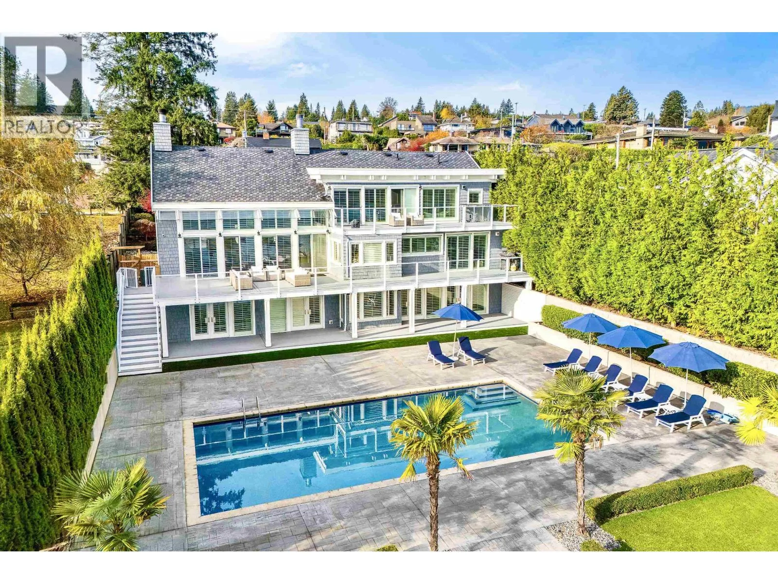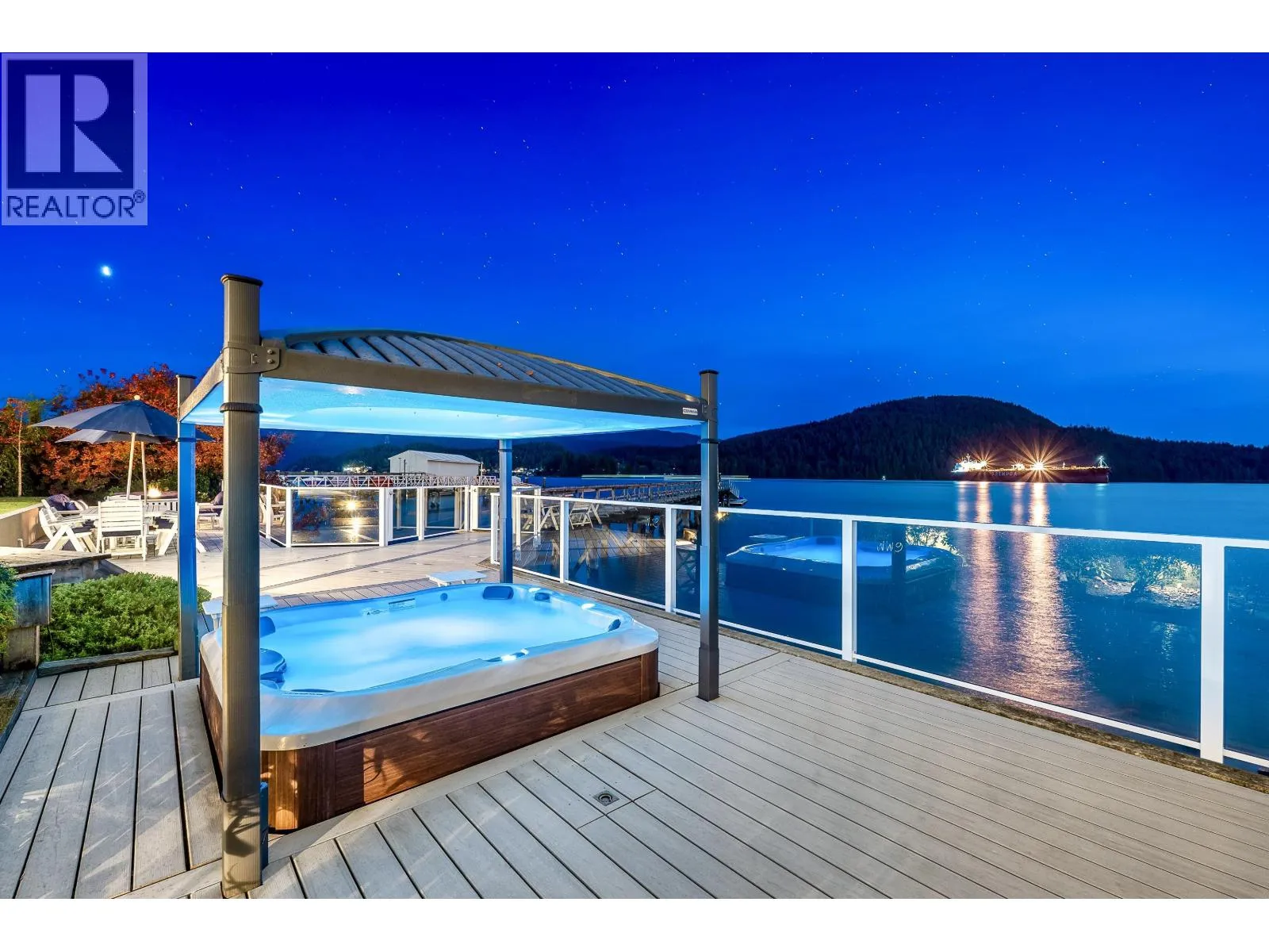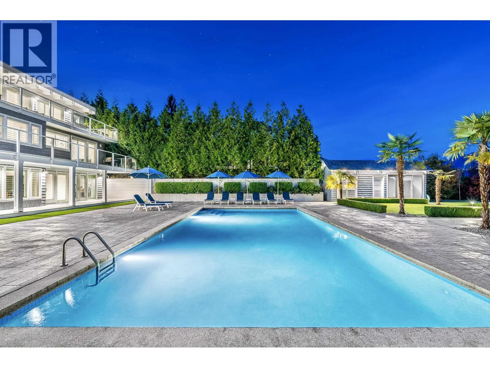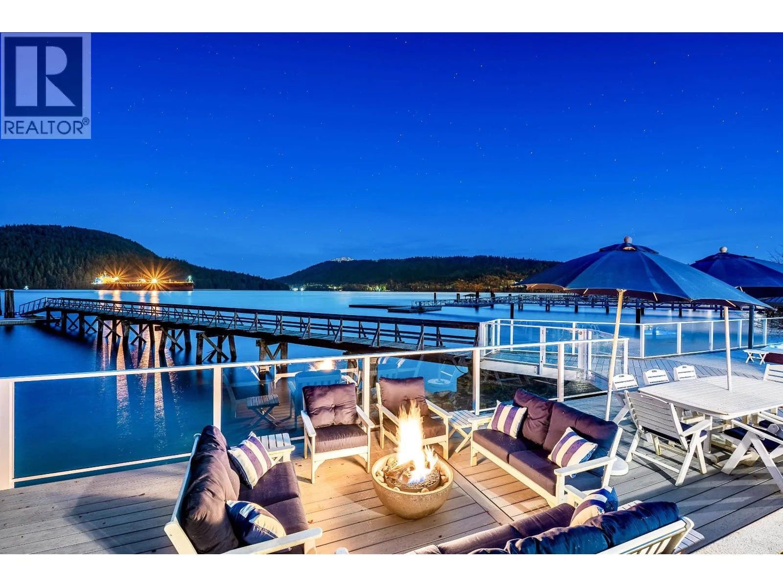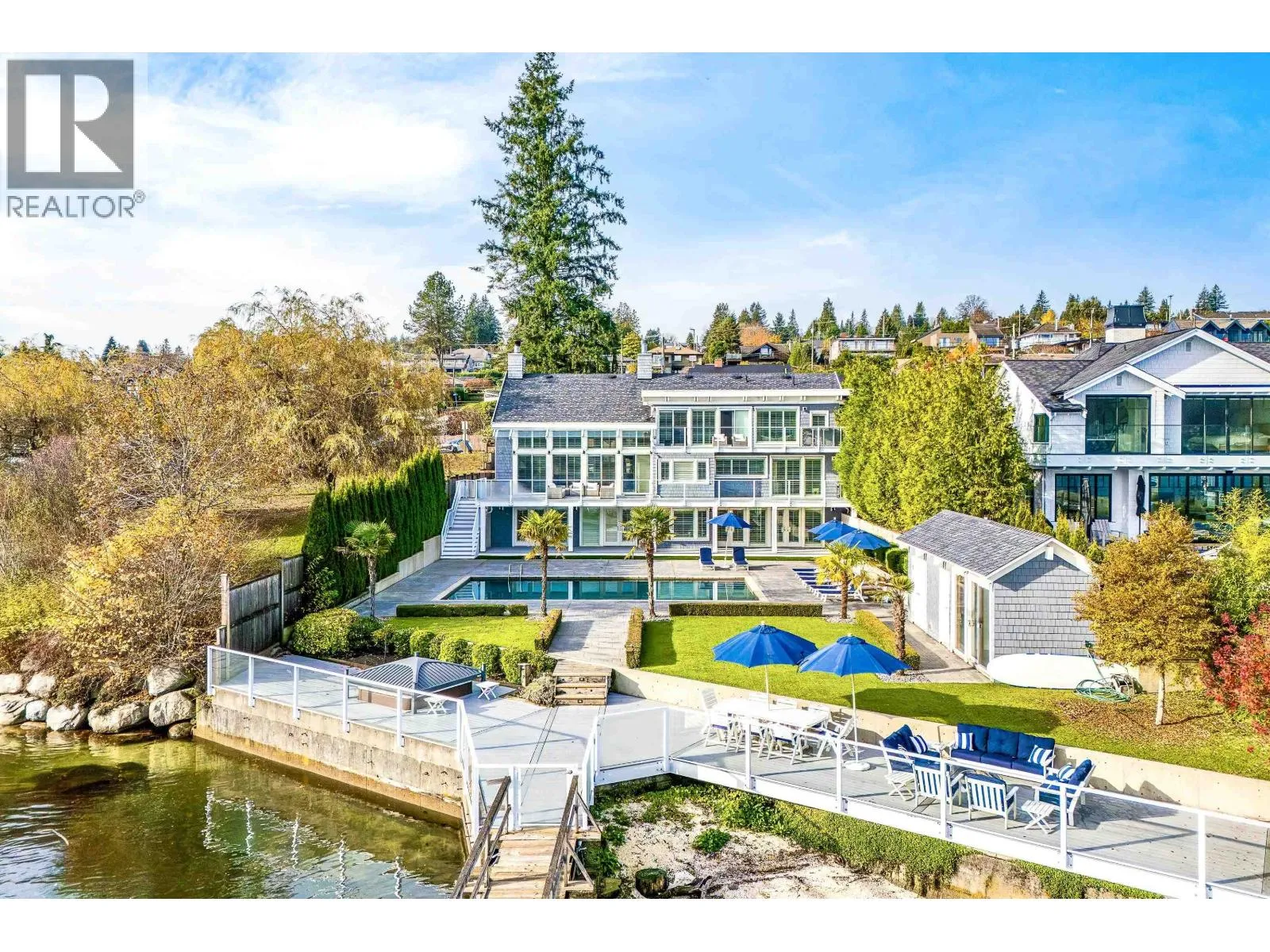 An Iconic Waterfront Estate in Deep Cove. Set along one of Deep Cove´s most coveted level waterfront streets, 614 Lowry Lane is a refined coastal estate offering timeless architecture, resort-style living, and exceptional privacy. Encompassing approximately 6,153 sq. ft. over three levels, this Hamptons-inspired residence is defined by vaulted ceilings, wide-plank hardwood floors, and walls of windows framing serene ocean and mountain views. A grand stone fireplace anchors the main living area, while the kitchen features custom cabinetry, a generous centre island, and elegant detailing. The primary suite is a tranquil retreat with vaulted ceilings, fireplace, and spa-like ensuite. Outdoors, rare level waterfront grounds showcase a stunning oceanside pool and entertaining space. (id:27476)
