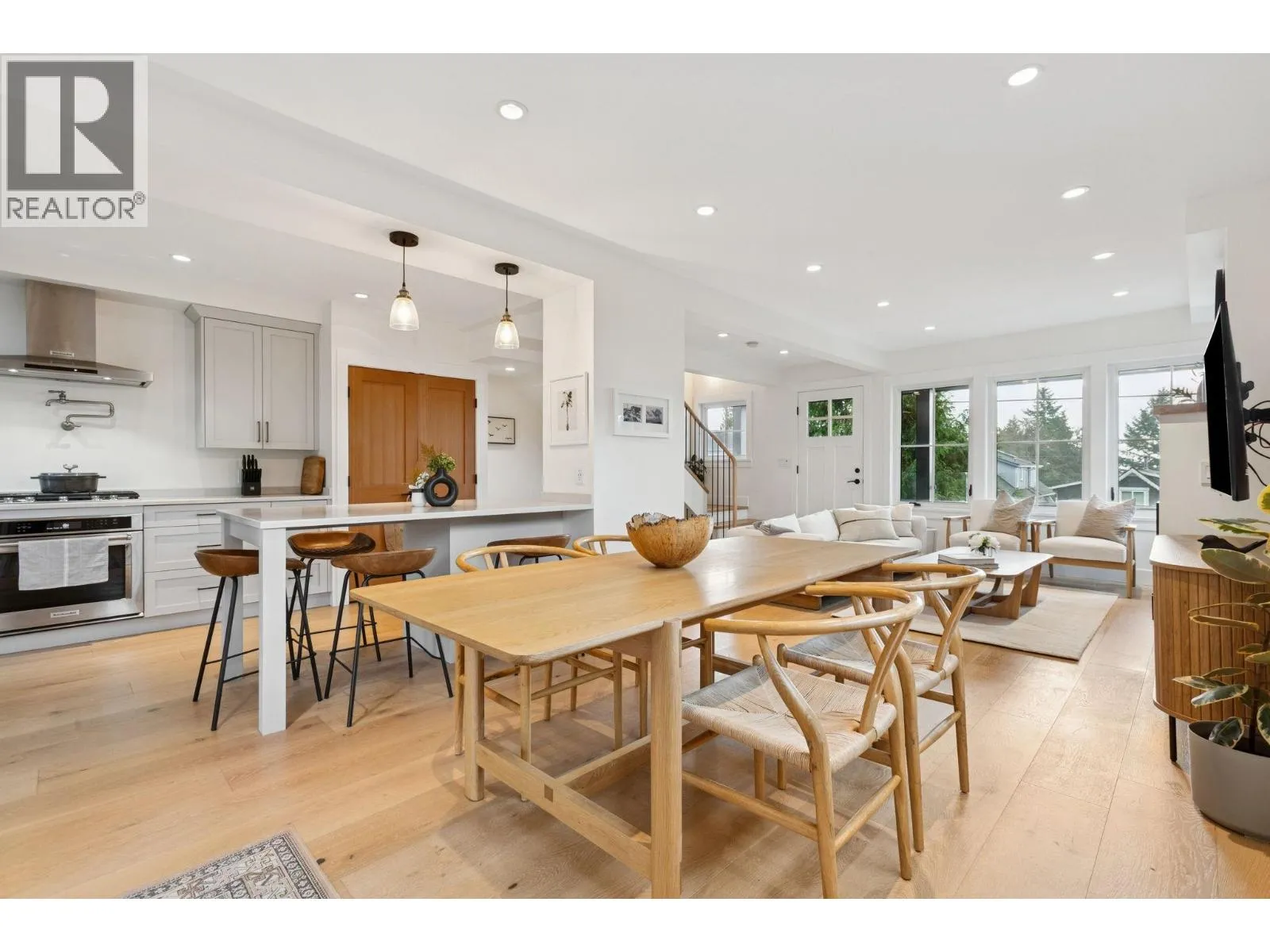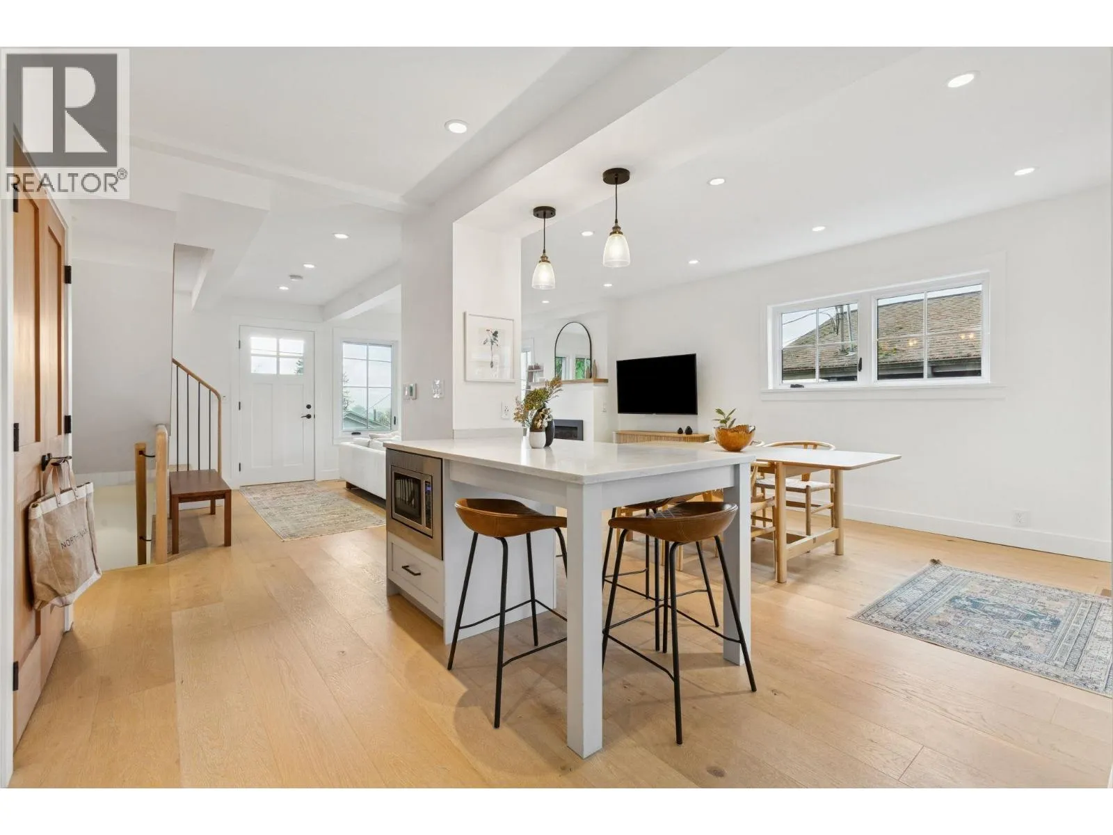 Executive furnished rental offering refined living across the main and upper levels of a beautifully curated home in a quiet, established North Vancouver neighbourhood. Ideally located with easy access to transit along Lonsdale Avenue, providing direct connections to Lower Lonsdale, the SeaBus, and downtown Vancouver. Surrounded by cafés, restaurants, grocery stores, parks, schools, and trails,perfect for executive, corporate relocation, or mid-term living. The home features a stunning eat-in kitchen and great room with hardwood floors and a gas fireplace, opening to front and back decks and a furnished backyard patio. The kitchen includes high-end KitchenAid appliances and generous prep space. Upstairs offers 2 bedrooms and 1 bath, including a south-facing primary with city views. No pets (id:27476)