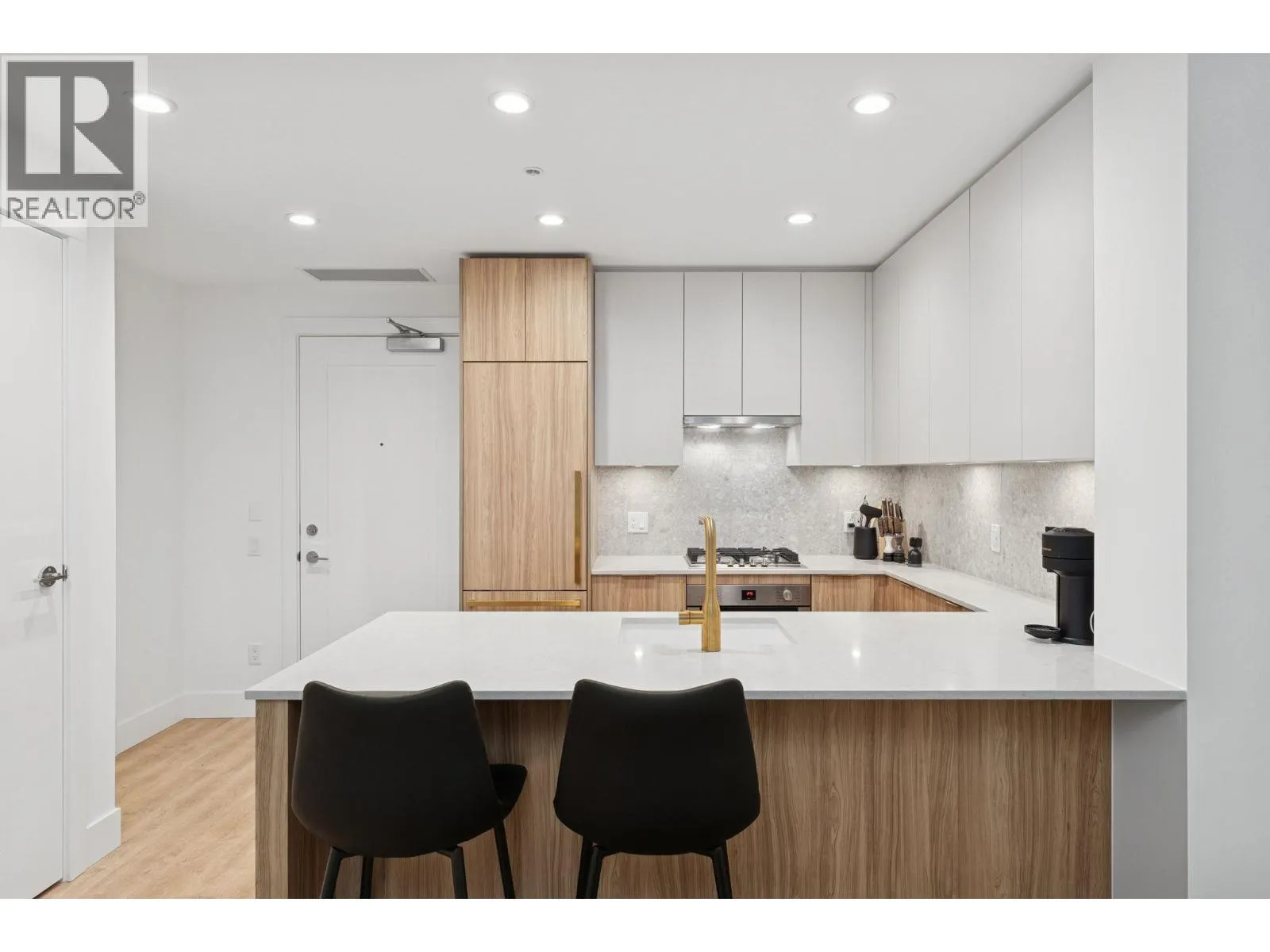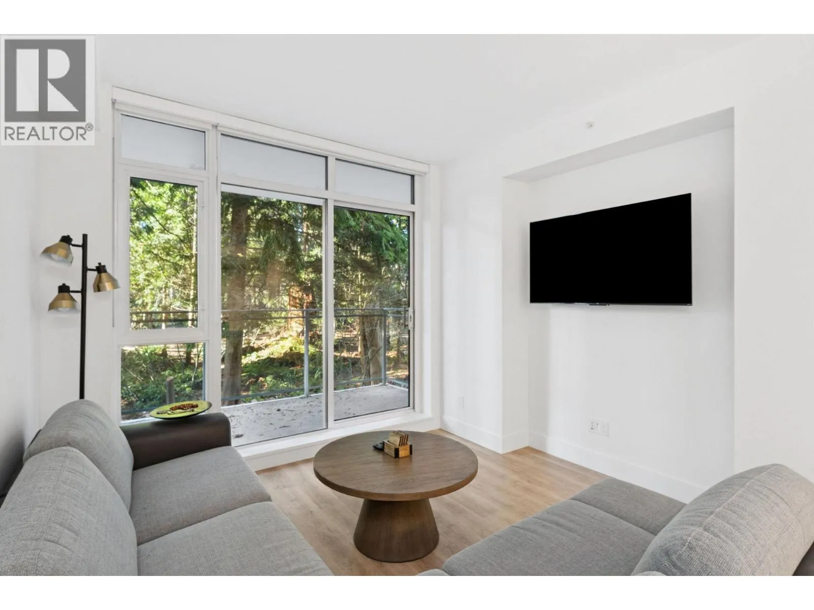 PARKSIDE AT LYNN BY MOSAIC HOMES - Lynn Valley's premier address. This one bedroom + den/flex concrete home features an efficient, open concept floorplan with lush forest views... like an adult treehouse! The kitchen features integrated appliances, quartz counters, ample storage and rich brass hardware, flowing on designer vinyl flooring into the dining/living room and massive covered patio. Appreciate air-conditioning, over-height ceilings and a den/flex space that comfortably accommodates an office. The washroom is a true sanctuary with deep soaker tub, oversized vanity and floor to ceiling tiling. Resort-style amenities include indoor pool, fitness centre, yoga studio and social lounge. All of this, at nature's door... steps to hiking/biking trails and Lynn Valley Centre/Village. (id:27476)