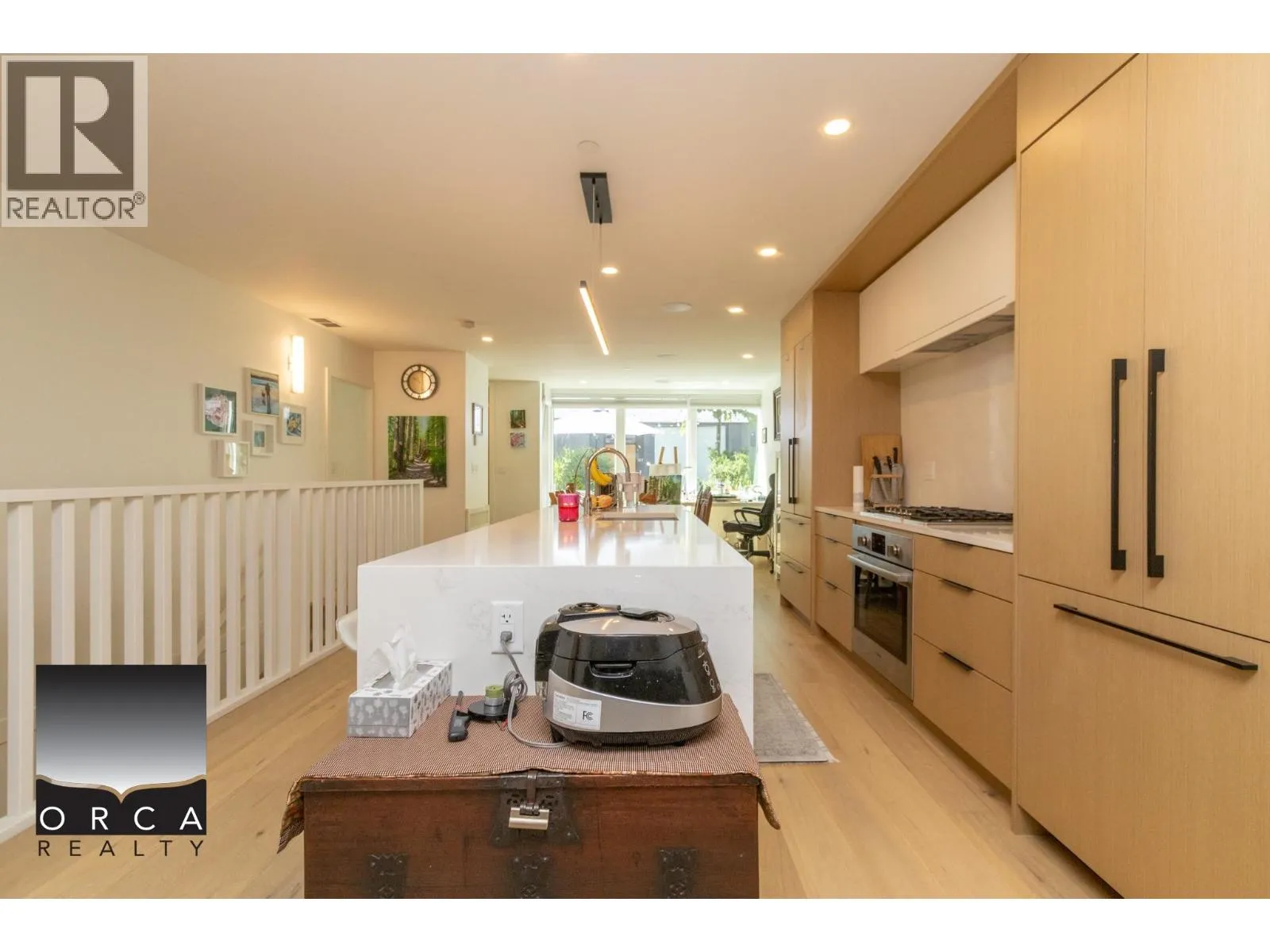 Welcome to this stunning 3-bedroom, 3-bathroom concrete townhouse offering 1,687 sq. ft. of refined living space in the heart of Lower Lonsdale. Thoughtfully designed with high-end finishes throughout, this home blends modern luxury with everyday comfort. At the heart of the home is a sleek gourmet kitchen featuring premium integrated Bosch appliances and a striking 9-foot waterfall island-perfect for both entertaining and daily living. Additional upscale touches include radiant in-floor heating and air conditioning in the Master bedroom, delivering a sophisticated and comfortable living experience. The well-planned layout includes a separate family room on the lower level, ideal for families seeking flexible space and added privacy, with minimal sound transfer between floors. (id:27476)