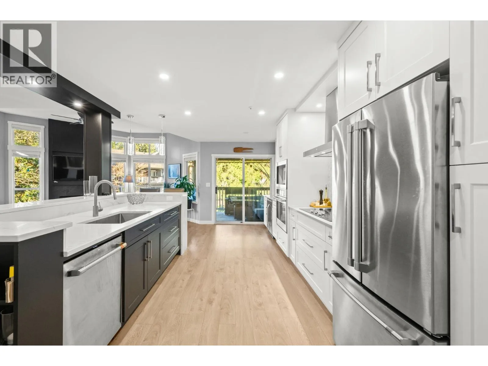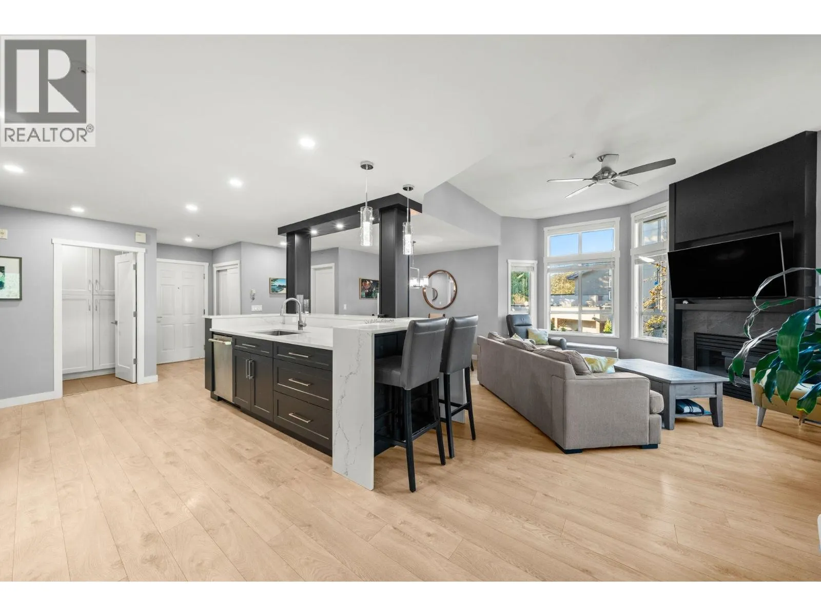 Stunning Top-Floor Corner Home in the Heart of Lynn Valley. This beautifully renovated top-floor corner unit offers the perfect blend of style, comfort, and location. At the heart of the home, a gorgeous chef´s kitchen features an oversized island ideal for entertaining, complemented by rich hardwood flooring throughout. Soaring vaulted ceilings and a cozy gas fireplace create a bright, inviting living space, while thoughtful separation between bedrooms ensures privacy. The spacious primary retreat is paired with a spa-inspired bathroom, complete with a walk-in shower and makeup vanity. Step outside to the large, covered patio-perfect for morning coffee or relaxing with a glass of wine in the evening. With two parking stalls and a storage locker, this exceptional home is just steps from Lynn Valley Village and Lynn Valley Mall, with world-class hiking and biking trails right at your doorstep. A rare opportunity to enjoy top-floor living in one of North Vancouver´s most sought-after communities. (id:27476)