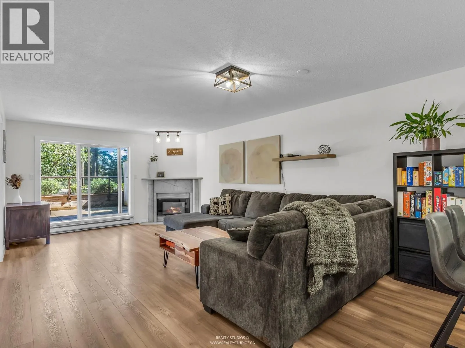 Welcome to your dream retreat in the heart of Indian River-this stunningly renovated, oversized 1-bedroom and den offers 1,050 sqft of luxurious living space, plus a massive 250 sqft sundeck that opens to breathtaking forest views and unmatched serenity. Nestled in a solid building, this home blends peace and privacy with modern elegance. Step inside to discover a bright open-plan kitchen, brand-new wide plank flooring and a cozy gas fireplace that anchors the living space. The versatile den is perfect as a nursery, home office, or creative studio. With 2 side-by-side parking stalls and both pet- and rental-friendly policies, this home ticks many boxes. Perfectly positioned just minutes from Parkgate Village, Dorothy Lynas Elementary, and a network of scenic walking trails to Deep Cove. (id:27476)