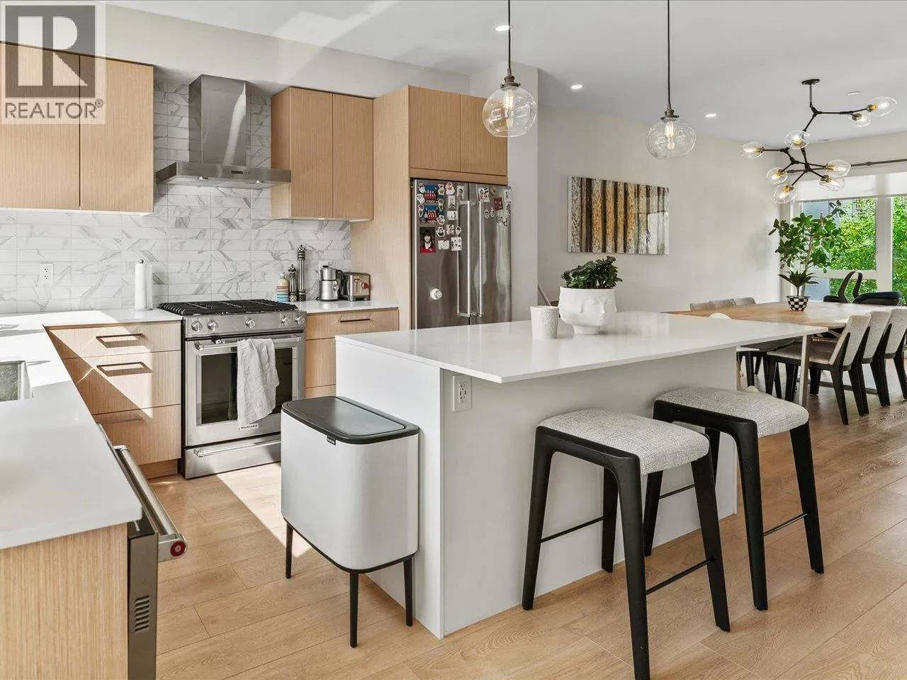 Welcome to Seymour Village, where contemporary design meets West Coast living. This spacious 3-level townhome with AC offers over 2,050 sqft with 4 beds & 4 baths, perfect for families of all sizes. The open-concept main floor features a gourmet kitchen with SS appliances, a generous island, & seamless flow into the dining & living areas-ideal for entertaining. Upstairs, you´ll find 3 bedrooms including a primary suite with a spa-inspired ensuite & walk-in closet. A lower-level bedroom with its own bathroom provides the perfect guest space, home office, or media room. Enjoy a private outdoor patio & deck, as well as an attached double garage with ample storage & EV charging. Offers as they come. OH Sat & Sun, Feb 7th & 8th 2-4pm. (id:27476)