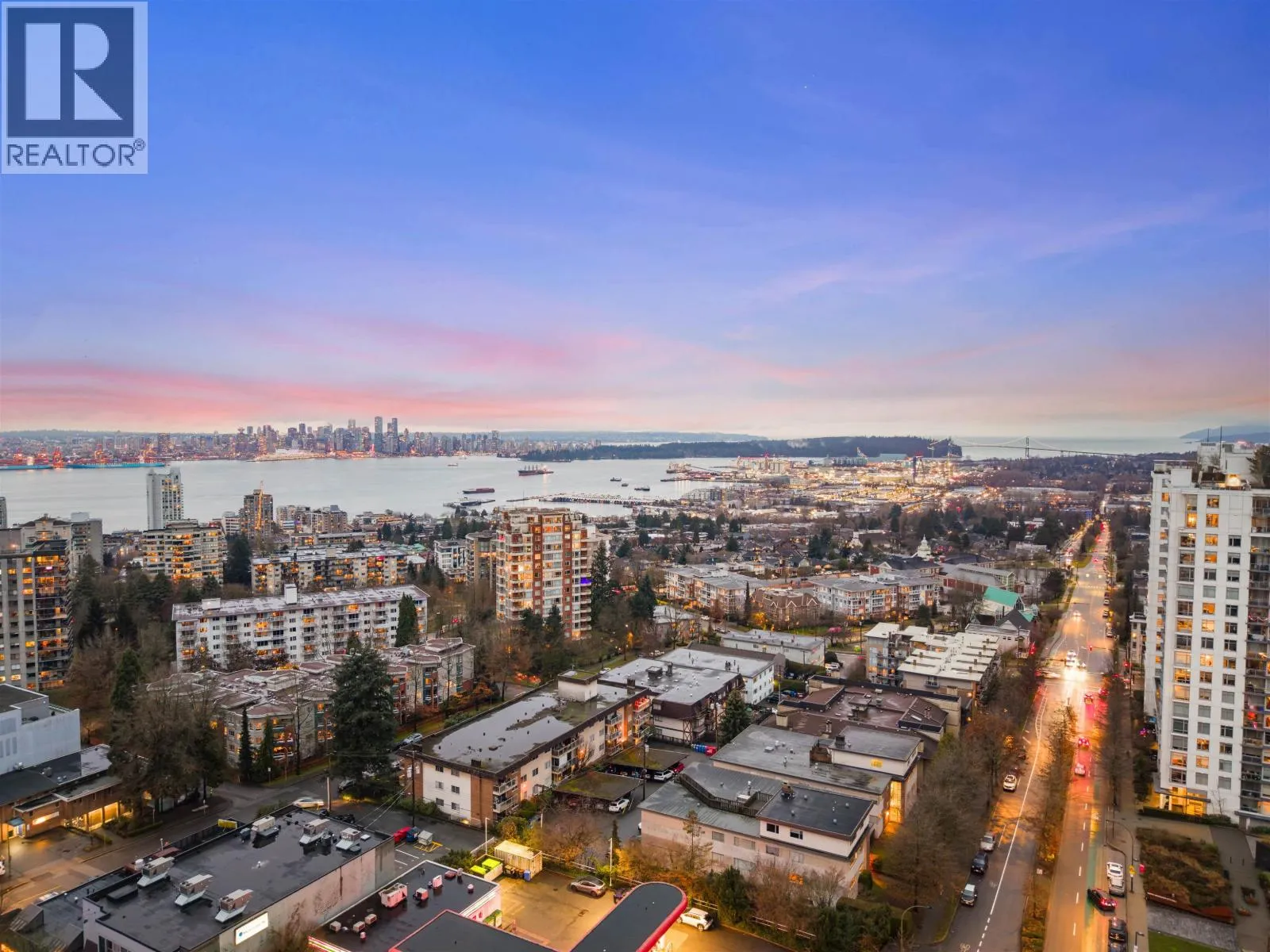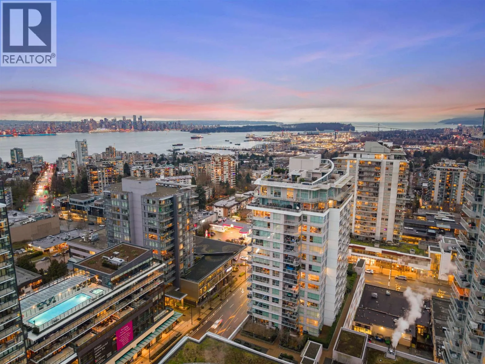 Welcome to Centreview, Lonsdale´s signature community by Onni. Centreview delivers the perfect blend of comfort and convenience. This nearly 900 sq ft, 2-bedroom, 2-bathroom NE corner unit showcases bright natural light and sweeping views. The large patio with gas hook-up expands your living space outdoors. Featuring hardwood floors, air-conditioning, and a modern kitchen with stone countertops, this home checks all the boxes. Enjoy resort-style amenities: pool, hot tub, gym, sauna, steam room, yoga room, and guest suites. With a 99 Walk Score, Lonsdale´s best restaurants and shops are steps away, and Whole Foods is at your lobby door! Includes 1 parking, 1 storage locker, and 1 bike locker. (id:27476)