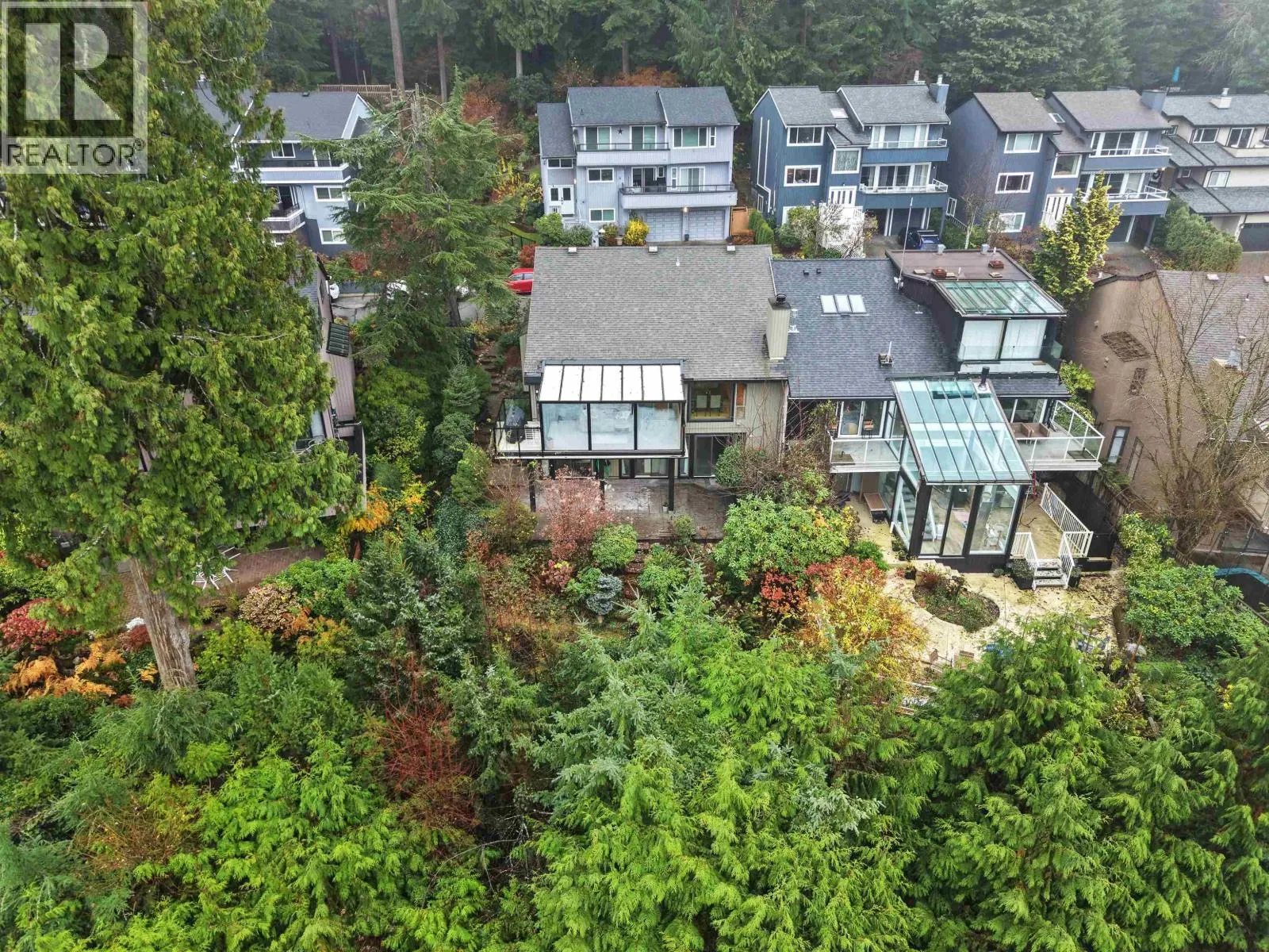 Tucked away on a quiet cul-de-sac in the heart of Grousewoods, this beautifully maintained reverse plan 1/2 Duplex invites you into spacious comfort and stunning southwest views of water and mountain. Vaulted ceilings, warm hardwood and slate floors and a bright solarium upstairs set the stage for open concept living and entertaining. Downstairs, three generous bedrooms including the primary bedroom with walk-in-closet and heated floor ensuite walk our to a newly built patio and landscaped garden , perfect for relaxation. The bonus is a large rec room that easily works as a fourth bedroom, or the guest room. You're minutes to Grouse Mountain, hike trails at your doorstep and the tennis courts and soccer field just a block away. This is a rare blend of lifestyle, comfort and location. (id:27476)