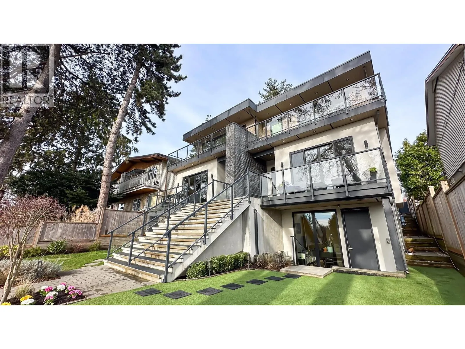 Experience luxury Lower Lonsdale living in this 2600 square ft south-facing duplex. 4 bed 4.5 bath. Enjoy ocean and city views from two decks and the primary suite. Featuring $100k+ in upgrades: Control 4 automation, central AC, and a 250-bottle wine wall. The chef´s kitchen boasts 2 ovens, induction stove, pot filler, and wine fridge. All 3 upstairs bedrooms have private ensuites; one includes a custom Murphy bed. Low-maintenance yard with built-in BBQ and artificial turf. A 1BR legal suite (approved for short-term rentals) offers an ideal guest suite or income generator. Includes a custom-organized garage and carport (EV-ready). Quiet street, walking distance to everything Lower Lonsdale has to offer. **OPEN HOUSE: Sat & Sun, Feb 14 & 15, 2-4 PM** (id:27476)