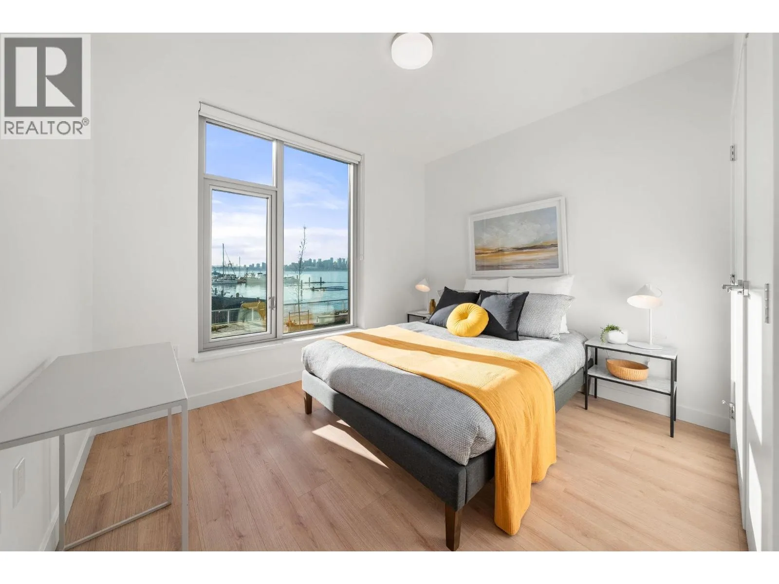 NEW Waterfront Townhouse - NO GST. Experience luxury at Drift, the jewel of North Harbour, the North Shore´s premier waterfront community. Developed by Concert and built by BOSA to LEED Gold standards, no detail has been overlooked. This home is designed for the views, with expansive windows showcasing a panoramic backdrop of the city, harbour, and mountains. Located directly on the Spirit Trail, you are steps from the vibrant Harbourside community and minutes from the Shipyards District and SeaBus. The interior is beautifully appointed with an elegant kitchen boasting Italian tile, Caesarstone counters, and a premium Fisher & Paykel appliance package. Both bedrooms offer enviable day-and-night views over the water to the downtown skyline. Rare waterfront living at its finest. (id:27476)