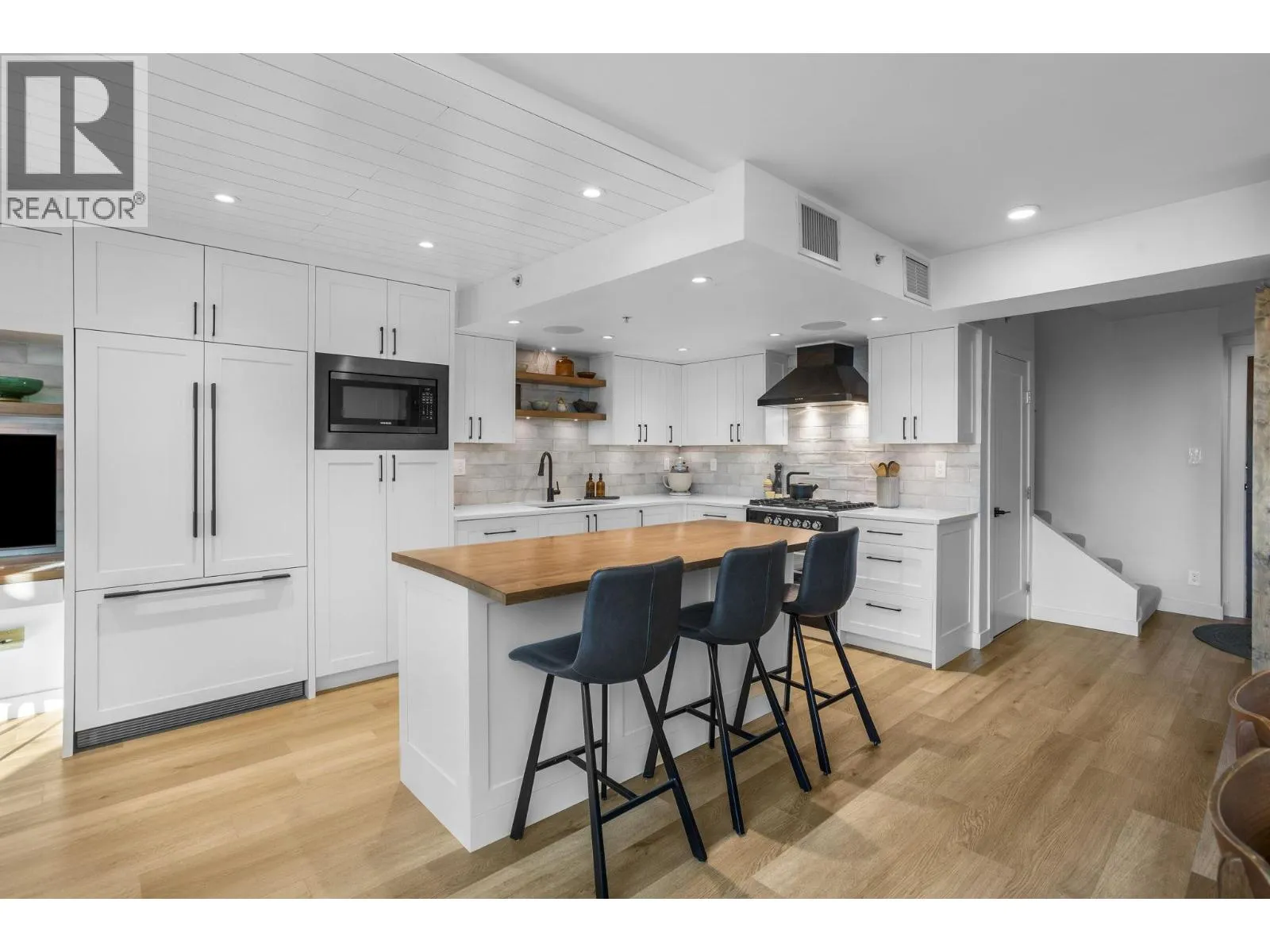A stunning & fully renovated 2 bed, 2.5 bath townhome at Esplanade West. Offering over 1100 square ft across two levels, this home features integrated Fisher Paykel appliances, a custom wet bar, and a thoughtfully designed office nook. Classic wainscotting and shiplap details add warmth and character throughout. Also includes air conditioning, gas range, double height ceilings in the living area, a generous patio on the main level, and a balcony off the primary. Rare live/work zoning with the option to secure access to Pinnacle Hotel amenities. Steps to the Shipyards, Lonsdale Quay, and an incredible selection of restaurants, shops, and breweries. Pet friendly building. 1 parking & 1 storage. OPEN WED Feb 11th 10am-12PM & SUN Feb 15th, 2-3:30pm. (id:27476)