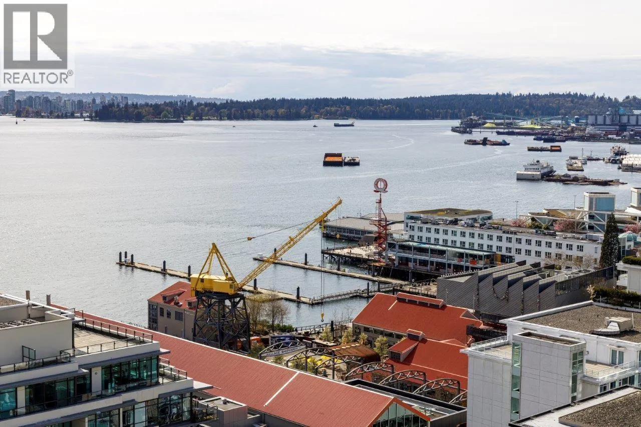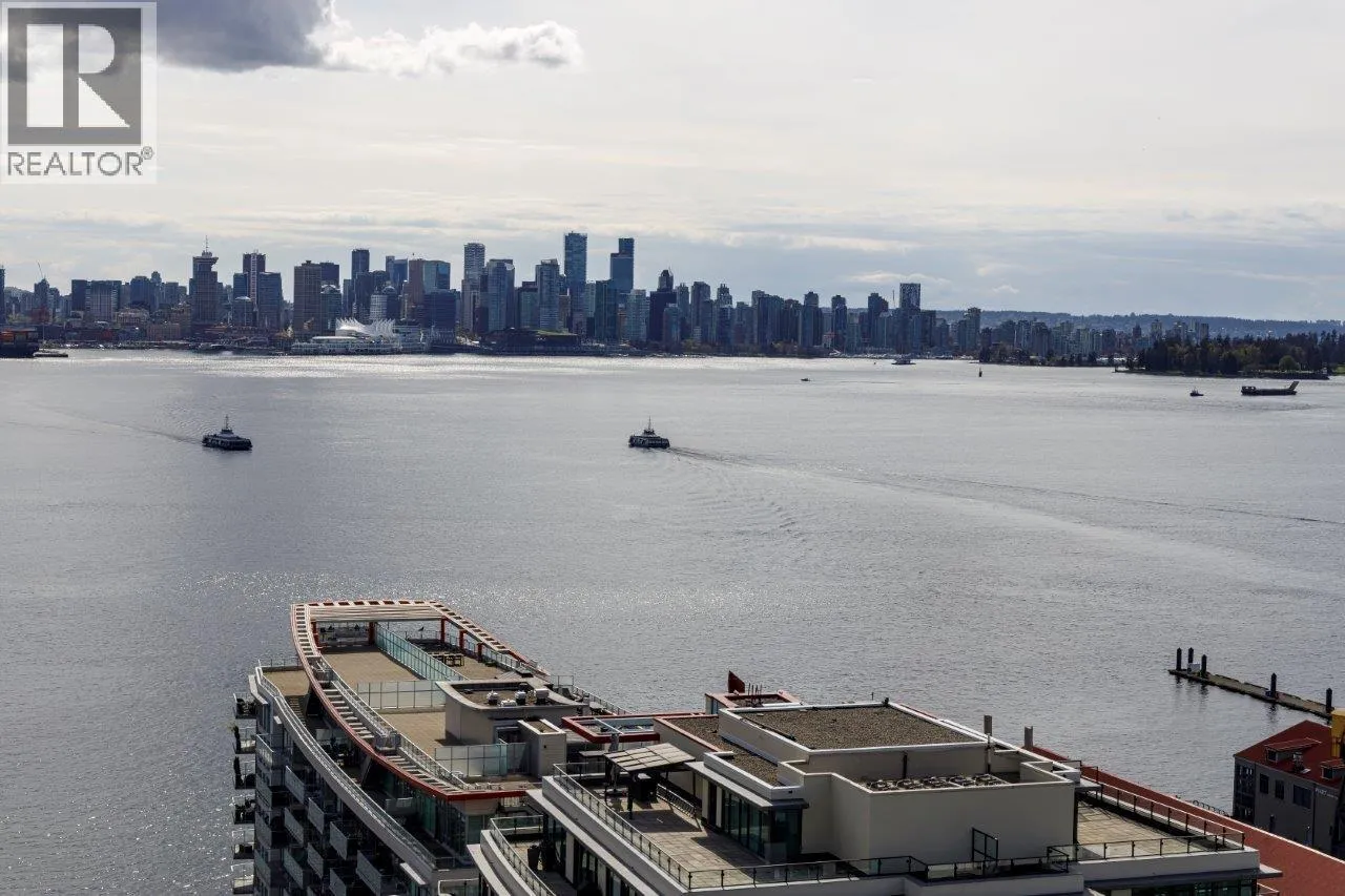 Welcome to Esplanade at the Pier 1 of lower Lonsdale's most sought after waterfront addresses. This concrete two bedroom two bathroom condo offers 952 ft.² of smart functional living with a great layout & incredible north west facing views of the mountains, ocean & city skyline. Enjoy the comfort of 9 foot ceilings in central air conditioning with gas & AC included in the strata fees. The Open concept living space is flooded with natural light through floor-to-ceiling windows. While the kitchen features granite countertops stainless steel appliances. Just steps to the Seabus, Lonsdale Quay, Shipyards District, shop and restaurants. Hotel-style amenities for a fee: pool, gym,hot tub & more. Pets & rentals welcomed. Includes 1 parking & 1 storage. PRIVATE SHOWINGS BY APPT only FEB 14 & FEB 15 at 2 PM (id:27476)