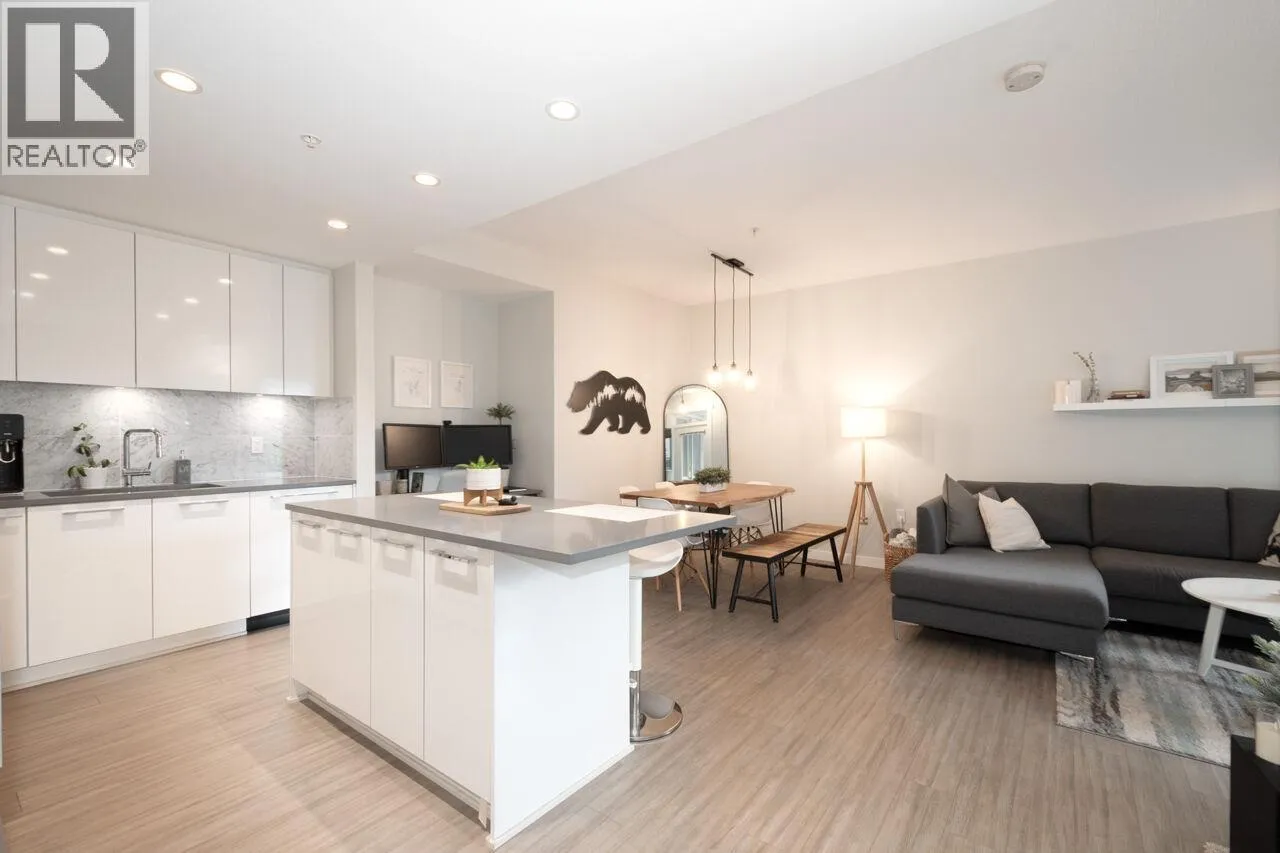 Welcome to Taluswood by Polygon ! You will be surprised at the amazing layout this immaculate 728 sq foot 1 bedroom offers !! The moment you enter you will notice the huge kitchen with island , offering stainless appliances , loads of storage and an open concept leading to bright and generous living and dining area & an excellent private south and west facing balcony too . The primary bedroom has a walk thru closet with access (semi ensuite ) and a large deluxe bathroom . The building offers an excellent gym , party and bike room , storage and 1 underground parking stall. All of this located in the heart of Vibrant Lynn Valley with hiking ,biking ,trails everywhere and just a short stroll to Shops , restaurants ,transport and great services . (id:27476)