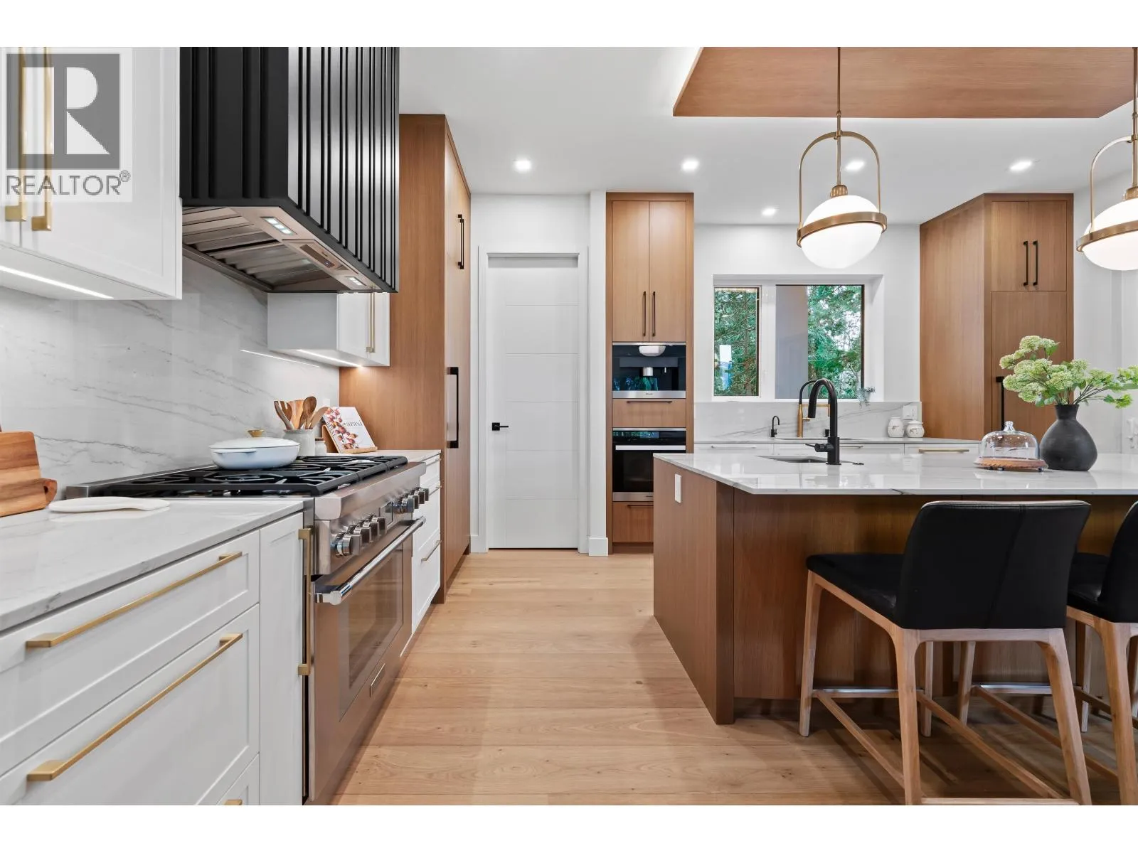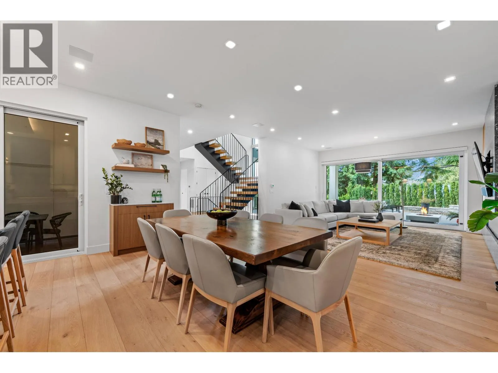 Quiet Luxury | West Coast Modern Bathed in natural light and framed by breathtaking sunset and mountain views, this custom-built Canyon Heights home captures the essence of warm West Coast design. Floor-to-ceiling glazing invites the outdoors in, while the private greenbelt and Mosquito Creek setting offers rare serenity, privacy, and connection to nature-perfect for active families seeking space to grow within an exceptional school catchment. Thoughtfully crafted for effortless modern living, this 5 bedroom residence showcases refined materials, timeless architecture, and inviting spaces that balance elegance with everyday comfort. Flexible accommodation supports extended family or a private suite, creating ease for multigenerational living. Seamless indoor-outdoor flow leads to beautifully designed terraces and gathering areas-ideal for morning adventures, sunset evenings, and year-round West Coast enjoyment. A rare opportunity where nature, family living, and understated luxury meet in one of North Van (id:27476)